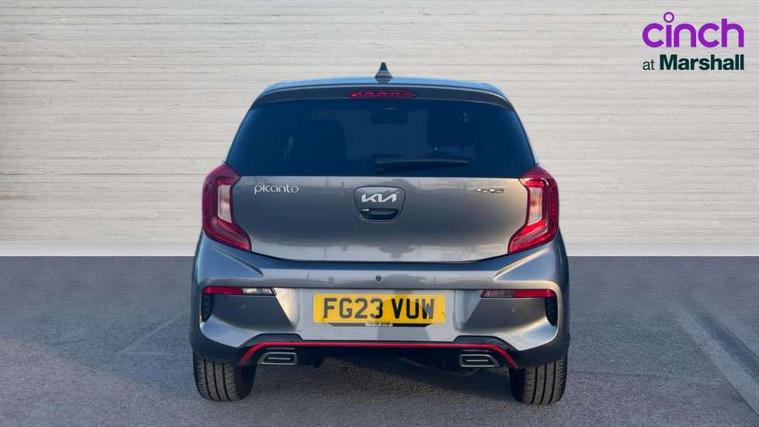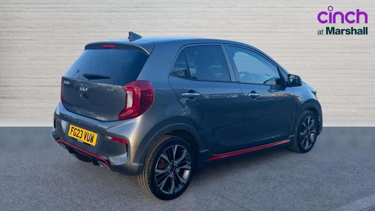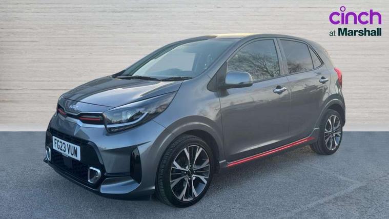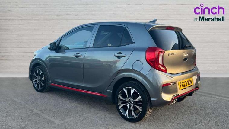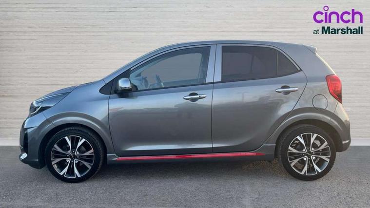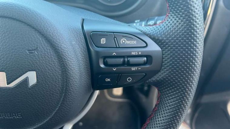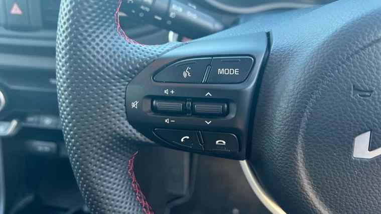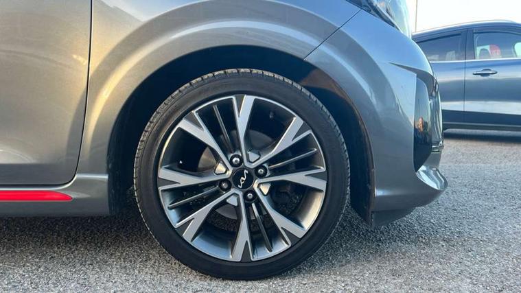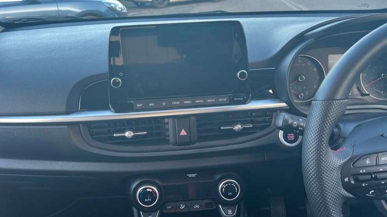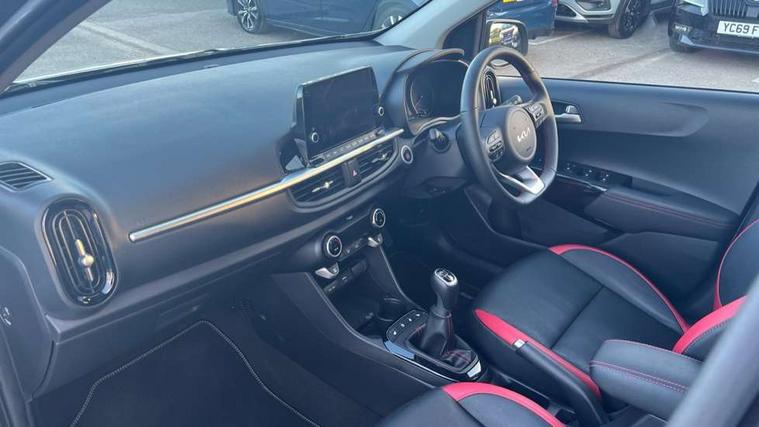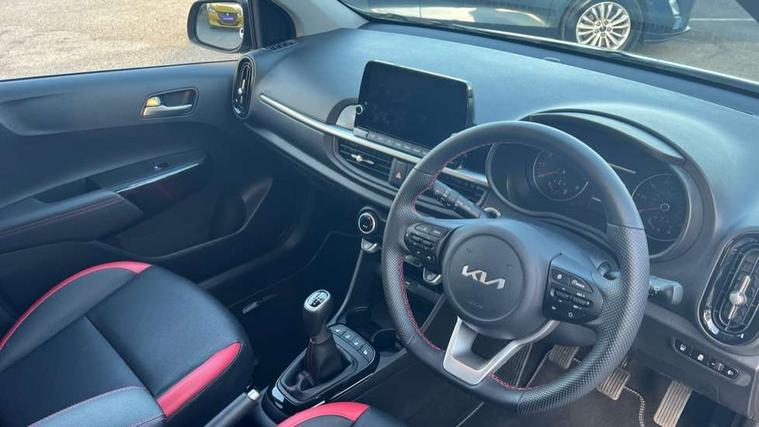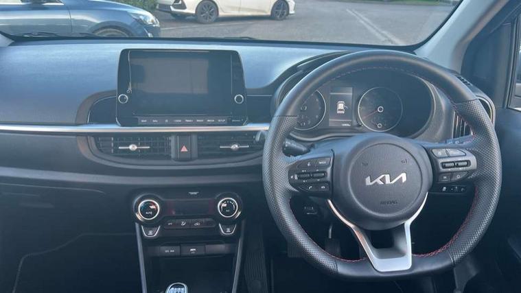 8" touch screen satellite naviagtion with RDS and DAB with telematics, Apple car play/Android Auto with voice control, Cruise control + speed limiter, Emergency call service, Emergency stop signalling system, External temperature gauge, Kia Connect (UVO), Motor driven power steering, Rear parking sensors, Reversing camera system with dynamic guidelines (Integrated into centre fascia screen), Tachometer, Trip computer, Wireless Smartphone charger, 6 speaker audio system, Bluetooth with music streaming, Steering wheel mounted controls, USB ports for connection of a media device, Automatic headlight control system, Bi-function projection headlights, Black beltline mouldings, Black grille with silver surround, Body colour B pillars, Body colour bumpers, Body colour side sill mouldings, Body coloured mirrors and chrome exterior handles, Day/night rear view mirror, Electric adjustable/heated/folding door mirrors with LED indicators lights, Front and rear electric windows with drivers's auto up/down function, Front fog lights, Headlamp levelling, Heated rear window, High mount brake light, LED daytime running lights, LED rear fog lights, Privacy glass - Rear windows and tailgate, Rain sensor, Rear side wing doors, Rear wash/wipe, Speed variable front wipers, Sports front and rear bumpers with gloss black skid plates twin exhaust, Tinted glass, Visible VIN plate, Welcome and follow-me home light functionality, 1 x rear coat hook, 12V power point front, 2 seat bench in 2nd row, 3 x passenger assist grips, 60/40 split/folding 2nd row of seats, All round height adjustable headrests, Automatic air conditioning, Black and red accents front door armrest, Centre Console with Storage Box and Sliding Armrest, Cupholders in centre console, D-cut steering wheel with red stitching, Driver and front passenger sunvisors with driver's side illuminated vanity mirrors, Driver seat height adjust, Faux leather upholstery, Front cabin lights, Glovebox, Heated front seats, Heated steering wheel, High gloss lower centre fascia trim, door armrest and air vents, ISOFIX Child seat top tethers and anchor fixings, Leather trimmed steering wheel and gearshift, Luggage area light, Luggage area parcel shelf, Passenger front seatback pockets, Satin chrome interior door handles, Single front passenger seat, Slide/reclining front seats, Tilt adjustable steering wheel, Advanced Driver Assistance Pack - Picanto, 2 x 3-point rear seatbelts, ABS/EBD, Automatic unlocking of doors in case of impact, Dual front airbags, ESC + BAS + VSM + HAC, Front passenger airbag cut-off switch, Front seatbelt height adjusters, Front seatbelt pretensioners + load limiters, Hill hold control, Knee airbags, Rear child proof door locks, Seatbelt warning, Side impact protection, Torque vectoring brake based and straight line stability (SLS), Traction control, Twin curtain airbags, Twin front side airbags, Tyre pressure monitoring system, Anti theft alarm, Engine immobiliser, Locking wheel nuts, Smart key with engine start/stop button, 16" alloy GT-Line wheels, Tyre mobility kit,