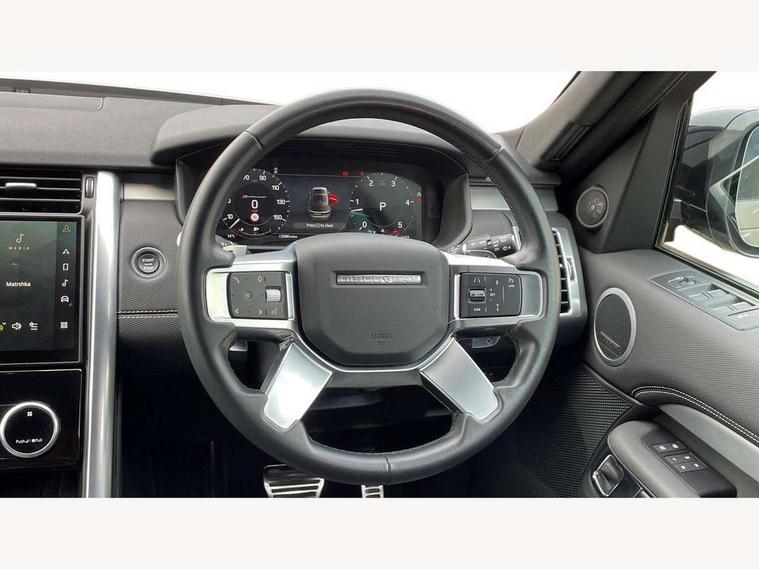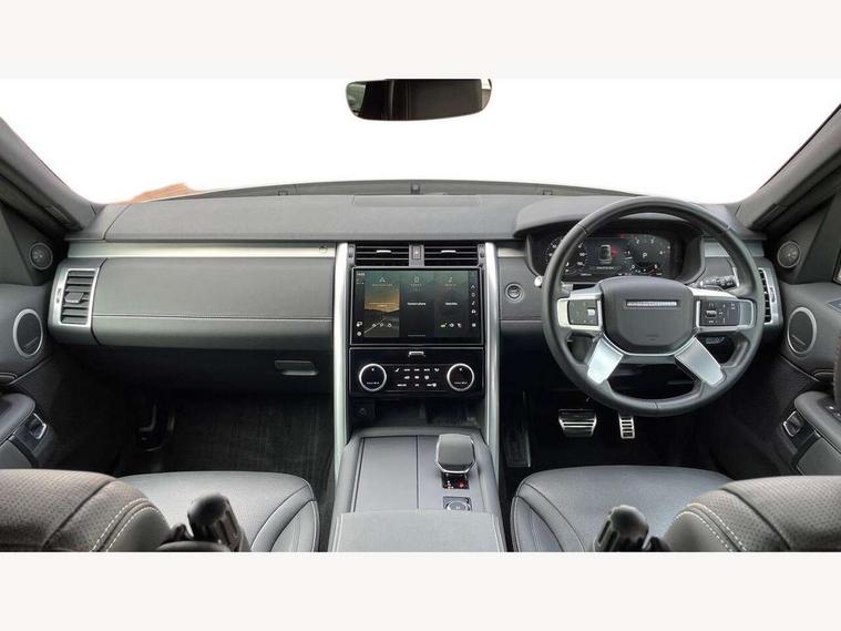 11.4" touchscreen, 3D surround camera, Adaptive cruise control, Android Auto, Apple car play, Blind spot assist, Driver condition monitor, Electric power assisted steering (EPAS), Emergency services call system, Front and rear parking aid, Lane keep assist, Power inner tailgate, Push button start, Rear collision monitor, Rear traffic monitor, Remote, Remote boot release, Service interval indicator, Speed proportional steering, Sportshift selector, Stop/start system, Traffic sign recognition with adaptive speed limiter, Trip computer, Wade Sensing, Adaptive dynamics, Dynamic stability control, Electronic air suspension, Front axle open differential, Digital Audio Broadcast radio-DAB, Dynamic volume control, Pivi pro connected, USB/aux input socket, Acoustic laminated windscreen, Animated directional indicators, Auto dimming interior rear view mirror, Automatic headlight levelling, Automatic headlights, Body colour bumpers, Body colour door handles, Centre high mounted stop light, D300 badge, Electric heated/power fold memory door mirrors with approach lights and auto dimming driver side, Electric windows with one touch open/close and anti-trap, Heated rear window, Heated windscreen, LED darkend tail lights, Metal treadplates with R-Dynamic branding, Narvik black Discovery script, Privacy glass, Puddle lights, Rain sensing windscreen wipers, Rear fog lights, Rear side wing doors, Rear wash/wipe, Trailer stability assist, Variable intermittent wiper, 12V power sockets, 12V USB charging socket in loadspace, 2 seat bench in 3rd row, 3 seat bench in 2nd row, Central hinged twin lidded storage, Ebony morzine headlining, First and second row door bins, Footwell lights, Front and rear 12V with front USB, Front passenger seat isofix location point, In-facia storage, Isofix child seat preparation for front passenger seat, Loadspace cover, Loadspace Hook, Loadspace light, Lockable glovebox, Lower centre console storage, Luggage tie downs in loadspace, Multi function steering wheel, Overhead lighting console, Premium carpet mats, Rear ISOFIX, Shopping bag hook, Single front passenger seat, Storage glovebox, Sunvisors with illuminated vanity mirrors, Third row storage, Twin front cupholders with cover, USB with 12V socket in centre console, Online pack with data plan - Discovery, R-Dynamic black exterior pack - Discovery, 3x3 point rear seatbelts, Anti-lock braking system (ABS), Brake pre-fill technology, Cornering brake control, Curtain airbags, Customer configurable autolock, Driver and passenger airbags, EBD - Electronic brakeforce distribution, Electronic traction control, Emergency brake assist, Emergency braking, ESP, Front side airbags, Gradient acceleration control, Hill descent control, Hill launch assist, Power operated child locks, Rear airbags, Roll stability control, Seat belt reminder, Torque vectoring brake, Tyre pressure monitoring system, Immobiliser, Intrusion sensor, Keyless entry, Locking wheel nuts, Remote central locking, All terrain tyres,