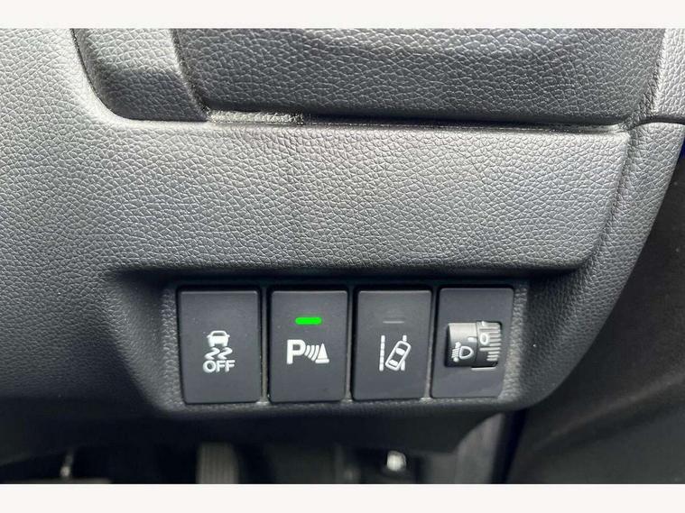 Bluetooth hands free telephone connection, Connect Navigation with 7" touchscreen, Digital Radio, Radio/CD/Mp3, Aha app integration, internet browsing, Cruise control, Electric power steering, Forward collision warning, Front and rear parking sensors, Intelligent speed assist, Lane departure warning system, Multi-information display, Rear view camera, Speed limiter, Traffic sign recognition, Vehicle stability assist, 'Shark fin' mobile antenna, 2x USB and HDMI, 6 speakers, Steering wheel mounted audio controls, Automatic coming/leaving home lighting function, Automatic headlights with dusk sensor, Automatic rain sensing wipers, Body colour door handles, Body coloured bumpers, Drivers window one touch up/down, Electric front windows, Electric heated + adjustable door mirrors, Electrically retractable door mirrors, Front fog lights, High beam assist, LED daytime running lights, LED high level brake lights, One touch passenger window, Rear electric windows, Rear privacy glass, Rear screen wiper - intermittent, Automatic climate controlled air conditioning, Boot light, Centre console accessory socket, Cloth upholstery, Driver seat back pocket, Driver's seat height adjustment, Driver/passenger sunvisors and vanity mirrors, Front accessory power socket, Front map lights, Front/rear courtesy lights, Gear shift indicator, Height adjustable passenger seat, Isofix child seat restraint mechanism, Leather gear knob, Leather steering wheel, Magic seat flexibility system, Paddle shift controls, Passenger seat back pocket, Rear parcel shelf, Reclining rear seats, Tilt/telescopic adjustable steering wheel, ABS/EBD, Active city braking, Anti-whiplash front headrests, Brake assist function, Deflation detection system, Dual front SRS airbags, Front and rear curtain airbags, Front side airbags, Hill start assist, Passenger airbag cut-off device, Honda super locks, Immobiliser, Remote central locking with 2 remote folding keys, Security alarm, Smart entry + Smart start, 16" alloy wheels, Tyre repair kit,