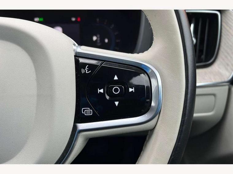 12.3" Progressive Driver Display, 360 degree surround view parking camera with side proximity sensors, 9" centre console touch screen, Adjustable steering wheel force, Bluetooth handsfree system, Driver alert control with lane keeping aid, Driver assistance (pilot assist and adaptive cruise control), Driver awareness - Blind spot information system with steer assist, cross traffic alert with autobrake and rear collision warning and mitigation, Emergency services call system, Front and rear park assist, Google Automotive Services, Oncoming Lane Mitigation, Service interval indicator, Speed limiter, Speed sensitive steering, Trip computer, Volvo on call with App, Wireless/Inductive Mobile Phone Charging, 8 speed automatic transmission with start/stop + manual change functions, Dynamic chassis, DAB Digital radio, Premium Sound by Harman Kardon, dirac unison, dolby pro logic II surround sound, 13 speakers/600W output and fresh air subwoofer, Steering wheel remote infotainment controls, Adaptive brake lights with high level LED brake lights, Auto dimming interior + exterior mirrors, Automatic headlight levelling system, Automatic LED Headlights + Active high beam incorporating daytime running lights, Electric adjustable/heated/auto power folding door mirrors, Electric front+rear windows, Front aluminium tread plates, Heated front windscreen, High gloss black door mirrors and window surround, High gloss black front and rear bumper decoratives, High gloss black mesh front grille with high gloss black surround, Home safe and approach lighting, Integrated roof rails in high gloss black, LED front fog lights, Puddle lights, Rain sensor with automatic windscreen wiper activation, Rear side wing doors, Rear wiper, Roof antenna, Roof spoiler, Tinted windscreen, Visible VIN plate, 12V socket in front tunnel console and cargo compartment, 3 seat bench in 2nd row, 4 Zone electronic climate control, A-pillar parking ticket holder, Air purifier particulate matter (PM) filter, B Pillar ventilation, Bright metal luggage threshold, Centre console cupholders and storage, Charcoal floor mats, Front and rear courtesy lights, Front and rear door pocket illumination, Front cupholder illumination, Front footwell illumination, Front reading lights, Front seat cushion extensions, Glovebox compartment with illumination, Head restraints for all seats, Heated front seats, Heated steering wheel, Height/reach adjustable steering column, Illuminated luggage compartment, Illuminated vanity mirrors + ticket holder, ISOFIX attachment on outer rear seats, Load cover, Load protection net, Multi directional lumbar support, Power driver seat with memory + exterior mirrors memory, Power height adjustable passenger seat, Rear armrest with cupholder, Rear footwell and front and rear side step illumination, Rear seat concealed storage, Single front passenger seat, Tailgate illumination and ambient door lighting, Underfloor stowage compartment, Versatile split folding rear seat - 60/40, 5 three point seatbelts, City safety with steering support with Pedestrian + cyclist + large animal detection + front collision warning with full auto brake, Drivers knee airbag, Dual stage driver/passenger airbags, Electronic parking brake with auto hold, First aid kit, Front seats SIPS airbags, Hill descent control - Off-road drive mode, Hill start assist, IC (Inflatable Curtains) - Full Length, Passenger airbag cut-off device, Power child locks on rear doors, Road sign information display, Run off Road Mitigation, Run off Road Protection, Seatbelt reminder and pretensioners, SIPS (Side Impact Protection System), Slippery road and hazard light alert, Stability and Traction Control with Spin control, Engine Drag Control and Corner Traction Control, Tyre pressure monitoring system, Vehicle deceleration control with Anti-lock Brake System, Electronic Brake Distribution and Emergency Brake Assist, Warning triangle, WHIPS whiplash protection system - front, Anti-theft alarm including immobiliser/volume sensor + level sensor, Care key with user defined top speed, Key integrated remote control central locking + fuel flap with deadlocking system and auto open/close power windows, Keyless Drive (includes Keyless Entry and Keyless Start) with Handsfree Tailgate Opening/Closing, Locking wheel nuts, Private locking for tailgate,