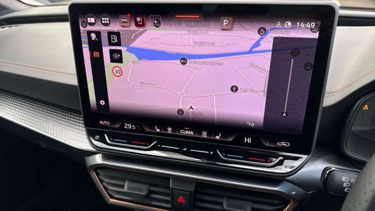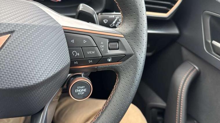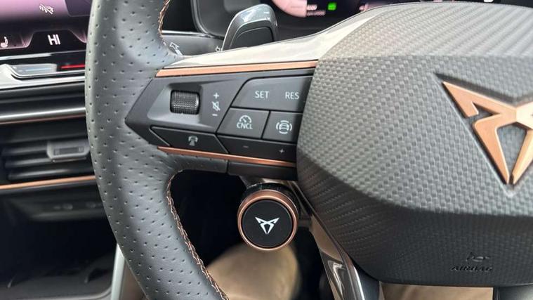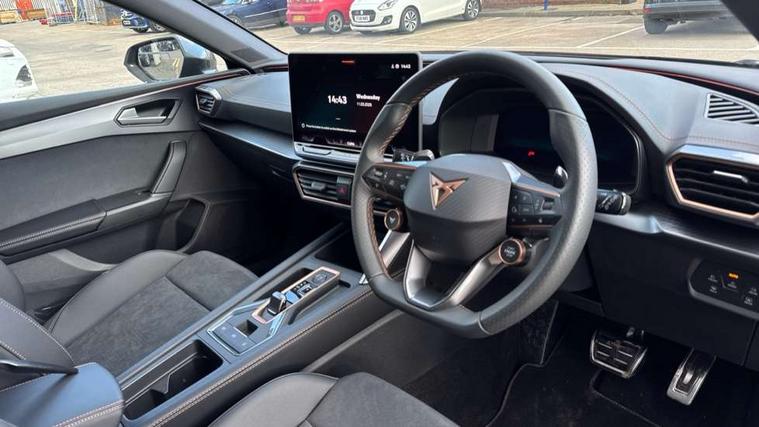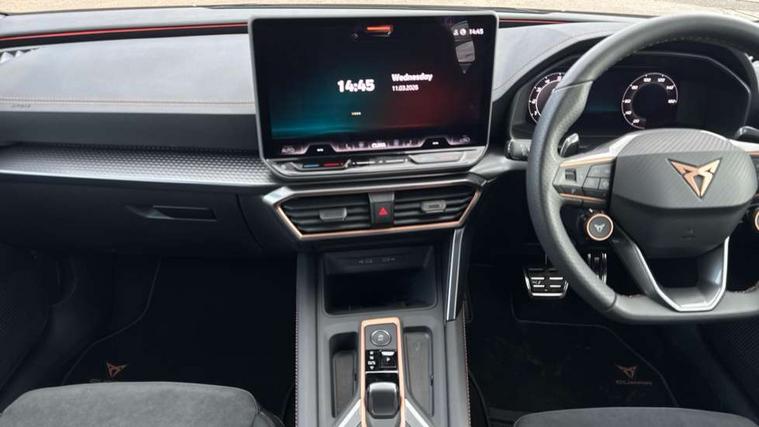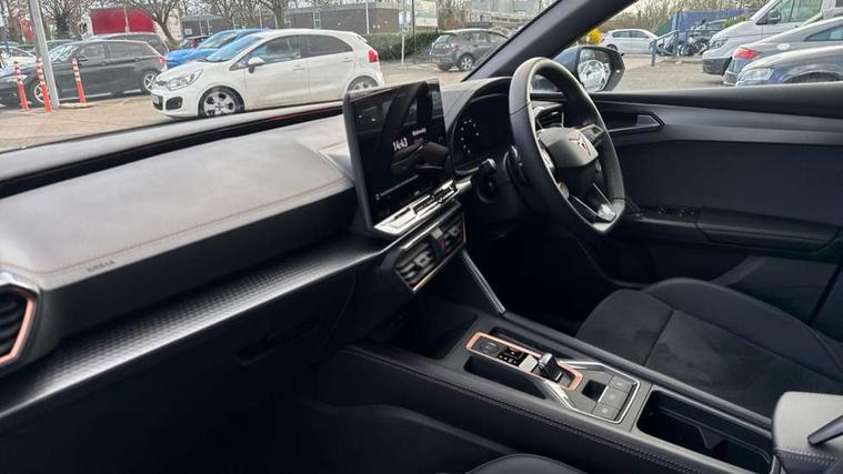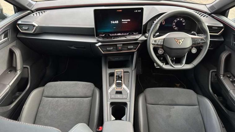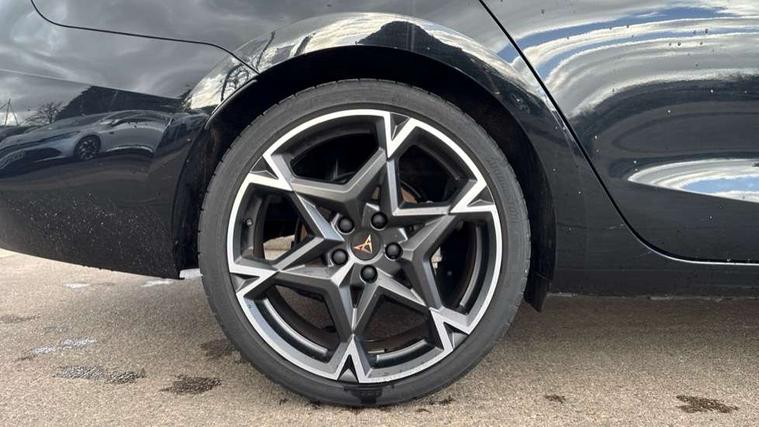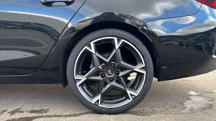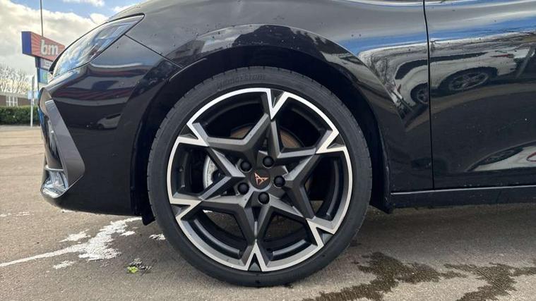 Adaptive cruise control with follow-to-stop and speed limiter, CUPRA drive profile selection with (Comfort/Sport/Individual), throttle response and gearshift mode, Digital cockpit, Dynamic road sign display, E-call, Front and rear parking sensors, Front assist with forward collision warning braking reaction to vehicles, pedestrians and cyclists, Full link smartphone integration with Mirror Link, wireless Apple CarPlay and wired Google Android Auto, Lane assist, Lockable tailgate, Rear view camera, RPM, trip computer, outside temp gauge, instrument light brightness, low fuel warning light, lights on reminder, gearshift indicator, Service interval indicator, Start/stop system with regenerative braking, Virtual pedal with electric tailgate, Wireless phone charger, Auxiliary input socket, Auto dimming rear view mirror, Body colour door handles, Body coloured bumpers, Cupra sports bumpers, Dark tinted rear windows, Electric front/rear windows, Electrically adjustable, heated and folding door mirrors, Gloss black roof rails, High beam assist, LED front fog lamps with cornering function, LED headlights with dynamic turn signals, tail lights, rear fog lights with rear coast to coast lighting, LED rear fog lamp, Rain sensing wipers, Rear side wing doors, Rear wash/wipe, Separate daytime running light with automatic headlight control and coming home feature, Third brake light, Welcome light with logo projector in door mirrors, 12v power supply in centre console, 3 seat bench in 2nd row, 5 headrests, 60/40 split rear bench seat with armrest, Ambient lighting (glovebox, footwell, ambient lighting multicoloured), Black headlining, Cupra sports pedals, CUPRA Supersports, heated steering wheel with satellite buttons, Dinamica cloth upholstery, Electrically adjustable driver seat and lumbar support with memory function + manually adjustable passenger seat, Four x USB Type C ports (2 in front and 2 in rear), Front and rear reading lights X 4, Front centre armrest, Heated front seats, Height/reach adjust steering wheel, Illuminated interior front door sills, Interior wraparound lighting, ISOFIX points in outer rear seats with top tether anchorage points, Single front passenger seat, Sliding boot cover, Storage pockets on rear of front seats, Sunvisors with illuminated mirror, Three zone climate control, Dynamic and comfort pack - Leon Cupra, Media system plus with 12.9" display + navigation pack - Leon Cupra, 3 point seatbelts on all rear seats, ABS, Brake control system - ESC and brake booster, Child proof door locks, Cupra black brake calipers, Driver and front passenger airbags with front passenger airbag de-activation, front side and curtain airbags, Electronic parking brake, Hill hold control, Rear disc brakes, Seat belt reminder for front and rear seats, Tiredness recognition system, Tyre pressure monitoring system, Anti theft alarm system with interior monitoring in cab, backup horn and towing protection, KESSY Advanced - Keyless start, keyless entry, Locking wheel bolts, Chrome and copper interior detailing, 19" Polar machined sport black and silver alloy wheel with 91Y tyres, Tool kit,