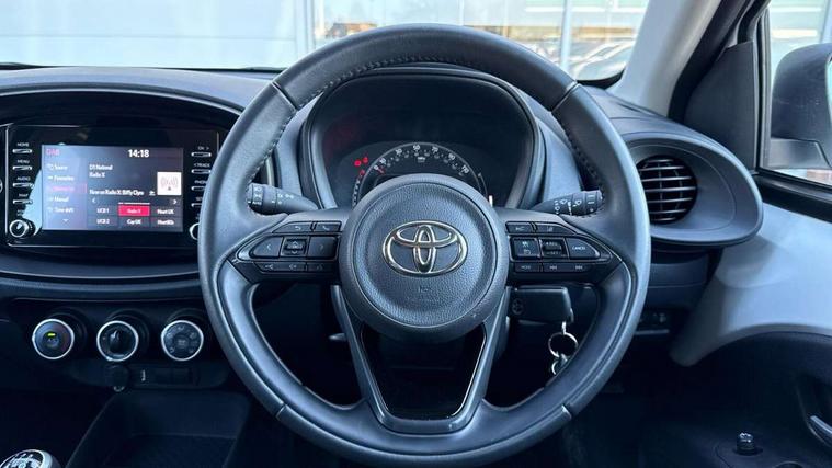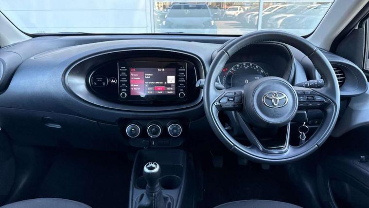 4.2" TFT colour screen, Adjustable speed limiter, Analogue speedometer, Bluetooth connectivity, Digital tachograph, Driver attention alert system, eCall emergency call system, Electric power steering, Intersection turn assist, Key reminder warning, Noise reduction kit, Pre collision system with emergency steering assist, Reversing camera with static guide lines, Smart phone integration with Apple car play/Android Auto, Speed limit display, Start and stop, Vehicle Stability Control (VSC), 4 speakers, DAB digital audio broadcast, Toyota touch 2 multimedia System with 7" Screen display, USB connector, Auto headlights, Automatic headlights cut-off, Bicycle towing hook, Black lower front grille, Black rear bumper, Black side protection mouldings, Black upper front grille, Black wheel arch mouldings, Body colour door handles, Body coloured front bumper, Boot door scuff plate, Electric heated door mirrors, Follow me home headlights, Front power windows, Gloss black door mirrors, Headlight cut-off reminder, LED daytime running lights, LED front light guide, LED High mounted stop lamp, Manual day/night rear view mirror, Manual headlight levelling, Pagoda roof, Power adjustable door mirrors, Power back door, Projector halogen headlights, Rain sensor, Rear combination lights LED bulb type, Rear side wing doors, Rear windscreen defogger, Rear windscreen wiper, Short antenna, Variable intermittent windscreen wipers, 12v power outlet - front, 2 seat bench in 2nd row, 3 spoke leather steering wheel, 50/50 split folding rear seat, Adhesive roof headlining, Adjustable speed limiter switch on steering wheel, Audio and telephone switches on steering wheel, Black insert on steering wheel, Boot light, Centre room light, Chrome interior door handles, Chrome surround on air conditioning buttons, Clean air filter, Fabric upholstery, Floor mats, Front and rear cup holders, Front head rest deco art, Front head restraints, Height adjustable driver seat, Intelligent adaptive cruise control switch on steering wheel, ISOFIX child restraint system on rear seats, Lane departure alert switch on steering wheel, Leather gearshift knob, Light grey roof lining, Manual air conditioning, Manual tilt steering wheel, Manually reclining and sliding driver seat, Manually reclining and sliding front passenger seat, Multimedia switches on steering wheel, Pollen filter, Rear door pockets, Rear head restraints, Resin console box storage, Satin silver insert on gear shift knob, Silver stitching on gear shift knob, Single compartment glovebox with lights, Single front passenger seat, Soft tonneau cover, Sun visors with mirror on driver and passenger side, Voice recognition switch on steering wheel, Toyota safety sense pack - Aygo X, Anti lock braking system + Electronic brake force distribution, Child safety door lock, Emergency brake light signal (EBS), Hill start assist control (HAC), Passenger airbag on/off switch, Seat belt reminder for front and rear seats, Supplement restraints system (SRS) - 6 airbags, Traction control, Tyre pressure warning system, Immobiliser, Remote power door locks, Black air vent surround, Black wheel centre caps, Tyre repair kit,