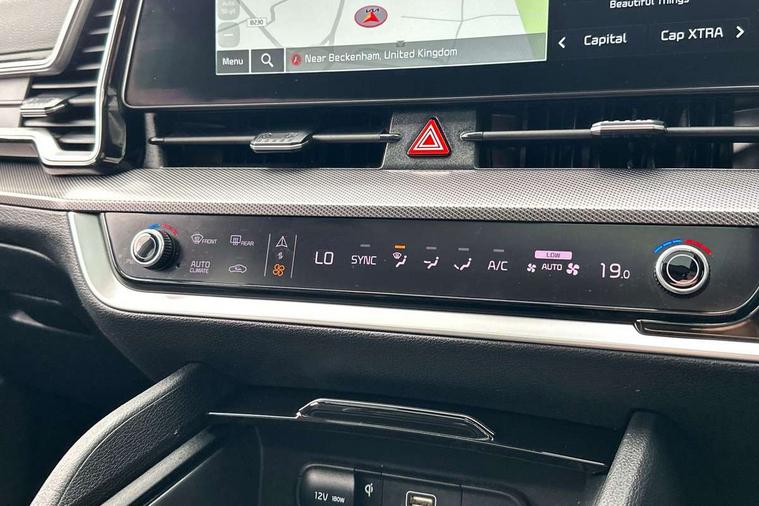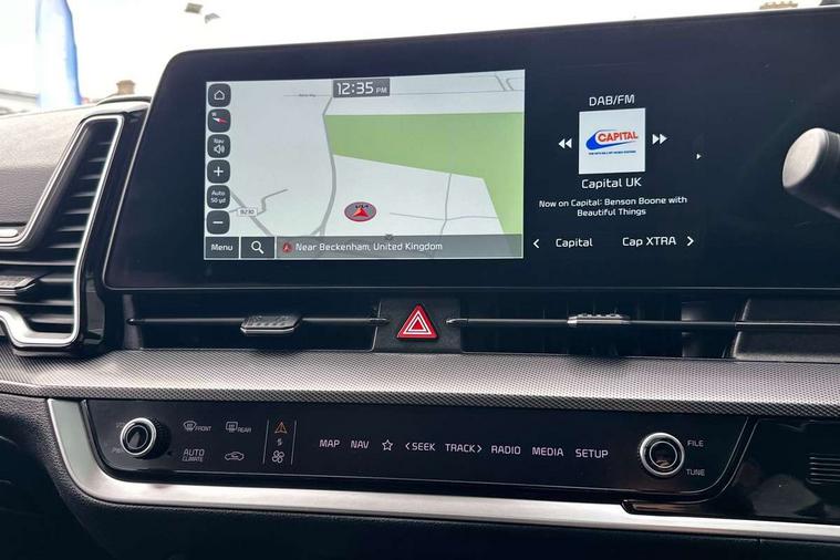 12.3" Display with navigation, 12.3" supervision colour cluster display, 360 degree around view monitor, Apple car play/Android Auto with voice control, Blind spot collision avoidance assist, Blind spot view monitor, Drive mode selector, E-call, Forward collision avoidance assist (FCA) - city/pedestrian/cyclist/junction covering, Front and rear parking sensors, Highway Driving Assist (HDA), Intelligent speed limit assist, Kia Connect (UVO), Lane Following Assist (LFA), Lane keep assist, Low washer fluid warning, Parking collision avoidance assist (PCA), Reversing camera system integrated into centre fascia screen, Smart cruise control with stop and go functionality, Smart power tailgate, Speed sensitive power steering, Trip computer, Windscreen washer level indicator, Wireless Smartphone charger, Intelligent Stop and Go, Bluetooth audio streaming, DAB Radio with MP3, Harman Kardon premium sound system, Rear USB port, Steering wheel mounted audio controls, USB C type charging ports on centre console, USB C type charging ports on side of front seats, USB port for connection of a media device, All round electric windows with drivers and front passenger auto up/down function, Automatic headlight control system, Automatic window defogger, Backlite glass heated with timer, Body colour and black bumper with silver accents, Body colour exterior door handles, Body colour radiator upper garnish and door garnish, Dual LED adaptive headlamps, Electric panoramic glass sunroof (Electric one touch with safety function), Electrically adjustable/heated/folding door mirrors with LED indicators, Front and rear chrome skid plates, Gloss black door mirrors, Gloss black radiator grille, Gloss black side sill and wheel arch body mouldings, Glossy black roof rack, High beam assist, Interior electrochromic mirror, LED daytime running lights, LED front fog lamps, LED High mounted stop light, LED rear combination lamp, Rain sensing wipers with aero blades, Rear fog lamp, Rear privacy glass, Rear side wing doors, Rear spoiler, Rear wiper, Satin finished beltline, Silver coloured inserts to bumpers, Tinted rear glass, Trailer stability assist, 10 way driver/8 way passenger electrically power adjustable seats, 12V power socket in front centre fascia and luggage compartment, 3 seat bench in 2nd row, 3 x passenger assist grips, 40/20/40 split folding rear seat, All-round height adjustable headrests, Ambient lighting, Black headlining, Centre console storage box, Cupholders in rear armrest, D-Shaped sports leather steering wheel and perforated inserts with GT-Line logo, Door courtesy lamps, Drink holder at centre armrest, Driver and front passenger side sunvisors with illuminated vanity mirrors, Driver seat memory function, Drivers seat power lumbar support, Front and rear door storage, Front seat and rear pockets, Front/rear centre armrests, Gear shift indicator, Glovebox illumination, Heated front and outer rear seats, Heated steering wheel, Interior door lock/unlock function, ISOFIX Child seat top tethers and anchor fixings outer rear seats, LED interior personal lamp, LED lighting in overhead console, Luggage area LED light, Luggage area load cover, Luggage net with hooks, Metal paint interior door handles, Paddle shift controls, Rear cabin light, Rear coat hooks, Single front passenger seat, Sports pedals, Suede leather upholstery, Three zone climate control, Tilt/telescopic adjustable steering wheel, Ventilated front seats, Ventilation ducts to rear compartment, Active front headrests, All round 3-point seatbelts, Anti-lock braking system (ABS), Dual front side airbags, Dual horn, Electronic parking brake, Electronic stability control with downhill brake control, Front passenger airbag cut-off switch, Front seatbelt pretensioners + load limiters, Height adjustable front seatbelts, Hill start assist control (HAC), Impact sensing auto door unlocking, Multi collision brake assist, Rear door child safety locks, Rear seat alert system, Traction control, Twin curtain airbags, Twin front airbags, Tyre pressure monitoring system, Advanced anti-theft system including immobiliser and alarm, Door deadlocks, Engine Start/Stop Button with Smart Entry System, Locking wheel nuts, Speed sensitive auto door locking, Visible vehicle identification number, Aluminium pattern finish centre fascia and door garnish, 19" GT-Line alloy wheels, Michelin tyres, Tyre mobility kit,