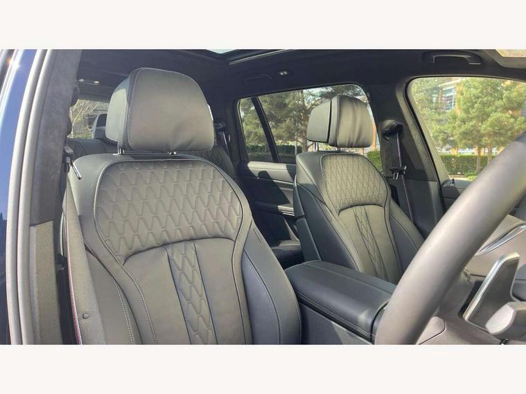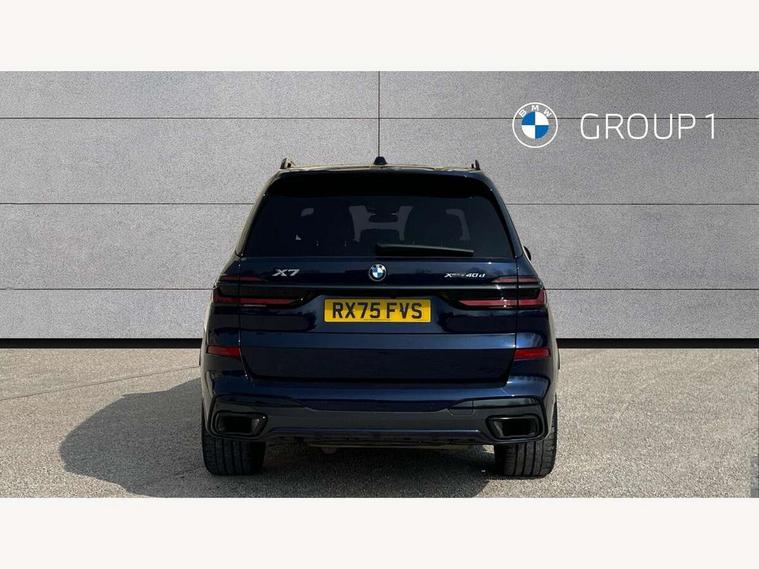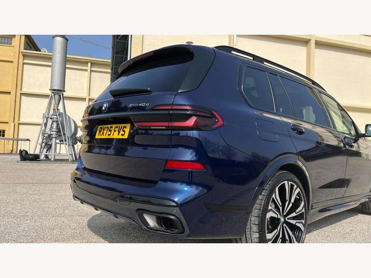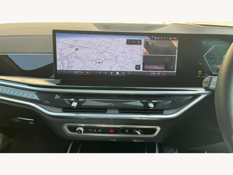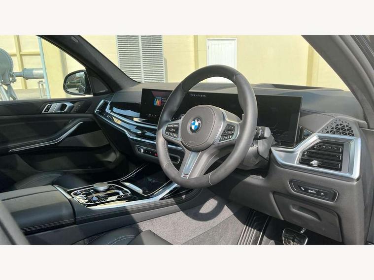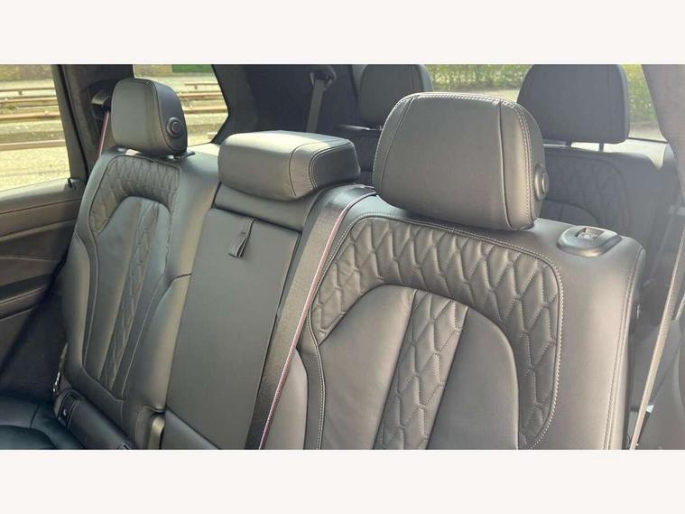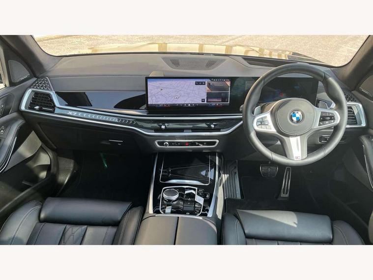 Attentiveness assist, Automatic start/stop function, Automatic tailgate operation, BMW ConnectedDrive online services, BMW Drive recorder, BMW gesture control, BMW Teleservices, Brake pad wear indicator in front and rear, Condition based service, Integrated owner's handbook, Live Cockpit Professional with head up display including 12.3" instrument cluster and 14.9" central display, Parking assistant pro including reversing assistant, PDC, lateral parking aid, reversing assist camera, parking drive off monitoring, 48V Mild hybrid technology, 8 speed automatic with steptronic transmission including automatic hold function and gearshift paddles on the steering wheel, Drive experience switch with comfort mode + ECO PRO + sport mode, Permanent all wheel drive, 2 rear USB-C ports, 2x Front USB (1x USB-C, 1x USB-A), DAB radio, Personal eSim, Acoustic glazing, Adaptive air flap control bars in high gloss black, Air breather and door claddings in high gloss chrome, Body coloured wheel arches, Dynamic brake lights with LED technology, Electrically adjustable and heated aspheric folding side mirrors with auto dimming, electric fold in function, automatic parking function, Exterior and central air inlets in front bumper painted pearl chrome, Follow me home headlight function, Frameless interior mirror, Front and rear electric windows, Heated windscreen washer nozzles, High beam assist, High gloss black shadow line roof rails, High gloss black shadowline trim in side/window frame, window recess cover, window guide, B and C pillar, mirror triangle, mirror base, mirror frame, Integrated turn indicators (door), LED daytime running lights, LED rear lights, LED third brake light in rear spoiler, Rain sensor with automatic headlight activation and windscreen wiper control, Rear side wing doors, Sump guard front and rear painted in silver, Trailer stabilisation logic, 12V - Power sockets with 2x centre console and 1x luggage compartment, 2 seat bench in 3rd row, 2x cupholders in front, rear centre armrest and two in third row seats, 3 seat bench in 2nd row, 3 spoke M leather multifunction steering wheel, 40:20:40 split folding rear seat backrests, Ambient lighting strip in the instrument panel with illuminated, Armrest in front centre console, Compartment in front of cupholder, Driver and front passenger sunvisors with illuminated vanity mirrors and ticket holder, Electrical steering column with adjustable height and length with activation and control on the steering column, Entry sills with illuminated M inscription, Fold down flush into floor of luggage compartment 50:50, Front and rear colour co-ordinated with all standard carpet colours, Front and rear door pockets, Front and rear side armrests integrated into door trim, Front seat back pockets, Grab handles, Height adjustable front headrests, Height adjustable rear headrests, Lockable glove compartment, Nano filter, Single front passenger seat, Soft close doors, Storage tray and compartment with lid in centre console, Wireless charging tray, Additional storage compartment pack - X7, Ambient light interior pack - X7, Connected Package Professional - X7, Interior lighting pack - X7, Luggage compartment pack - X7, M aerodynamics pack - X7, M Sport pack - X7, 3 point seatbelts on all seats, front pyrotechnic belt tensioners, stopper and belt force limiters, front and outer rear seats, Acoustic protection for pedestrians, Active protection, Airbag - Front driver and passenger, side airbags and Head airbags, Anti lock braking system (ABS) with cornering brake control, BMW emergency call, Child seat ISOFIX attachment rear outer seats in 2nd row and both seats in 3rd row includes top tether, Comfort access system with digital key plus, Comfort cushion seats for outer seats in 2nd row, Crash sensor inclu activation of airbags, interior light, safety battery terminal clamp, hazard warn flasher, unlock doors, deactivation of fuel pump, DSC - Dynamic Stability Control, Dynamic Traction Control - DTC, Electromechanical parking brake with automatic drive away release and auto hold function, Front and rear brake discs with interior ventilation, Hill descent control, Integrated braking system, Manual child lock in rear doors, PC iBrake PostCrash approach control warning with light braking function, Tyre pressure monitoring system, Tyre pressure sensors, Variable torque distribution, Warning triangle and first aid kit, Alarm, Central locking including 2 vehicle keys with integrated emergency key, Engine immobiliser, Locking wheel bolts, Galvanic embellisher for controls,