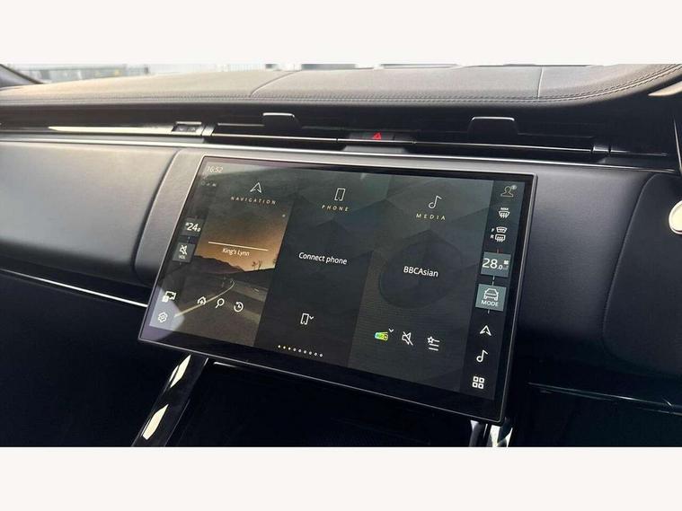 13.1" Touchscreen, 3D 360 degree surround camera with wade sensing, Adaptive cruise control with steering assist, Android Auto, Apple car play, Blind spot assist, Bluetooth connectivity streaming, Driver condition response, Eco mode, Front and rear parking aid, Interactive Driver display instrument cluster, Lane departure warning system, Lane keep assist, Push button start, Rear collision monitor, Rear traffic monitor, Remote, Traffic sign recognition with adaptive speed limiter, Trip computer, Wireless device charging, 8 speed automatic transmission, Adaptive dynamics, All wheel drive system, Automatic access height, Home charging cable, Public charging cable, Terrain Response 2, Twin speed transfer box, DAB Radio (Digital Audio Broadcasting), Incontrol protect - SOS emergency call with automatic collision detection, optimised assistance call and Incontrol remote app essential, Pivi pro connected, USB/aux input socket, Adaptive brake lights, Automatic headlight levelling, Automatic headlights, Centre high mounted stop light, Electric heated/power fold memory door mirrors with approach lights and auto dimming driver side, Electric windows with one touch open/close and anti trap, Flush deployable exterior door handles, Follow me home lighting, Front and rear recovery eyes, Headlight power wash, Heated rear window, Heated washer jets, Heated windscreen, Illuminated aluminium treadplates with Range Rover script, Integrated twin tailpipes, LED tail lights, Metal load space scuff plates, No badges, Rain sensing windscreen wipers, Rear animated directional indicators, Rear fog lights, Rear side wing doors, Rear wash/wipe, Remote window closing, Side repeater indicators in mirror, Trailer stability assist, Winter wiper park position, 3 seat bench in 2nd row, 60:40 seats with power recline and loadthrough, Air quality sensor, Automatic air recirculation system, Bright metal foot pedals, Centre console with armrest, Customer configurable single point entry, Driver's footrest, Easy boot loading, Ebony console door armrests and seatbelts, Electric adjustable steering column, Front and rear cupholders, Front door storage space, Front head restraints, Front map lights, Front seat back map pockets, Front stowage pocket, Front/rear passenger grab handles, Gearshift paddles, Heated steering wheel, Isofix child seat preparation, Loadspace cover, Loadspace Hook, Loadspace light, Loadspace mounting provisions, Lockable glovebox, Luggage tie-downs in loadspace, Multifunction steering wheel, Pollen filter, Power socket, Rear centre armrest, Rear head restraints, Rear ISOFIX, Single front passenger seat, Three 12V accessory power outlets, Upper secondary glovebox, Online pack with data plan - Range Rover Sport, 3 point seatbelts on all seats, Anti-lock braking system (ABS), Brake pre-fill technology, Configurable autolock, Cornering brake control (CBC), DSC - Dynamic Stability Control, EBD - Electronic brakeforce distribution, Electric parking brake, Electronic traction control, Emergency braking, Front seatbelt pretensioners, Front side airbags, Height adjustable front seatbelts, Hill descent control, Hill launch assist, Low traction launch, Occupant protection assist, Passenger seat occupant detector with front airbags, Power operated child locks, Roll stability control, Seatbelt warning, TPMS (Tyre pressure monitoring system), Immobiliser, Intrusion sensor, Keyless entry, Locking wheel nuts, Perimetric and volumetric anti theft alarm, Remote locking,