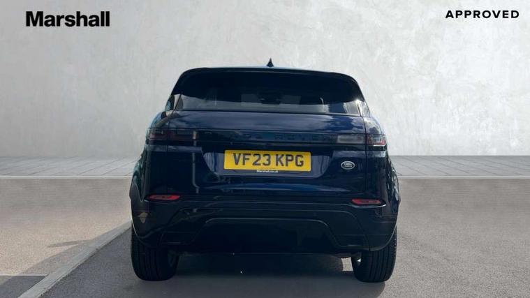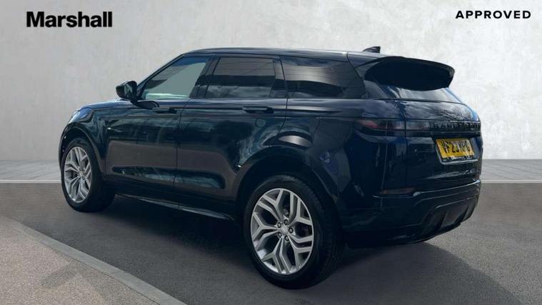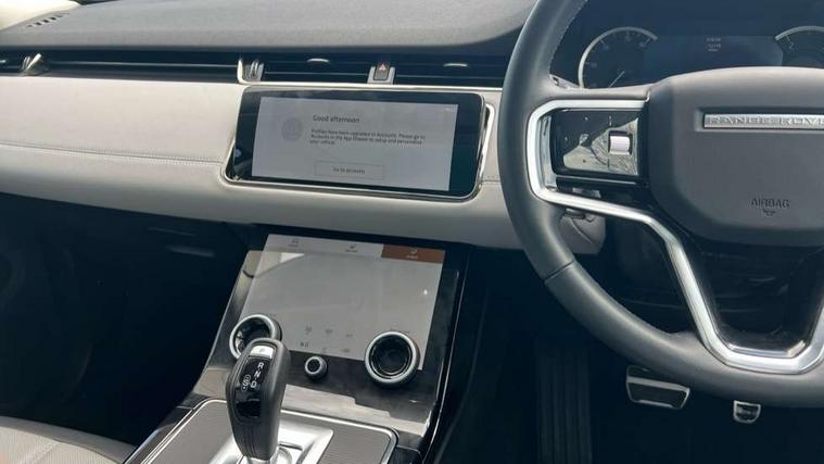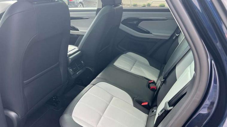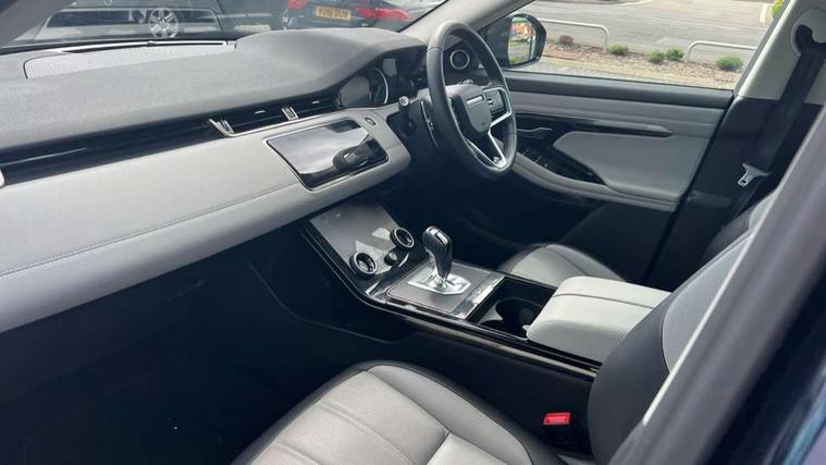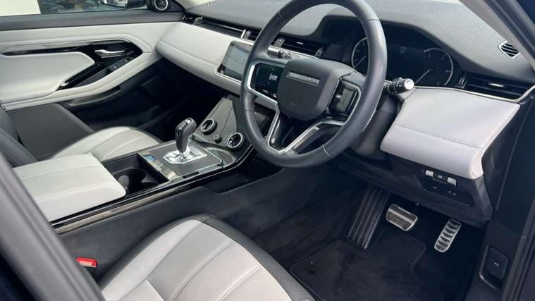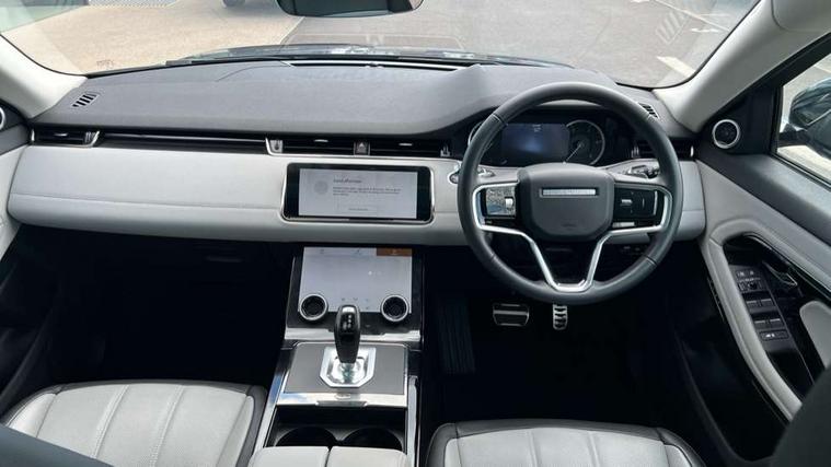 Adaptive cruise control, Android Auto, Apple car play, Blind spot assist, Bluetooth connectivity, Brake pad wear indicator warning light, Driver condition monitor, eCall emergency system, Electronic power assisted steering (EPAS), Front and rear parking aid, InControl remote, Land Rover InControl apps, Lane keep assist, Pivi pro connected includes upgraded infotainment, connected navigation pro, Nuance speech licence, Push button starter, Rear collision monitor, Rear traffic monitor, Traffic sign recognition with adaptive speed limiter, Voice control system, All terrain progress control, Efficient Driveline, Passive suspension, Terrain Response 2 Auto, Digital Audio Broadcast radio-DAB, Steering wheel mounted controls, Auto headlights, Automatic headlight levelling, Electric windows with one touch open/close and anti trap, Evoque and R-Dynamic badge, Flush deployable exterior door handles, Heated rear window with timer, Heated washer jets, Heated windscreen, Power fold, auto-dimming, heated door mirrors with approach lights and auto dimming driver side, Rain sensing windscreen wipers, Rear fog lights, Rear side wing doors, Rear wiper, Tailgate spoiler, Third brake light, 40:20:40 split folding rear seats with centre headrest and armrest, Ambient interior lighting, Bright metal pedals, Isofix system on outer rear seats, Overhead lighting console, Overhead stowage for sunglasses, Passive front head restraints, Rear air vents, Rear centre headrest, Rear head restraints, Satin chrome gearshift paddles, Single passenger seat, Sunvisors with illuminated vanity mirrors, Twin sliding front centre armrest, 3 rear 3 point seatbelts, Anti-lock braking system (ABS), Customer configurable autolock, DSC - Dynamic Stability Control, Electronic brake force distribution, Electronic parking brake, Electronic traction control, Emergency braking, Front and rear seatbelt reminder, Hill descent control, Hill launch assist, Low traction launch, Power operated child locks, Roll stability control, Six airbags - Driver and passenger airbags/driver knee airbag/front side airbag and curtain airbags, Torque vectoring brake, Tyre pressure monitoring system, Alarm, Immobiliser, Intrusion sensor, Keyless entry, Locking wheel nuts,