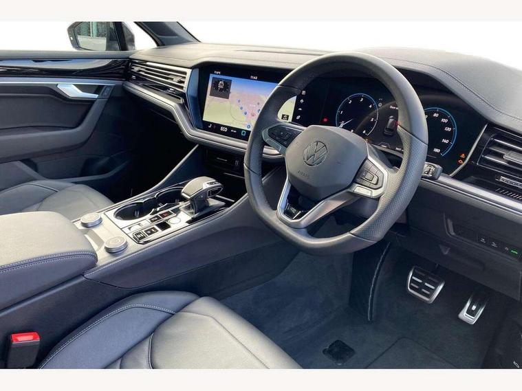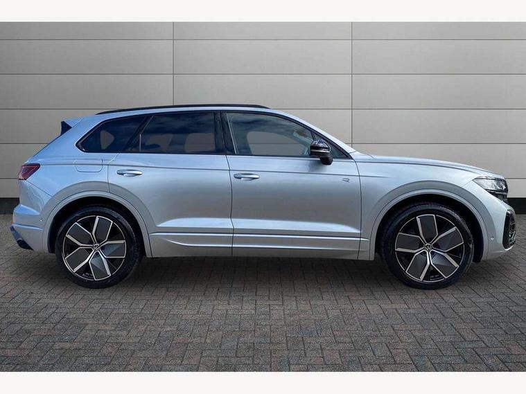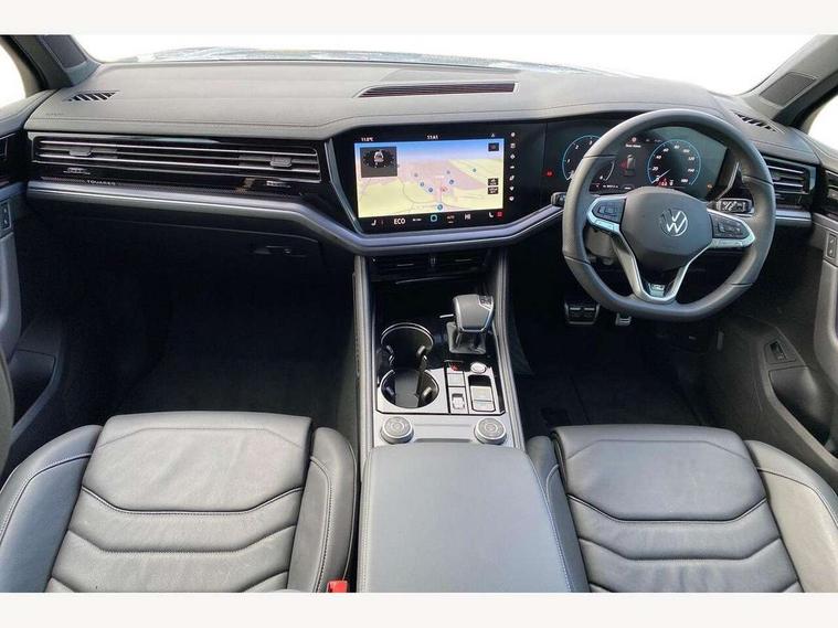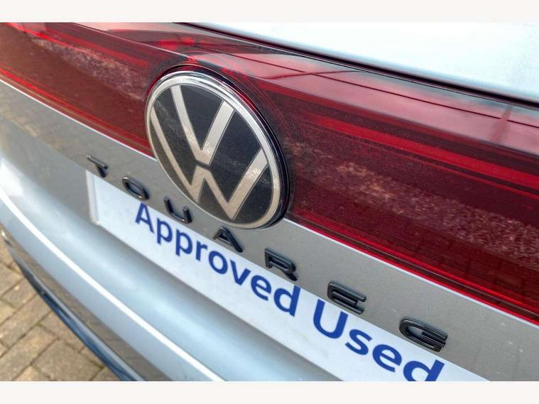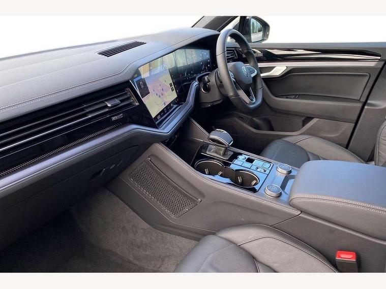 15" Screen Top infotainment system Premium (MIB3), Adaptive cruise control, Advanced driver attention and drowsiness monitor, Driver profile selection, Dynamic road sign display, E-Sim card for online connectivity, eCall emergency system, Innovision cockpit, Intelligent park assist, Mobile phone interface with inductive charging, Multi-colour Active Info display, Park Assist - Sensor controlled steering aid to assist parallel or bay parking, PAS, Warning signal and warning light for front and rear seatbelts not fastened, Wireless app connect, Adaptive chassis control, DAB Digital radio, Diversity antenna for AM/ FM reception, We Connect and We Connect Plus functionality, Automatic coming/leaving home lighting function, Automatic headlights, Black door mirrors, Black style comfort bumpers, Dynamic headlight range control with dynamic cornering light, Electric front tilt/slide panoramic sunroof and fixed rear sunroof, Electrically power adjustable, heated, folding, auto dimming, front passenger exterior door mirror lowering function, External USB type C socket and charging sockets, Gloss black roof rails, HD LED Matrix beam plus digital headlight projection with variable light distribution, Headlight washers, Highway light, LED 3rd brake light, LED daytime running lights, LED rear combination lamp with variable lighting functions and special styling, Poor weather light, Rain sensor, Rear exhaust tailpipe, Rear fog light with back up light on both sides, Rear light bar and illuminated logo, Rear side wing doors, Rear wiper, Stainless steel door sill protection, 12V socket in centre console, 3 rear headrests, 3 seat bench in 2nd row, 4 zone climate control, Airbag label on sun visor and B-pillar, Brushed stainless steel pedals, Double sun visors with illuminated vanity mirrors, Front + rear carpet mats, Front centre armrest, Leather wrapped multifunction sports steering wheel, heated, with touch control and shift paddles, Mechanical rear seat release, Power adjustable lumbar support in front, Power seats in front, right side with memory features and seat cushion depth adjustment, Rear seat backrest and split folding with center armrest, Single front passenger seat, Memory pack plus - Touareg, 3 point seatbelts, outer rear with ECE lable, ABS, Child locks on rear doors, Curtain airbags, Driver and front passenger safety-optimised head restraints, Driver/Front Passenger airbags, Extended pedestrian protection measures, Front assist, Front seat side impact airbags, Generative braking with start and stop system, Height adjustable 3 point front seatbelts with pre tensioners, Passenger airbag deactivate switch, Three 3 point rear seatbelts, Two tone horn, Warning triangle and first aid kit, Alarm system with interior protection, Easy open and close sensor controlled luggage compartment opening and closing with remote unlocking, Keyless Access Keyless locking and starting system with SAFELOCK, Aluminium decorative inserts, Black decorative trims, Gloss black decorative inserts in centre console, Tool kit,