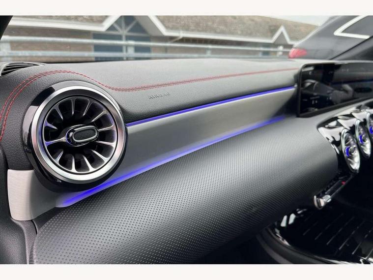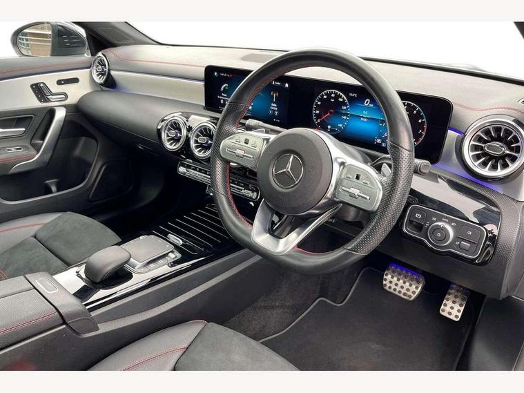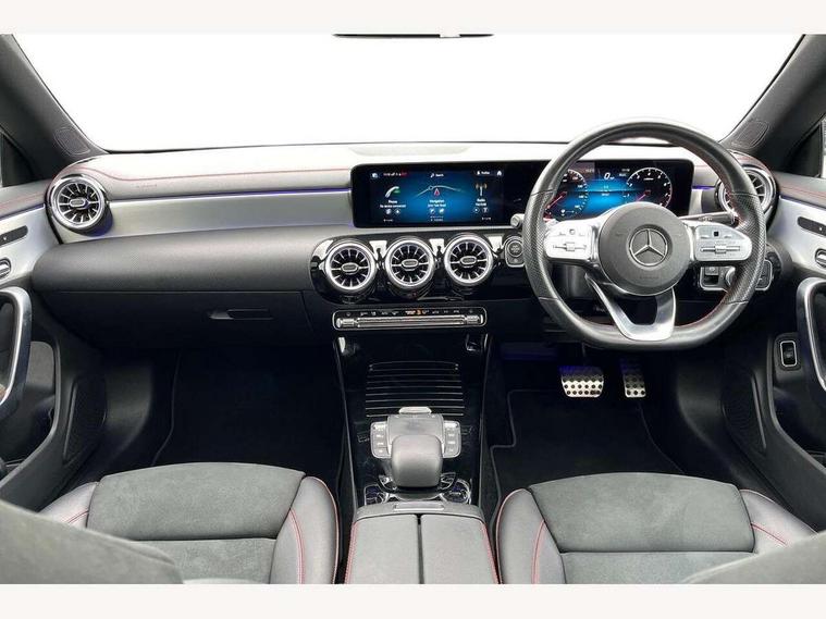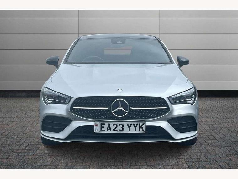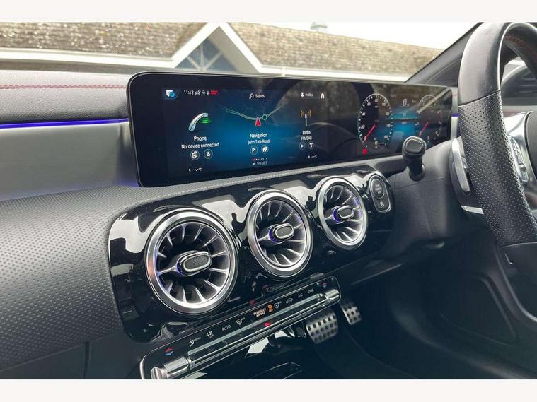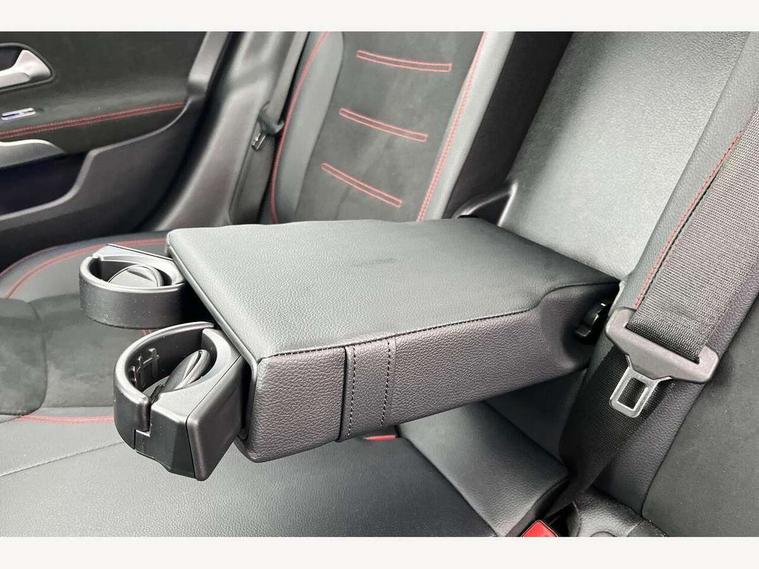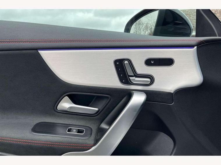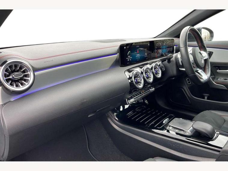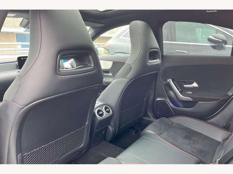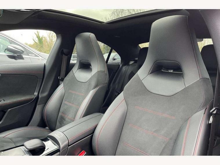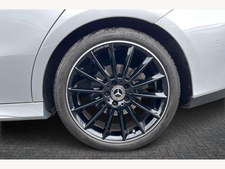 10.25 inch Instrument display with digital cockpit, 10.25 inch touchscreen central media display, Active lane keeping assist, Attention assist - Monitors steering behaviour and long journey fatigue, Blind spot assist, Bluetooth connection, Car wash mode, Cruise control with limiter, Direct steer system with speed sensitive power steering, DYNAMIC SELECT with a choice of driving modes (ECO, Comfort, Sport and Individual), ECO start/stop function, Fluid level warning indicator for fuel, oil, coolant and washer fluid, Hard-disk navigation, Hey Mercedes Voice activation, Lamp failure indicator, Mercedes me connect including emergency call system, accident recovery, breakdown and maintenance management, Mercedes me remote services, Outside temperature gauge, Owners manual and service booklet in English, Pre-installation of private car share, Preinstallation for Mercedes Benz link, Radio aerial integrated into front and rear windshields, Service indicator (ASSYST), Smartphone integration with Apple CarPlay and Android auto, Speed limit assist, Traffic sign assist, Trip computer in multifunction display with current consumption indicator, Lowered comfort suspension, Rear axle multi-link, DAB digital radio tuner, MBUX multimedia system, Mid-range sound system, USB (type C) ports (2) in stowage compartment and 1 in front of centre console, Adaptive brake lights, AMG body styling with AMG front apron and rear apron and visible exhaust tailpipe in chrome trim elements, AMG bodystyling side skirts, Body colour bumpers, Body colour door handles, Chrome beltline strips, Diamond radiator grille pins in chrome, Electric panoramic sunroof with automatic tilt and convenience closing fuinctions, rain sensor auto closing and electronic roller sunblind, Electric windows, Electrically adjustable and heated door mirrors with integrated LED indicators, Exhaust system with 2 Visible tailpipe trim elements and rear apron with trim in chrome, Headlamp assist automatic headlamp activation, Heated glass rear windscreen + timer control, High level LED third brake light, Integrated LED daytime running lights, Interior mirror with black reading lamps and frameless, LED tail lamp, Multibeam LED headlamps with adaptive highbeam assist plus, Privacy glass with dark tinting on rear side windows and rear window, Rain sensing windscreen wipers with two sensitivity settings, Rear boot, Rear fog lamp, Rear side wing doors, Variable front intermittent wipers, Window line trim strip in chrome, 3 seat bench in 2nd row, 3 spoke flattened bottom nappa leather multifunction steering wheel with perforated leather in grip area, 40:20:40 split folding rear seat backrests, Air conditioning - Two zone thermotronic luxury automatic climate control with display, Air vents with surround in silver chrome, Artico man-made leather upholstery, Automatic child seat recognition sensor, Black roof lining, Brushed stainless steel sports pedals with rubber studs, Electrically adjustable front memory seats including lumbar support, Floor mats with stitched AMG lettering, Front centre armrest with stowage, Galvanished gear shift paddles on steering wheel, Heated front seats, Illuminated front door sills with changeable cover, Illuminated glove compartment stowage, Interior lighting - 64 colour Ambient lighting, Luggage net on driver/front passenger seat backrest, Manually adjustable front seats, Manually height and reach adjustable steering column, Rear armrest with two integral cup holders for drinks, Rear head restraints, Single front passenger seat, Sport seats with fixed head restraints, Stowage compartment in centre console with retractable cover, Sunvisors with illuminated vanity mirrors, Touchpad on center console, Twin front cupholders, Two outer rear seat isofix and top tether child seat fixing points, Keyless go comfort pack - CLA, Light and sight pack - CLA, Mirror pack - CLA, Night package - CLA, Parking package - CLA, Active bonnet pedestrain safety measure which detects an impact and raises bonnet by 65mm, Active brake assist includes forward collision warning system with autonomous braking, Adaptive brake assist with hold function and hill start assist, Anti lock braking system (ABS) with brake assist, Black seat belts, Bonnet with power domes, Brake pad wear warning indicator, Childproof locks manually operated for rear doors and electrically operated for rear power windows, Crash responsive emergency lighting, Driver and front passenger head and sidebags, Driver and front passenger windowbags, Drivers knee airbag, Dual stage driver and front passenger airbags, Electric parking brake, Electronic stability programme with acceleration skid control, ESP curve dynamic assist, Exit warning, Front and rear seatbelt reminder, Front passenger seat occupancy sensor, Three point rear seat belts, Tyre pressure monitoring system, Warning triangle and first aid kit, Guard 360 degree guard vehicle protection system with immobiliser and interior protection, Remote central locking and crash sensor with emergency opening function, Light aluminium with longitudinal grain interior trim, 19" AMG multi-spoke black painted light alloy wheels with high sheen rim finish, Summer tyres, Tirefit tyre sealant kit,