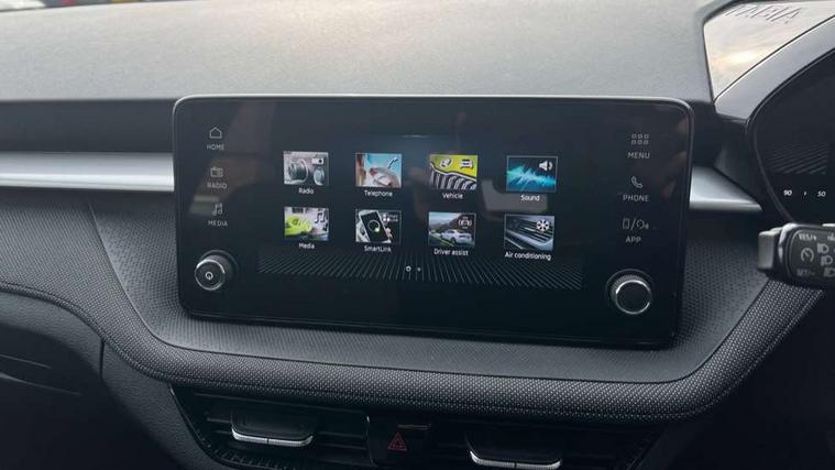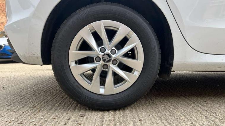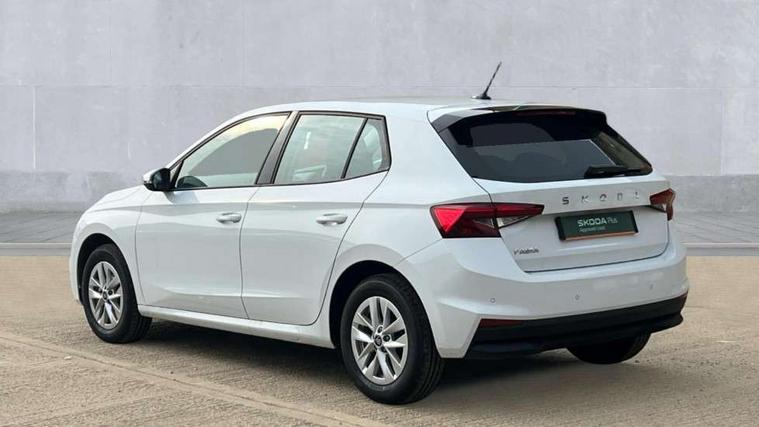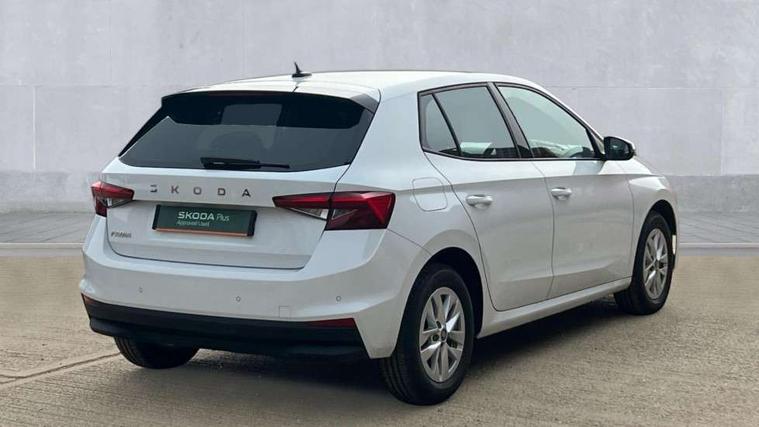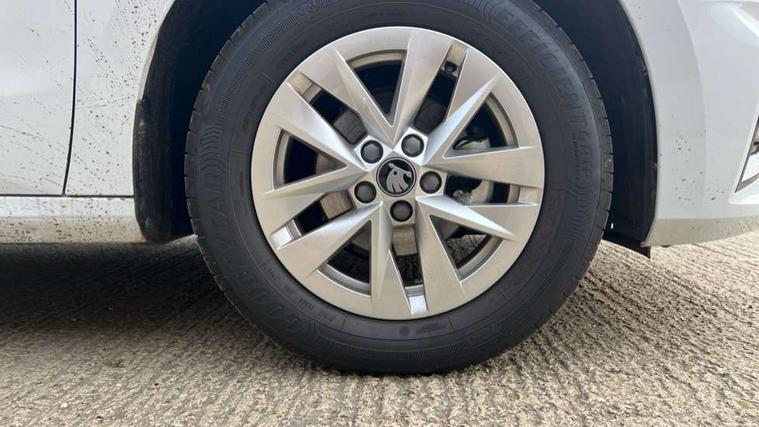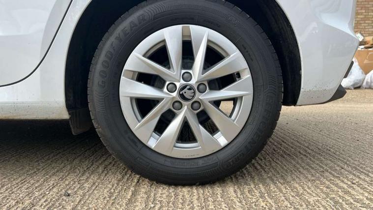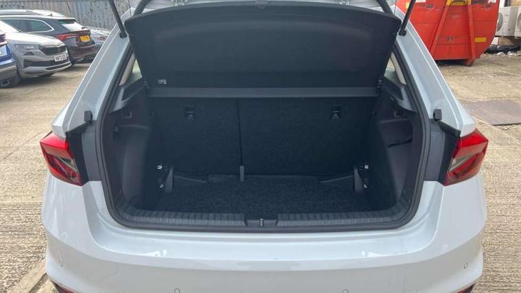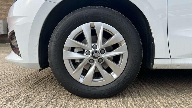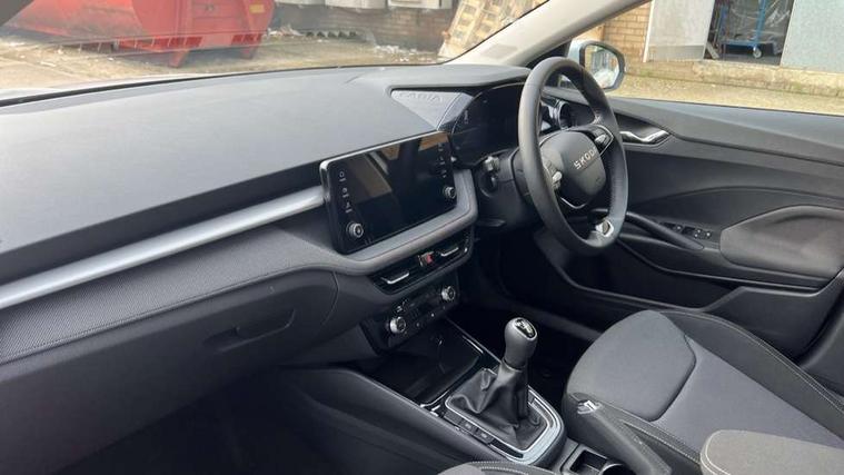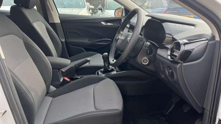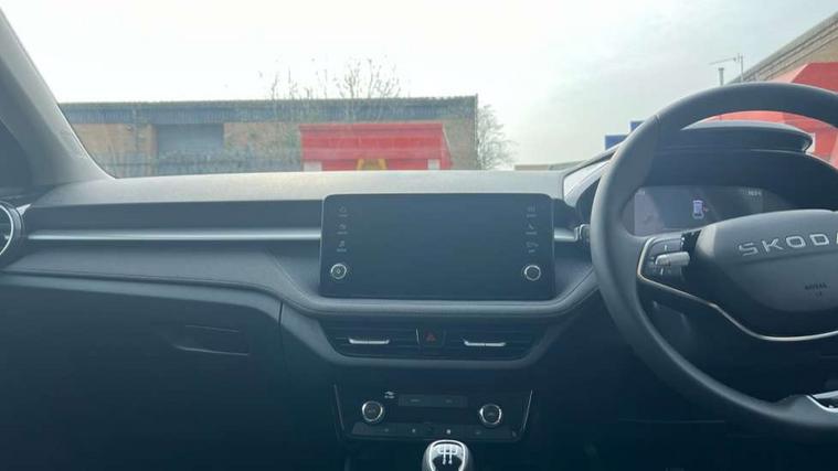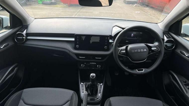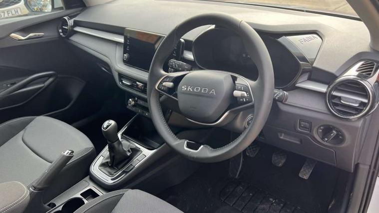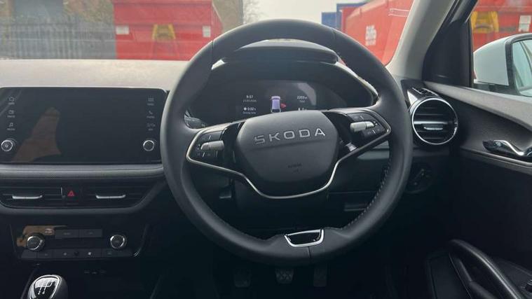 8" Digital instrument display, Advanced driver attention and drowsiness monitor, Bluetooth connection, Cruise control with speed limiter, Driver alert system, Electromechanical power steering, Exterior temperature gauge, Lane assist including road edge detection, Rear parking sensors, Service interval indicator, Traffic sign recognition, Wireless SmartLink for Apple CarPlay and Android Auto, 6 Speakers (4 in front and 2 in rear), 8.25" Skoda infotainment touchscreen display, Auxiliary socket for external MP3 player, DAB digital radio reception, Auto dimming rear view mirror, Body colour door mirrors, Body coloured bumpers, Door mirror integrated indicators, Front and rear electric windows, Front window wiper intermittent control, Headlight range control - Automatic, Ice scraper in fuel cap, LED 3rd brake light, LED daytime running lights with coming and leaving home feature, LED rear lights, Rear LED fog light, Rear side wing doors, Rear window wiper with washing nozzles, Roof mounted spoiler, SKODA tailgate lettering in chrome, Unique dark chrome design logo on alloy wheels, 2 reading lights in front and 2 reading lights in rear, 3 rear headrests, Backrest split and folding, Central console with removable cup holder and storage box, Chrome handbrake release button, Dual zone air conditioning with climatronic electronic control, Fabric upholstery, Front centre armrest, Gearshift knob/handle in leather, Grain satin black interior door handles, Hand brake lever handle in leather, Height adjustable front headrests, Height adjustable front seats, Height adjustable steering wheel, ISOFIX and TopTether anchorage points to the outer rear seats, ISOFIX and TopTether on the front passenger seat, Luggage compartment lighting, Manually adjustable lumbar support in front seats, Pollen filter, Rear seat bench unsplit, Single front passenger seat, Skoda lettering on steering wheel, Storm grey headlining, Sun visors with mirror and airbag label on passenger side, Textile floor mats, Ticket holder, Umbrella in drivers door, Ambient lighting pack - Fabia Hatchback, 3-point height adjustable front seats belts with pretensioner and force limiter, Automatic warning lights in case of crash, Driver and passengers airbag with switch off function, e-Call+, ESC including ABS, MSR, ASR, EDS, HBA and XDS, Front and rear seat belt warning, FRONT ASSIST (AEB City and AEB Inter Urban), Front side airbags, Head airbags, One tone horn, Pedestrian protection, Three rear 3-points safety seat belts with pretensioner and force limiter including stop function for outer rear seat belts, Tyre pressure monitoring system, Anti-theft alarm system including immobiliser, interior monitoring, backup horn, and towing protection, Central locking with radio remote control, interior controls, SAFE function and 2 foldable keys, KESSY - Keyless engine start/stop, Black painted air vents, Grain satin black central console cover, Metallic grey upper decorative trim, Satin black door and side trim panel in front, Textile Kota grey lower decorative inserts, Anti-theft wheel bolts protection, Super-low rolling resistance tyres,