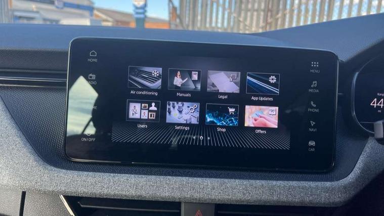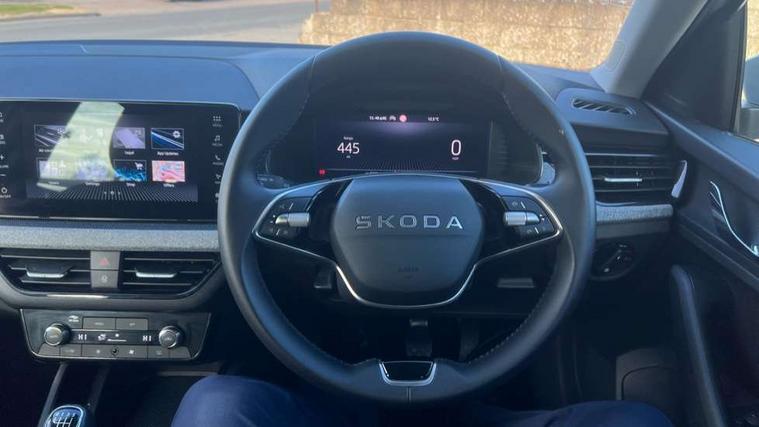 Advanced driver attention and drowsiness monitor, Bluetooth, e-Call (emergency call), Front assist system, PAS, Rear parking sensors, Rear view camera, Speed limiter, Tailgate, Traffic sign recognition, Virtual Cockpit - 10.25" digital display, Voice control system, Wireless smartlink, 4 USB C ports, 8 Speakers, 9.2" Skoda navigation display, DAB radio, Auto dimming rear view mirror, Automatic headlamp activation with Coming home and Leaving home feature, Automatic high/low beam, Body colour bumpers, Body colour door mirrors and handles, Chrome moulding around grille, Front and rear electric windows, Full LED headlights, Heated rear window, LED 3rd brake light, LED brake lights, LED daytime running lights, LED front turning lights, LED high beam, LED low beam, LED taillights, Rear LED fog light, Rear side wing doors, Rear wiper, Tinted windows, Unique dark chrome design logo on alloy wheels, 12V socket in luggage compartment, 3 seat bench in 2nd row, Black / Grey armrest stitching, Black hotstamping, Cargo elements, Chrome inner door handles, Door inserts in satin black, Driver and passenger sun visors with vanity mirror, Dual zone climate control, Front and rear roof lights, Front centre armrest, Front head restraints, Glasses storage in roof liner, Height adjustable driver seat, Height adjustable passenger seat, Ice scraper, Illuminated glove compartment, Inner circulation control with pollen filter, ISOFIX for front passenger seat, Isofix preparation for back seats, Leather gearknob and handbrake lever, Loft cloth upholstery, Luggage net under rear parcel shelf, Manual lumbar support for front seats, Net package and top tether hooks in boot space, Pearl grey ceiling, Pocket on the back of both front seats, incl. mobile phone pockets, Single front passenger seat, Skoda lettering on steering wheel, Textile floor mats, Third rear headrest, Ticket holder, Top tether for front passenger seat, Umbrella in driver's door, 3x3 point rear seatbelts, ABS, Child locks, Curtain airbags and front side airbags, Disc brakes, Driver and front passenger airbags, ESP, Hill hold control, Manual leather parking brake, One tone horn, Passenger airbag switch off function, Seatbelt reminder for driver and front passenger, Tyre pressure monitoring system, Anti theft alarm system with interior monitoring, backup horn and towing protection, Anti-theft wheel bolts, Remote central locking with 2 remote folding keys, SAFE function for remote central locking, Decord pad, door inserts Kota uni,