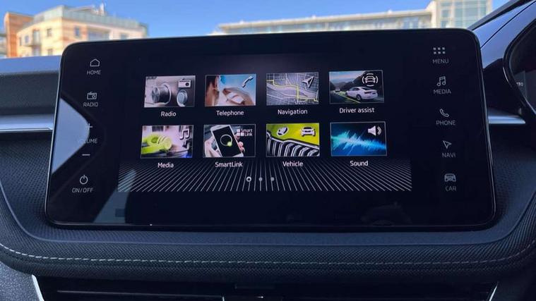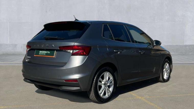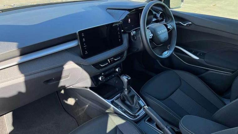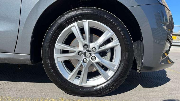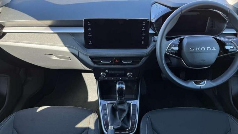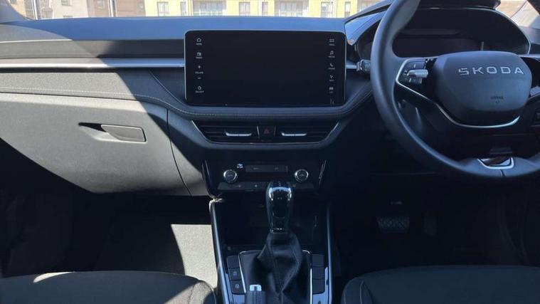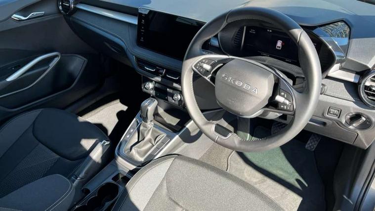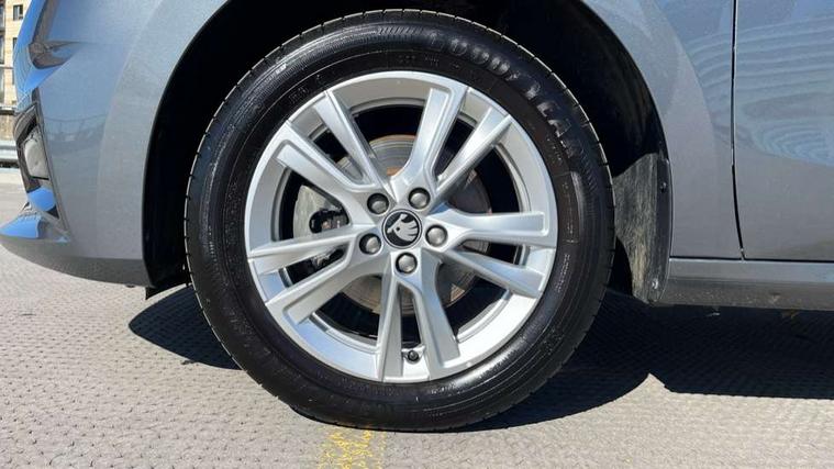 Advanced driver attention and drowsiness monitor, Bluetooth connection, Electromechanical power steering, Exterior temperature gauge, Service interval indicator, Traffic sign recognition, Virtual cockpit with 10.25" colour display, Wireless SmartLink for Apple CarPlay and Android Auto, 6 Speakers (4 in front and 2 in rear), 9.2" colour display skoda navigation system with voice control and web radio, Auxiliary socket for external MP3 player, DAB digital radio reception, Auto dimming rear view mirror, Body colour door mirrors, Body coloured bumpers, Chrome window surround, Door mirror integrated indicators, Front and rear electric windows, Front window wiper intermittent control, Headlight range control - Automatic, Ice scraper in fuel cap, LED 3rd brake light, LED daytime running lights with coming and leaving home feature, LED rear lights, Privacy glass, Rear LED fog light, Rear side wing doors, Rear window wiper with washing nozzles, Roof mounted spoiler, SKODA tailgate lettering in chrome, Unique dark chrome design logo on alloy wheels, 2 LED reading lights in front and rear, 3 rear headrests, Backrest split and folding, Central console with removable cup holder and storage box, Chrome handbrake release button, Comfort seats, Door sills with fabia badging, Dual zone air conditioning with climatronic electronic control, Fabric upholstery, Front centre armrest, Gearshift knob/handle in leather, Hand brake lever handle in leather, Height adjustable front headrests, Height adjustable front seats, Height adjustable steering wheel, ISOFIX and TopTether anchorage points to the outer rear seats, ISOFIX and TopTether on the front passenger seat, Luggage compartment lighting, Manually adjustable lumbar support in front seats, Metallic grey interior door handles, Pollen filter, Rear seat bench unsplit, Single front passenger seat, Skoda lettering on steering wheel, Storm grey headlining, Sun visors with mirror and airbag label on passenger side, Textile floor mats, Ticket holder, Umbrella in drivers door, 3-point height adjustable front seats belts with pretensioner and force limiter, Automatic warning lights in case of crash, Driver and passengers airbag with switch off function, e-Call+, ESC including ABS, MSR, ASR, EDS, HBA and XDS, Front and rear seat belt warning, FRONT ASSIST (AEB City and AEB Inter Urban), Front side airbags, Head airbags, Hill hold control, One tone horn, Pedestrian protection, Three rear 3-points safety seat belts with pretensioner and force limiter including stop function for outer rear seat belts, Tyre pressure monitoring system, Anti-theft alarm system including immobiliser, interior monitoring, backup horn, and towing protection, Central locking with radio remote control, interior controls, SAFE function and 2 foldable keys, Black painted air vents, Metallic grey central console cover, Metallic grey upper decorative trim, Satin black door and side trim panel in front, Textile microsuede grey lower decorative trim with art grey stitching, Anti-theft wheel bolts protection, Super-low rolling resistance tyres,