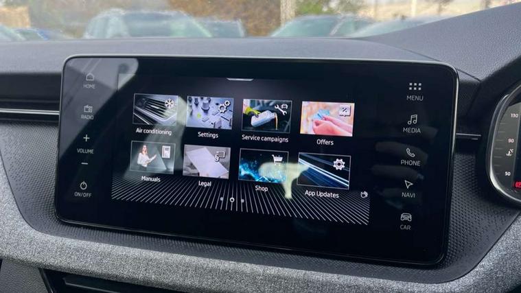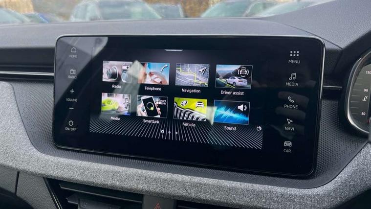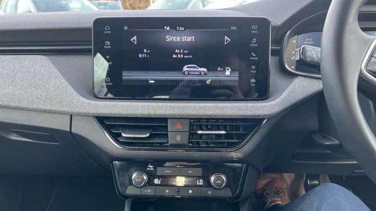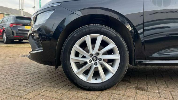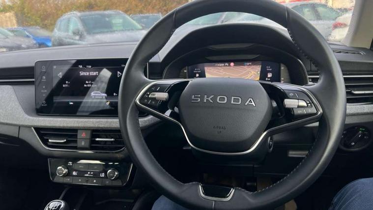 Advanced driver attention and drowsiness monitor, Bluetooth system, E-call, Front assist system, PAS, Rear parking sensors, Rear view camera, Service indicator, Speed limiter, Traffic sign recognition, Virtual cockpit with 10.25" display, Voice control system, Wireless smartlink, 4 USB C ports, 8 Speakers, 9.2" Skoda navigation display, DAB Digital radio, Auto dimming rear view mirror, Automatic headlight control with coming home and leaving home feature, Black roof rails, Body colour bumpers, Body colour door mirrors and handles, Chrome grille surround, Front and rear electric windows, Full LED headlights, Heated rear window, LED brake lights, LED daytime running lights, LED front turning lights, LED high beam, LED low beam, LED third brake light, Rear LED fog light, Rear side wing doors, Rear wiper, Ticket holder inside windscreen, 12V socket in luggage compartment, 3 seat bench in 2nd row, Black hotstamping, Cargo elements, Chrome inner door handles, Driver and passenger sun visors with vanity mirror, Dual zone climate control, Front and rear roof lights, Front centre armrest, Front head restraints, Glove compartment with illumination, Height adjustable driver seat, Height adjustable front passenger seat, Ice scraper, Inner circulation control with pollen filter, ISOFIX on front passenger seat, Isofix preparation for back seats, Krepp recycled decor inserts, Leather gearknob and handbrake lever, Loft cloth upholstery, Manual lumbar support for front seats, Net package and top tether hooks in boot space, Net under rear shelf, Overhead glasses storage compartment, Pocket on the back of both front seats include mobile phone pockets, Rake/reach adjustable steering wheel, Reading lights, Satin black door inserts, Single front passenger seat, Textile floor mats, Third rear headrest, Top tether for front passenger seat, Umbrella in driver's door, 3x3 point rear seatbelts, Airbags - driver and front passenger, Disc brakes, ESP, Extended and predictive pedestrian/cyclist protection, Front passenger airbag deactivation switch, Front side airbags with curtain airbags, Hill hold control, Manual leather parking brake, Manual rear child locks, One tone horn, Seatbelt reminder for driver an co-driver, Traction control, Tyre pressure monitor, Anti-theft alarm system with interior monitoring, backup horn, towing protection and remote central locking with SAFE system, Anti-theft wheel bolts, Electronic engine immobilizer,