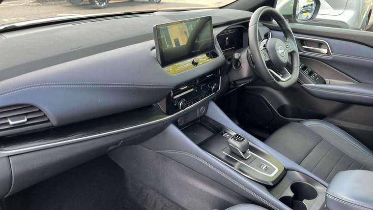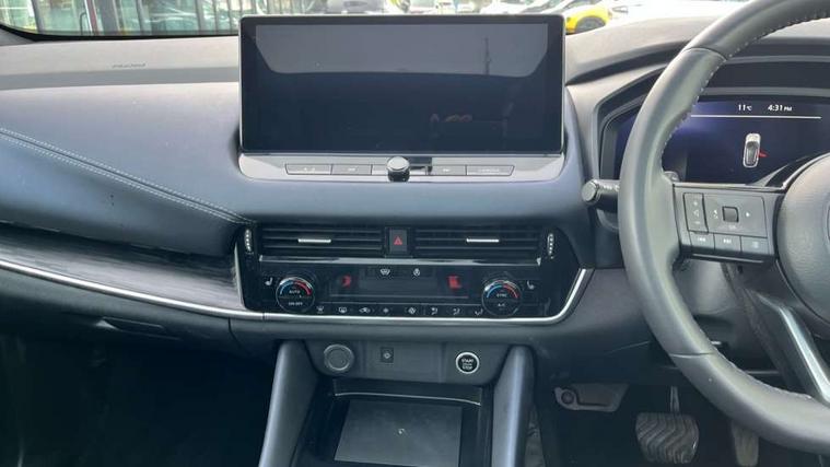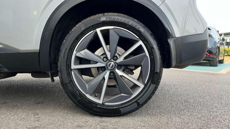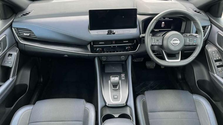 Advanced windscreen head up display, Android auto/Apple CarPlay (Wired), Blind spot warning, Drive modes (sport, normal, eco), Electric speed sensitive power steering, Emergency and breakdown call, Front and rear parking sensors, Full Digital 12.3" TFT Digital Combimeter, Google maps services - search, weather, 3D maps and Google street view, Hands free power tailgate, Idle stop/start system, Intelligent around view monitor, Intelligent Cruise control (ICC), Intelligent driver alert system, Intelligent forward collision warning, Intelligent lane intervention, Lane departure prevention, Lane departure warning system, Lane keep assist, Moving object detection, Nissan connect 12.3 inch touchscreen infotainment system, Nissan connect navigation, ProPilot, Push button starter, Rear cross traffic alert, Rear view camera, Remote control services - door locks, lights, horn and car locator, Telematics - notifications and connectivity services, TomTom live traffic services, Traffic jam pilot, Traffic sign recognition with legal speed adjustment, Trip computer, Virtual personal assistant and firmware over the air capability, Wireless apple carplay, Wireless charging pad, 6 speakers, AM/FM audio system with DAB, Bluetooth audio streaming, Front USB connections (Type-A and Type-C), Rear USB charging only ports (Type-A and Type-C), 3rd brake light, Auto dimming rear view mirror, Auto rear wiper when reversing, Automatic hazard signal with emergency stop signal, Body colour mirror caps, Body coloured door handles, Bodyside mouldings, Chrome side window finisher, Door handle with button, Electric auto folding door mirrors, Electrically adjustable and heated door mirrors with LED turn indicator, Follow me home headlights, Front and rear LED turning signals, Headlights auto levelling system, Intelligent auto headlights, LED daytime running lights, LED headlights with adaptive driving beam, LED rear lights, One touch front and rear electric windows with remote opening and closing, Partially body coloured bumpers, Privacy glass, Rear bumper with graphite insert, Rear reversing light (bulb lighting), Rear roof spoiler, Rear side wing doors, Rear styling plate, Shark fin antenna, Splash free rain sensing wipers, Super UV and infrared cut glass, Thermaclear heated windscreen, Three blink turn signal, 12v power socket in dashboard and luggage, 2x Rear coat hooks, 3 bench rear seats in 2nd row, 3 rear headrests, 4 folding assist grip, 6 Luggage hooks - 4 on floor, 2 on side, 60/40 split folding rear seat bench, Ambient lighting around centre console, Ambient lighting in front doors, Centre console storage tray, Chrome interior door handles, Cloth/syntech leather monoform upholstery, Dark black/blueish PVC wrapping, Dark headlining, Driver and front passenger sunvisors with illuminated vanity mirrors, Driver seat back pocket, Dual zone automatic climate control with pollen filter, Electrically adjustable driver seat, Electrically adjustable lumbar support for driver, Front and rear door storage, Front centre console and armrest, Front cupholders x 2, Front door with bottle holders, Glovebox with light, Hard trunk cover, Heated front seats, Heated steering wheel, Height adjustable driver's seat, Height adjustable front headrests, Height adjustable passenger seat, Leather steering wheel, Luggage board system, Luggage space lighting, Manual lumbar support on passenger seat, Manually adjustable passenger (slide recline + lifter), Multifunction steering wheel, Passenger seat back pocket, Rear armrest with 2 cupholders, Rear door bottle holders, Single front passenger seat, Soft PVC kneepad, Steering wheel gearshift paddles, Steering wheel switches, Tilt/telescopic adjustable steering wheel, Two rear isofix child seat anchorage points with top tether, Welcome light and doors with console tray ambient lighting, Glass roof pack with roof rails - Qashqai, 3x3 point rear seatbelt pretensioners + load limiters, ABS with EBD and brake assist, Active brake limited slip, Auto hold function, Child locks on rear doors, Curtain and front side, far side airbags, Driver and passenger airbags, Driver, passenger and 2nd row rear seat belt reminder, Electronic parking brake, Front seatbelt pretensioners + load limiters, Height adjustable front seatbelts, Hill start assist, Intelligent blind spot intervention, Intelligent front emergency braking with pedestrian, cyclist recognition and junction assist, Intelligent rear automatic braking, Tyre pressure monitoring system, Vehicle dynamic control, Capless fuel filler, Engine immobiliser, Intelligent Key, Remote central door locking with deadlocking, Thatcham Cat.1 alarm, Interior instrumental panel C finisher, 19" Alloy wheels, Tyre puncture repair kit,