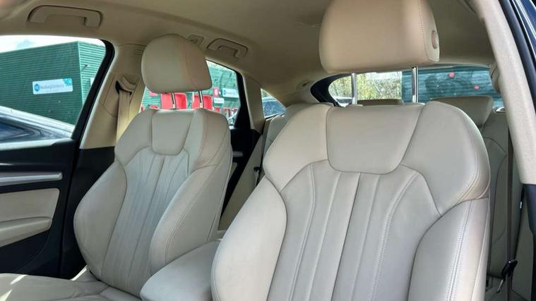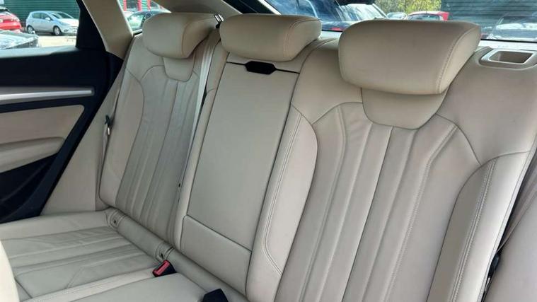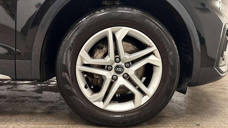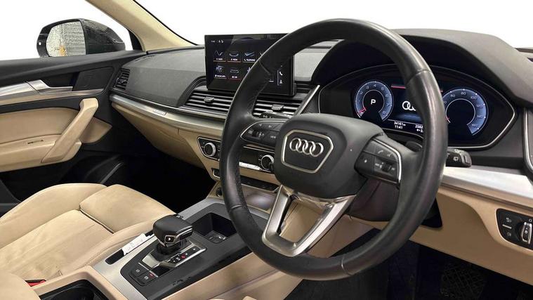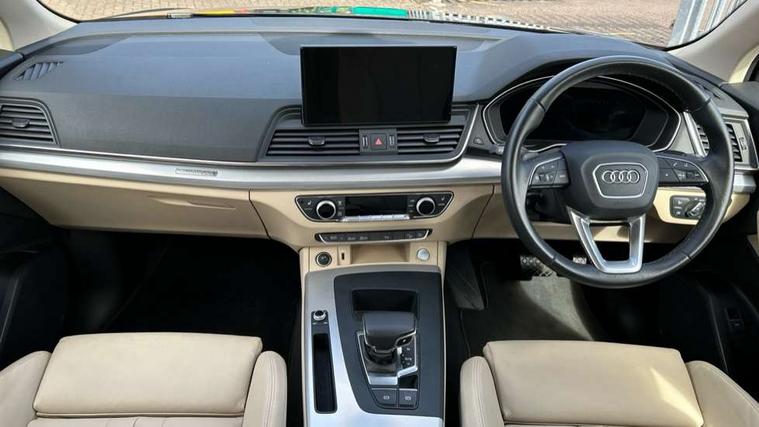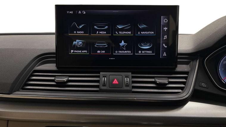 Acoustic front and rear parking sensor, Audi connect safety and service (e-call), Audi connect with Amazon Alexa Integration, Audi drive select, Audi virtual cockpit plus with 12.3" screen and three different layout designs, Audi wireless smartphone interface, Automatic start-stop system with coasting functionality and efficiency programme, Bluetooth interface, Electro - mechanical power assisted steering, MMI navigation plus with 10.1" touch screen, Power tailgate, Reversing camera, Service interval indicator, Voice control system with Audi hotword activation "Hey Audi", Dynamic suspension, Quattro on demand, 2 x USB charging port with aux input socket, 8 loudspeakers, DAB Digital radio, 3rd brake light, Acoustic windscreen, Air inlets in matt anthracite black with blades in matt aluminium silver, Aluminium roof rails, Auto dimming door mirrors, Auto dimming frameless rear view mirror, Automatic headlight adjustment, Automatic headlights and windscreen wipers, Body colour bumpers, Body colour door mirrors, Chrome plated exhaust trims, Daytime running lights, Door sills in Selenite silver, Electric adjustable/heated/folding door mirrors, Front and rear electric windows, LED headlights and LED tail lights, Loading edge protection in stainless steel, Lower bumpers painted in contrast Manhattan grey, Matt selenite silver underbody protection, Matt twilight grey radiator grille with chrome vertical struts, Rear chrome trim strip below lights, Rear diffuser strip in selenite silver, Rear side wing doors, Rear spoiler, Rear wiper, Roof bars, 3 rear headrests, 3 spoke multifunction leather steering wheel with shift paddles, Comfort front centre armrest, Deluxe 3 zone electronic climate control, Door sills trims with aluminium inlays, Front head restraints, Front sport seats, Front/rear floor mats, Heated front seats, Height/reach adjustable steering column, Manual seat adjustment with 4-way electric lumbar support, Single front passenger seat, Split folding 3 seater rear seat bench in 3 parts (40/20/40), Sunvisors with vanity mirrors, Twin leather upholstery, High gloss pack - Q5, LED interior light pack - Q5, 3 point seatbelts on all seats, 6 airbags - Driver, front passenger, curtain and side airbags, Electrically operated child locks on rear doors, Electromechanical parking brake, Electronic stabilisation control including ABS, ASR and EDL, First aid kit with warning triangle and vests, Front passenger airbag deactivation, Hill descent control, Hill hold assist, ISOFIX child seat mounting for front passenger seat and ISOFIX child seat mounting with Top Tether for outer rear seats, Multi collision brake assist, Pop-up bonnet for pedestrian protection, Pre sense city, Seatbelt monitoring, Tyre pressure warning, Anti theft alarm, Anti-theft wheel bolts, Remote central locking, Remote control key with SAFELOCK and keyless go, Air vents inserts and centre console in matte black, Aluminium rhombus inlay, Tool kit, Tyre repair kit,