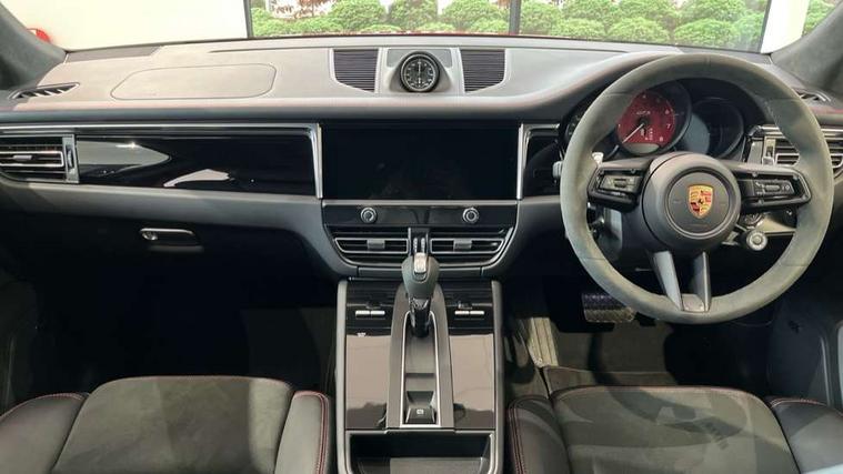 Analogue clock on dashboard, Automatic start/stop system, Automatic tailgate, Digital boost pressure gauge on colour display of instrument cluster, eCall emergency call system, Instrument cluster with high resolution 4.8-inch TFT display, gear indicator for PDK, service interval display, external temperature indicator, fuel gauge, Off-road button, On board computer, Porsche Communication Management (PCM) including online navigation module, mobile phone preparation, audio interfaces and voice control system, Sports button in centre console, 7-Speed Porsche Doppelkupplung (PDK) with automatic mode and manual controls (gearshift paddles) on steering wheel, 75 litre fuel tank, Direct fuel injection (DFI), Gasoline particulate filter, VarioCam Plus variable valve timing and switchable valve lift, 2 USB sockets in rear centre console, Apple CarPlay with Siri voice recognition, Connect Plus including online navigation, LTE communication module with SIM card reader, wireless internet access, Porsche Car Connect services, DAB Digital radio, Porsche Vehicle Traking System Plus (PVTS Plus), Smartphone compartment with wireless charging, Two USB C charging and connectivity ports in the front centre console storage compartment, Active radiator grille shutters, Automatic headlight activation including welcome home lighting, Bumper system with high strength cross members and two deformation elements + One threaded fixture point for towing eye contained in onboard tool kit, Dynamic cornering lights, speed-sensitive headlight and dynamic range control, adverse weather function, four-point LED daytime running lights, Electric front and rear windows with remote closing function + anti trap + one touch, Electrically folding and heated exterior mirrors, Front light modules with LED position lights and direction indicators, Front windscreen wipers with two speeds, intermittent wipe and rain sensor, Front with integrated cooling air intakes, Fully galvanised body, Heated rear window with automatic switch off, High gloss black side window trims, High level 3rd LED brake light integrated into roof spoiler, Loading edge protection in aluminium, Rear side wing doors, Rear window wiper with intermittent function and washer jet, Roof spoiler with fixed double wing design and fin like look in high gloss black, Side skirts in sport design, Switchable sports exhaust system, Tinted LED taillights with three-dimensional lighting graphics, integrated fourpoint brake lights and light strip, Towbar preparation, Twin sports tailpipes in black with sports exhaust, 3 adjustable rear headrests, 3 rear seats, 3 zone auto climate control separate temperature setting+air recirculation include quality sensor, airflow regulation+AC MAX button+humidity sensor, 4 way adjustable front head restraints, 40:20:40 split folding rear bench seat, Cloth hook b-pillar, Fold up centre console armrest with fore/aft adjustment, Front and rear bottle holders in door panels, Front passenger seat, Glove compartment, Isofix fastening system for child seats on outer rear seats, Luggage compartment cover, Particle/pollen filter with active carbon filter, Rear armrest with 2 cupholders, Storage bin in centre console, Storage compartment in side of luggage compartment and storage compartment in spare wheel recess, Storage pocket in front and rear doors, Two integrated cup holders in front with variable diameter, Two socket 12V power outlets in front console and luggage compartment, Uncovered storage compartment in centre console, Ambient comfort lighting pack - Macan, Lower exterior trim package in painted exterior colour - Macan, 3-point automatic seatbelts with front and outer rear seats pretensioners and force limiter + manually height adjustable seatbelt + reminder warning, 6-piston aluminium monobloc fixed caliper brakes at front, internally vented brake discs, Auto hold function, Brake discs with diameter of 390mm at front and 356 mm at rear, Child locks on rear doors, Curtain airbags along entire roof frame and side windows from A pillar to the C pillar, Electronic parking brake, Front passenger airbag deactivation facility for installation of child seats indicator in overhead console, Front side airbags integrated into seat, Full size driver and passenger airbags, Multi-Collision braking, Porsche hill control (PHC), PTM(Porsche Traction Management) and All-wheel drive with map-controlled multi-plate clutch, Roll over sensor for curtain airbag and seatbelt pretensioners, Side impact protection in doors, Tyre pressure monitoring system, Vehicle stability system, Porsche stability management (PSM) including ABS, ASR, ABD, MSR and trailer stability management, Vented discs brake with combination floating calipers at rear, Alarm system with ultrasonic interior surveillance, Dashcam prep, Engine immobiliser with key transponder, Remote control central locking, Accent trims with silver coloured finish, Wheel centres with full colour Porsche crest,