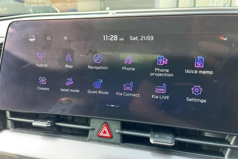 12.3" Display with navigation, 12.3" supervision colour cluster display, 360 degree around view monitor, Apple car play/Android Auto with voice control, Blind spot collision avoidance assist, Blind spot view monitor, Drive mode selector, E-call, Forward collision avoidance assist (FCA) - city/pedestrian/cyclist/junction covering, Front and rear parking sensors, Highway Driving Assist (HDA), Intelligent speed limit assist, Kia Connect (UVO), Lane Following Assist (LFA), Lane keep assist, Low washer fluid warning, Parking collision avoidance assist (PCA), Remote smart parking assist, Reversing camera system integrated into centre fascia screen, Smart cruise control with stop and go functionality, Smart power tailgate, Speed sensitive power steering, Trip computer, Windscreen washer level indicator, Wireless Smartphone charger, Intelligent Stop and Go, Bluetooth audio streaming, DAB Radio with MP3, Harman Kardon premium sound system, Rear USB port, Steering wheel mounted audio controls, USB C type charging ports on centre console, USB C type charging ports on side of front seats, USB port for connection of a media device, All round electric windows with drivers and front passenger auto up/down function, Automatic headlight control system, Automatic window defogger, Backlite glass heated with timer, Body colour and black bumper with silver accents, Body colour exterior door handles, Body colour radiator upper garnish and door garnish, Dual LED adaptive headlamps, Electric panoramic glass sunroof (Electric one touch with safety function), Electrically adjustable/heated/folding door mirrors with LED indicators, Front and rear chrome skid plates, Gloss black door mirrors, Gloss black radiator grille, Gloss black side sill and wheel arch body mouldings, Glossy black roof rack, High beam assist, Interior electrochromic mirror, LED daytime running lights, LED front fog lamps, LED High mounted stop light, LED rear combination lamp, Rain sensing wipers with aero blades, Rear fog lamp, Rear privacy glass, Rear side wing doors, Rear spoiler, Rear wiper, Satin finished beltline, Silver coloured inserts to bumpers, Tinted rear glass, Trailer stability assist, 10 way driver/8 way passenger electrically power adjustable seats, 12V power socket in front centre fascia and luggage compartment, 3 seat bench in 2nd row, 3 x passenger assist grips, 40/20/40 split folding rear seat, All-round height adjustable headrests, Ambient lighting, Black headlining, Centre console storage box, Cupholders in rear armrest, D-Shaped sports leather steering wheel and perforated inserts with GT-Line logo, Door courtesy lamps, Drink holder at centre armrest, Driver and front passenger side sunvisors with illuminated vanity mirrors, Driver seat memory function, Drivers seat power lumbar support, Front and rear door storage, Front seat and rear pockets, Front/rear centre armrests, Gear shift indicator, Glovebox illumination, Heated front and outer rear seats, Heated steering wheel, Interior door lock/unlock function, ISOFIX Child seat top tethers and anchor fixings outer rear seats, LED interior personal lamp, LED lighting in overhead console, Luggage area LED light, Luggage area load cover, Luggage net with hooks, Metal paint interior door handles, Paddle shift controls, Rear cabin light, Rear coat hooks, Single front passenger seat, Sports pedals, Suede leather upholstery, Three zone climate control, Tilt/telescopic adjustable steering wheel, Ventilated front seats, Ventilation ducts to rear compartment, Active front headrests, All round 3-point seatbelts, Anti-lock braking system (ABS), Dual front side airbags, Dual horn, Electronic parking brake, Electronic stability control with downhill brake control, Front passenger airbag cut-off switch, Front seatbelt pretensioners + load limiters, Height adjustable front seatbelts, Hill start assist control (HAC), Impact sensing auto door unlocking, Multi collision brake assist, Rear door child safety locks, Rear seat alert system, Traction control, Twin curtain airbags, Twin front airbags, Tyre pressure monitoring system, Advanced anti-theft system including immobiliser and alarm, Door deadlocks, Engine Start/Stop Button with Smart Entry System, Locking wheel nuts, Speed sensitive auto door locking, Visible vehicle identification number, Aluminium pattern finish centre fascia and door garnish, 18" GT-Line alloy wheels, Michelin tyres, Tyre mobility kit,
