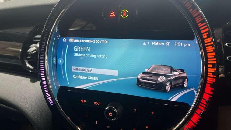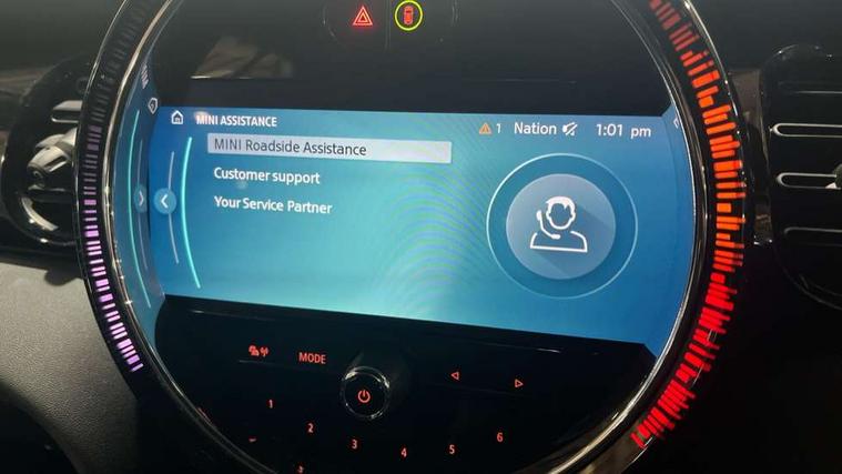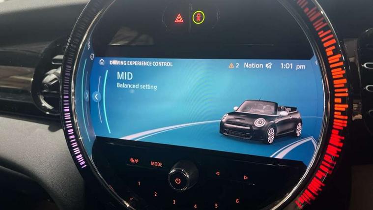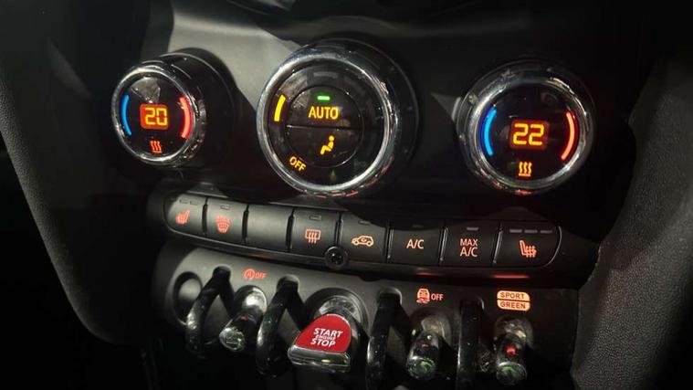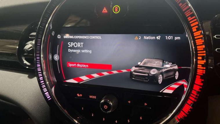 Apple CarPlay, Automatic start/stop function with brake energy recuperation, Compatible mobile phone bluetooth with audio streaming, Cruise control with brake assist, Electro-mechanical speed dependant steering assistance, Instrument cluster, Mini E-call, MINI TeleServices, On board computer, Rear park distance control, Service interval indicator, Double Vanos system, Fully variable valve control, High precision injection, Performance Control, Steptronic transmission with double clutch, FM tuner and DAB digital radio, Automatic headlight activation switch, Body colour fuel filler cap, Chrome border high gloss black slats radiator grille, Dynamic brake lights, Electric windows, Fully electric black softtop with integrated sunroof functionality, Heated rear window, Heated windscreen washer jets, LED headlight with closed ring and daytime driving lights, Left exhaust tailpipe with chrome finisher, Metal door sill strips with MINI imprint, Model logo Cooper on right of tailgate, Rain sensor window wipers, Rear boot, Rear fog lights, Rear LED lights with union jack design, Side scuttle panel with integrated indicator, Sun/heat protection glass, Third brake light, White indicator lenses, 12V Accessory socket in centre console, 2 seat bench in 2nd row, 4 lashing eyes in luggage compartment, 50/50 split folding rear seats, Chrome interior highlights, Colour line - Carbon black, Cupholders, Easy Load boot handles, Front and rear head restraints, Front and rear isofix with front passenger airbag deactivation, Glove compartment, Height and length steering column adjustment, Interior lighting with 12 different colours running across the dashboard, underneath door bezel illuminated laser engraved design on central display, Leather gearshift lever and handbrake gaiters, LED reading lights, vanity mirror lights, front foot well light and spotlight on front seats, Manual air conditioning, Mechanical seat adjustment, driver seat height adjust, forward/back and front seats backrest, Multifunction steering wheel, Single front passenger seat, Sports steering wheel, Storage compartments in doors, Sunvisors with vanity mirrors, Three spoke steering wheel with speed limiter and audio/communication controls, Velour floor mats, Convertible pack with comfort access - Mini Convertible, Navigation pack without Apple car play - Mini Convertible, 3 point seatbelts on all four seats, 6 Airbags - front, side and seat belt tensioners, Active rollover protection, Anti-lock braking system (ABS), DSC - Dynamic Stability Control, Front and rear disc brakes, Hill start assist, Single tone fanfare horn, Tyre pressure monitoring system, Alarm system with tilt sensor, monitoring doors, bonnet interior and tailgate, Electronic vehicle immobiliser, Keyless Go, Piano black interior trim, Tool kit, Tyre repair kit,