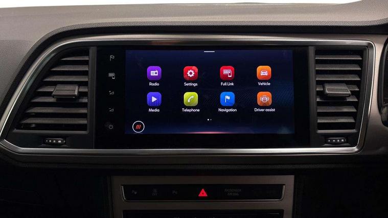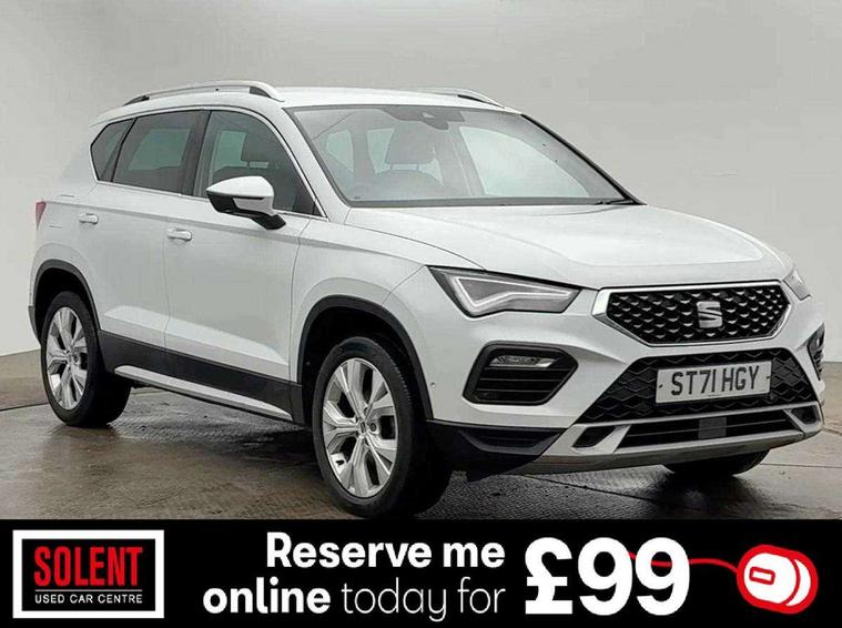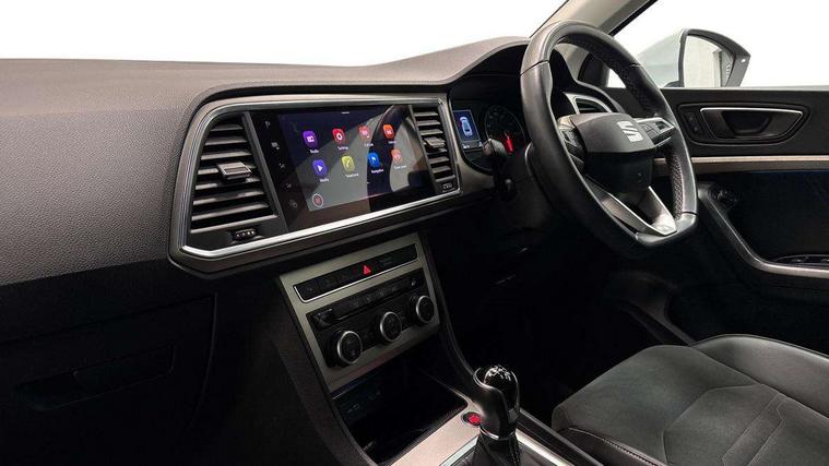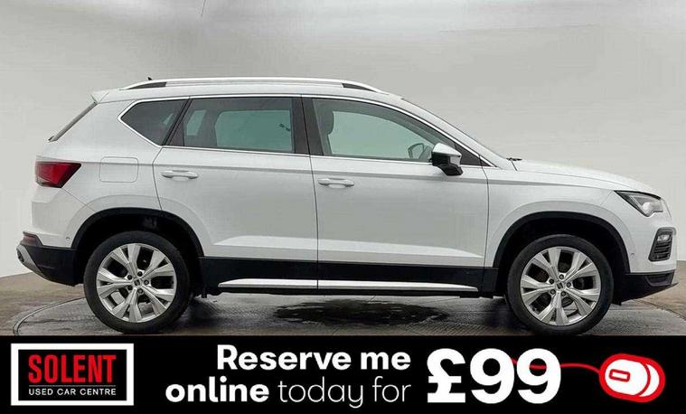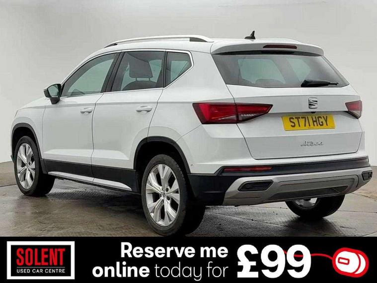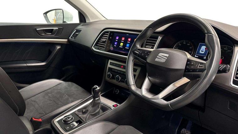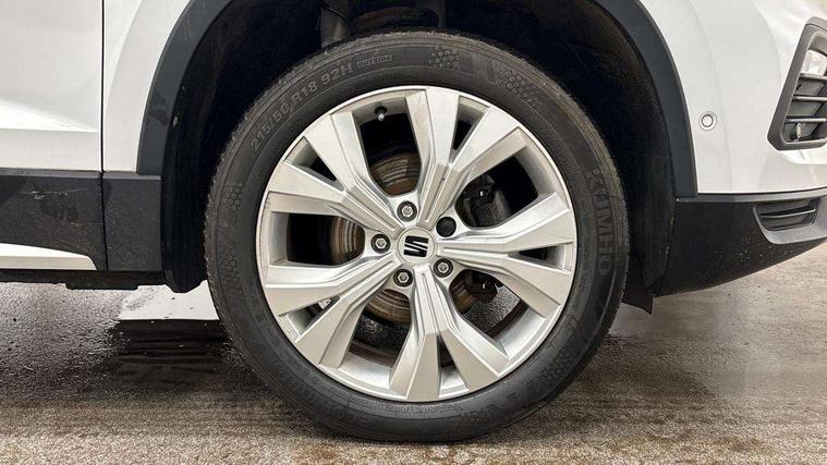 E-call, Outside temperature gauge, Progressive power assisted steering, Rear view camera, SEAT drive profile with driving experience button - Normal, Sport, Eco and Individual mode, steering and throttle response, Self parking functionality (includes front and rear parking sensors), Trip computer, Wireless full link smartphone integration, Wireless phone charger, Steering wheel mounted audio/phone controls, Black simulated exhaust pipes, Body colour bumpers, Body coloured wheel arch surrounds, Chrome front grille frame, Chrome roof rails, Chrome side window trim, Dark tinted rear windows, Daytime running lights, Door mirrors with welcome light silhouette, Dynamic headlight range control with self adjusting whilst driving, Electric adjustable/heated/folding door mirrors, Front and rear electric windows, Front grille hot stamping, Full LED headlamps with lens and LED front fog lamps with cornering function, Illuminated aluminium front door sill, LED rear tail lights with dynamic indicators, Rear fog lights, Rear side wing doors, Rear wash/wipe, Reflex silver side mouldings, 12V socket in front, 3 seat bench in 2nd row, 60/40 split folding rear seat, Dual zone climate control, Front and rear head restraints, Front centre armrest, Front seat back storage pockets, Height adjustable driver and passenger seat with lumbar adjustment, ISOFIX points in outer rear seats with top tether anchorage points, Leather steering wheel and gear knob, Microsuede upholstery with front comfort seats, Rear armrest and easy back seat release mechanism from boot, Single front passenger seat, Storage compartment under driver's seat, Convenience pack - Ateca, Interior lighting pack - Ateca, Navigation system pack with DAB - Ateca, Safe and driving pack - Ateca, 3x3 point rear seatbelts, ABS, Traction control system (TCS), Electronic stability control (ESC) and Electronic differential lock system (XDS), Airbags - Driver and front passenger airbag with deactivation, front side, two curtain and driver's knee airbags, Electric parking brake with auto hold function, Front and rear seatbelt reminder, Hill hold control, Manual rear child locks, Tiredness recognition system, Traction control, Tyre pressure monitoring system, Alarm, Keyless entry, Locking wheel bolts, Chrome interior detailing, 18" Brillaint silver alloy wheels,