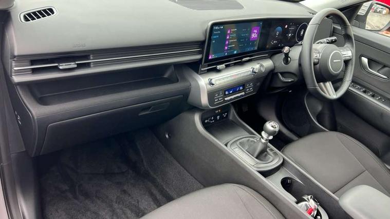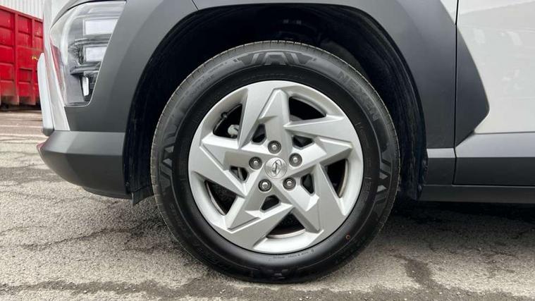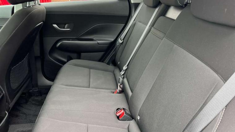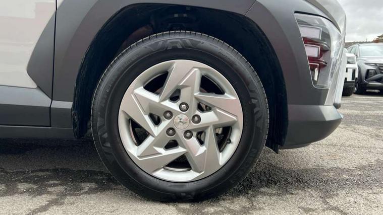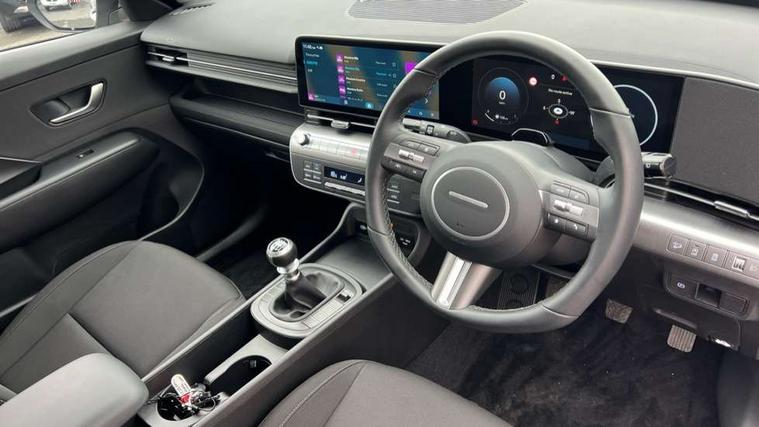 12.25" digital instrument cluster, 12.3" touchscreen centre console display satellite navigation with bluelink, live services and mapcare, Bluetooth connectivity with voice recognition, Cruise control, Driver status monitor (DSM), Driver supervision instrument cluster with 12.3" LCD display, eCall emergency call system, Feature on demand - Enabled, Forward collision avoidance assist (FCA 1.5) - Car, pededstrian, cycle and junction turning, Front parking sensor, Intelligent speed limit assist, Lane follow assist, Lane keep assist, Leading vehicle departure alert (LVDA), Parking system with rear camera and guidance system, PAS, Rear parking sensor, Rear view camera with dynamic guidelines, Roadside assistance, Wireless Smartphone Integration includes Apple CarPlay and Android auto, 2 front USB C and 2 rear USB C charging points, DAB Digital radio, Speakers - Front, rear and tweeters, Steering wheel audio, phone and cruise controls, Auto dimming rear view mirror, Automatic headlights with dusk sensor, Automatic windscreen wipers with rain sensor, Black painted wheel arch inserts, Body colour exterior door handles, Body coloured door mirrors, Door mirror LED indicator lights, Electric front windows with anti-trap mechanism and one touch control, Electric rear windows, Electrically adjustable and heated door mirrors, Full LED MFR headlights, LED daytime running lights, LED taillights, LED upper and lower rear lights, Power folding door mirrors, Rear roof spoiler with integrated LED brake light, Rear side wing doors, Rear skid plate - silver, Rear wiper, Roof rails, Tinted glass in front and rear doors, Windscreen auto defog function, 12V power outlet in front console, 2 zone climate control, 3 seat bench in 2nd row, Adjustable head restraints, Cloth upholstery, Driver and passenger front seat pockets, Driver's seat lumbar support, Driver/passenger manual seat height adjustment, Driver/passenger sunvisors and illuminated vanity mirrors, Floor mats, Height/reach adjustable steering column, Leather steering wheel, Leather wrapped steering wheel and gear knob, LED centre interior light, LED front interior light, Luggage compartment LED lighting, Luggage shelf, Metal paint effect interior door handles, Rear centre armrest with cupholders, Single front passenger seat, Vertical adjustment rear head restraints, Trailer wiring package - Kona, Airbag - front, front side, curtain and centre front airbag, Anti-lock brake system (ABS), Childproof rear door locks, Downhill brake control, Electric parking brake, Electronic stability control, Fixed 3 point for second row centre passenger seatbelt, Hill start assist control (HAC), Rear seat alert, Tyre pressure monitoring system, Alarm/immobiliser, Rear occupant alert, Remote central locking, Smart key with keyless entry and start/stop button, Five year annual vehicle health checks, 17" Alloy wheels, Temporary mobility kit (TMK),