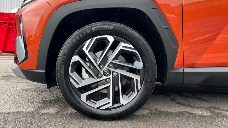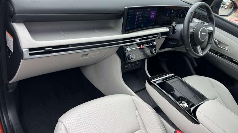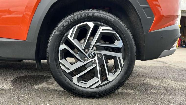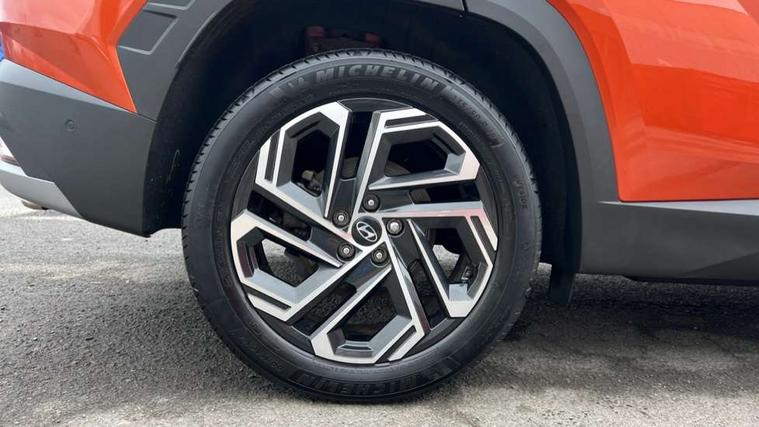 12.3" LCD display with driver's supervision instrument cluster, 12.3" widescreen navigation with bluelink and mapcare, Blind spot view monitor, Bluetooth system, Cruise control - smart adaptive speed control with stop and go function, Digital clock, Drive mode selector, Driver attention warning, E-call, Emergency stop signalling system, Forward Collision Avoidance Assist (FCA) - Car, Pedestrian and Cycle, Forward Collision Avoidance Assist Junction Turning (FCAJX), Front and rear parking sensors, Front, rear and side parking distance warning, Highway Driving Assist (HDA), Hyundai road side assistance, Intelligent speed limit assist, Lane follow assist, Lane keep assist, Over the air updates(OTA), Parking collision avoidance assist (PCA), PAS, Rear camera and guidance parking system, Rev counter, Smart power tailgate, Surround view monitor, Tailgate open warning light, Trip computer, Trip odometer, Voice recognition, Water temperature gauge, Windscreen washer fluid sensor and warning indicator, Wireless Apple CarPlay/Android Auto, Wireless phone charging pad, 2 front and 2 rear USB-C ports, DAB Digital radio, Krell premium audio system with 8 speakers and subwoofer, Steering wheel mounted audio/phone controls, Adjustable intermittent front windscreen wipers with aero wiper blade, Auto dimming rear view mirror, Automatic defog system, Automatic headlights with dusk sensor, Automatic windscreen wipers with rain sensor, Black wheel arches, Body colour bumpers, Body colour door mirrors with integrated indicators, Body colour exterior door handles, Electric tilt/slide panoramic sunroof, Electrically adjustable, heated and power folding door mirrors, Follow me home headlights, Front and rear electric windows with anti-trap mechanism and one touch control, Front fog lights, LED 3rd brake light, LED daytime running lights, LED rear lights, Matrix LED headlights, Positioning Lights - LED, Privacy glass - Rear windows and tailgate, Rear side wing doors, Rear wash/wipe with intermittent wipe setting, Roof rails, Tinted glass with windscreen shade band, Trailer stability assist, 12V power outlets in front console and luggage compartment, 3 seat bench in 2nd row, 40/20/40 split folding rear seat, 64 colours interior ambient lighting, Adjustable head restraints (Up and down), Cupholders in rear armrest, Door courtesy lights, Driver and passenger sunvisors with illuminated LED vanity mirrors, Driver's seat electric adjustments, Driver's seat memory, Front and rear door pockets, Front armrest with storage box, Front centre console and door bottle holders, Front passenger's seat electric adjustments, Heated front seats, Heated rear seats, Heated steering wheel, Height/reach adjustable steering column, Illuminated/air conditioned glove compartment, ISOFIX child seat anchorage points attached on outer rear seats, Leather upholstery, Leather wrapped steering wheel and gear knob, Luggage compartment lighting, Luggage cover, Luggage hooks, Luggage net, Map and reading lights, Rear seat remote folding function, Rear side window sunblind, Reclining rear seats, Retractable load cover, Single front passenger seat, Sunglasses holder, Three zone climate control, Touch sensitive climate controls with temperature dials, TUCSON branded metal door scuff plate, Underfloor boot compartment, Ventilated front seats, Trailer wiring package - Tucson, 3x3 point rear seatbelts, Active bonnet, Airbag - Front, front side, curtain and centre front airbags, Anti-lock brake system (ABS), Brake assist function, Childproof rear door locks, Curtain airbag roll over sensor, Downhill brake control, Electric parking brake, Electronic stability control, Front and rear seatbelt reminder, Front passenger airbag deactivation switch, Front seatbelt pretensioners, Hill start assist control (HAC), Multi-Collision braking, Outer rear seatbelt height adjustment, Seatbelt height adjustment for front seats, Traction control, Tyre pressure monitoring system with individual tyre pressure display - TPMS, Vehicle stability management, Deadlocks, Immobiliser, Locking wheel nuts, Remote control central locking, Smart key with keyless entry and engine start/stop button, Speed sensitive auto door locking, Thatcham category 1 alarm, 19" Alloy wheels, Tyre repair kit,