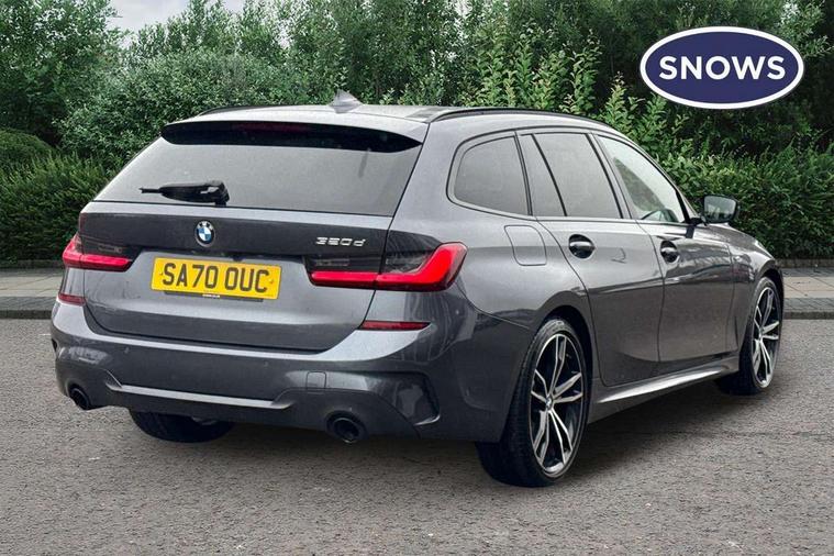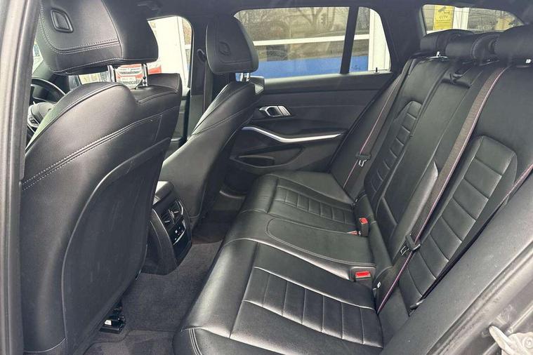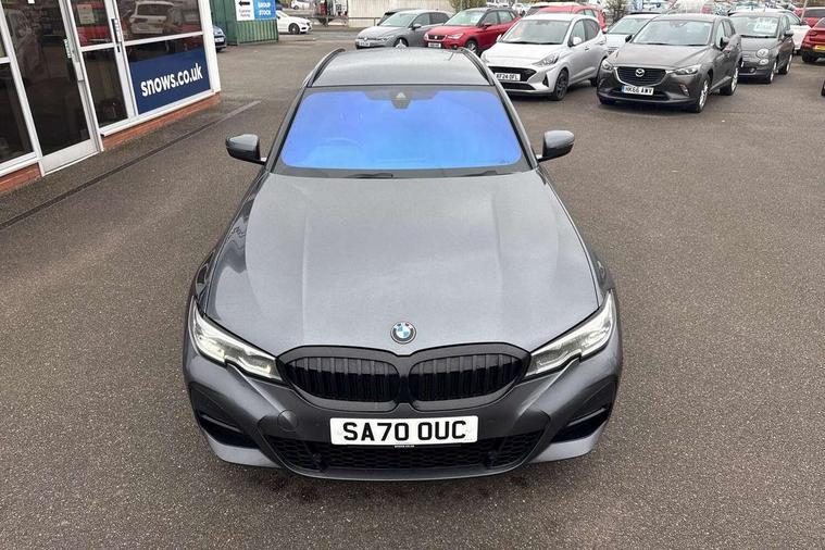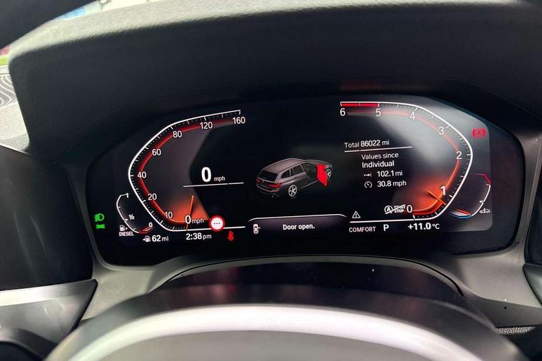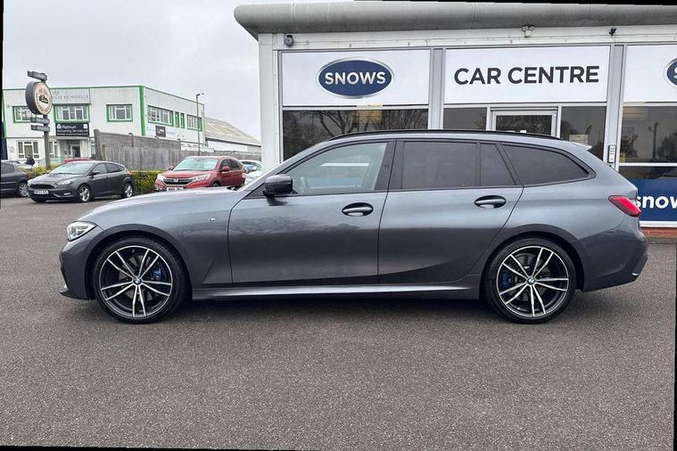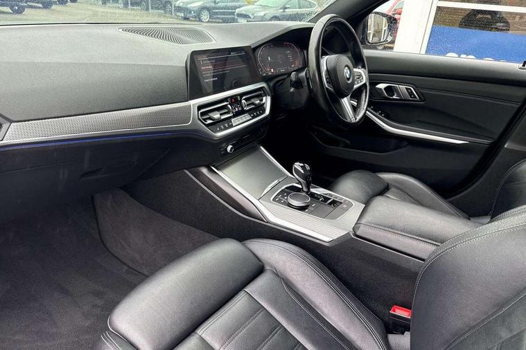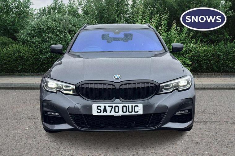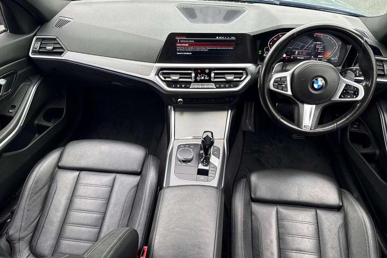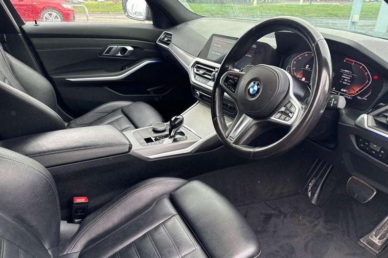 Active guard plus, Attentiveness assist, BMW iDrive controller on centre console, BMW Live Cockpit Professional Nav with 12.3" instrument display + 10.25" display, Intelligent Voice Assist, BMW OS 7, HDD, 2USB, 4G LTE connect, BMW service history, BMW Teleservices, Brake pad wear indicator in front and rear, Check Control warning system for monitoring of lights and door/luggage compartment open warning, Condition based service, Electric power steering with Servotronic steering optimised at all speed ranges, Instrument cluster with speedometer with mph readout, tachometer, fuel gauge and oil temperature gauge, Integrated owners handbook, Oil sensor for level and grade, warning by check control system, On board computer - average speed+fuel consumption, service interval, clock/date, odometer/trip meter, outside temperature display and ice warning, Optimum shift indicator, Personal Profile - automatic lock when driving away selectable, Recovery braking system, Variable sport steering, Balanced 50/50 weight distribution, Battery cut-out switch, Diesel particulate filter, Drive performance control - ECO PRO, comfort and sport modes, Electronic differential lock control (EDLC), Incorrect fuelling protection, Larger capacity fuel tank, M sport suspension, Sport automatic transmission with steering-wheel mounted gearshift paddles and launch control, Stroke dependent dampers, DAB tuner, Electronic service booklet, Acoustic glazing, Automatic headlight beam throw control with load dependent regulating reaction, dynamic compensation of braking dive and acceleration squat, Black roof mouldings, Body colour door handles, Body colour fuel filler flap, Body colour mirror caps, Dynamic brake lights, Electric windows - front and rear, with open/close fingertip control, anti-trap facility and comfort closing, Exhaust tailpipe - split left and right, Exterior mirrors - electrically folding with anti-dazzle, Fading support, Front and rear bumper system with replaceable deformation elements, Front black door sill finishers with BMW designation, Green tinted heat protection glazing, Interior rear view electrochromatic mirror with automatic anti dazzle function, LED daytime running lights, LED front fog lights, Lightweight engineering, M designation on front side panels, left and right, Matt black exterior B pillar, Model designation on right side of tailgate, Rain sensor with automatic headlight activation, Rear wiper, Shark fin antenna, Two part LED tailights in L-shape with components in smoked glass, brake light, LED turn indicator and rear fog light, Visible VIN plate, Welcome lights in interior and door handle area, Windscreen wipers with integrated washing jets, 12V power socket in front storage compartment, 2 front cupholder in centre console with clamping elements and matt black inlay, 3 rear seats with non folding headrests with 3 point seat belts, 3 zone automatic air conditioning, 4 pieces lashing eyelets in luggage compartment, 40:20:40 split folding rear seat with loading system, Ambient lighting with welcome carpet light, Anthracite headlining, Armrest integrated in front and rear door trim + front centre console armrest, Centred top Luggage compartment lights, Four grab handles integrated in roof lining, Front and rear door exit lighting (left / right), Front and rear door pockets, Front and rear reading lights, Front and rear velour floor mats, Front head restraints, Front sport seats, Heated driver and front passenger seats, Height adjustable mechanically and infinitely variable steering column, Illuminated armrest storage compartment, Illuminated glove compartment with separate small compartment, Interior lighting - front centre over interior mirror with soft light, rear centre and front and rear footwell lighting, M Sport multifunction leather steering wheel, Make-up mirror lights, Rear centre armrest with 2 cupholders, Rear centre console with storage compartment and ventilation grille, Sunvisors with vanity mirrors and ticket pocket, Toolkit located in luggage compartment, Connected pack professional - 3 Series Saloon/Touring, M Aerodynamics pack - 3 Series Saloon/Touring, 2 tone horn, BMW emergency call, Brake energy regeneration, Braking pre-tensioning, Child proof locking system in rear door, Child seat ISOFIX attachment rear outer seats, Coasting in idle in ECO PRO mode, Crash sensor activating of airbags, Unlocking doors, hazard warning lights, interior light, safety battery terminal, Driver and front passenger side airbags, integrated in the door side seat backrest bolsters for all seat variants, Driver/Front Passenger airbags, Dry braking, Dynamic brake control, Dynamic stability control + (DSC+) - Anti-lock Braking System (ABS) with brake assist and cornering brake control + Automatic Stability Control (ASC), Dynamic Traction Control - DTC, Electric parking brake including automatic hold function and automatic release of the parking brake when driving off, Front passenger manual airbag deactivation, Head airbags for all 4 outer seats, Hill start assist, Seat belt security check for driver and front passenger, Side impact protection, Three 3 point seat belts on all seats including front belt stopper, pyrotechnic belt tensioners and belt force limiters, Tyre pressure monitoring with three level warning strategy, Ventilated front and rear disc brakes, Warning triangle and first aid kit, Alarm system (Thatcham 1) with remote control and electronic engine immobiliser, Central locking switch for all doors, fuel filler cap and luggage compartment, Remote control with integrated key one button open/close vehicle and windows, sole opening of the luggage compartment lid and panic mode, Start/stop button with Comfort Go keyless engine start and auto Start/stop deactivation button, Vehicle key with M specific designation, Reduced rolling resistance tyres,