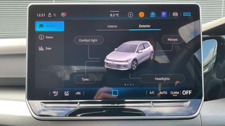 Activated carbon canister, Adaptive cruise control (ACC), Advanced driver attention and drowsiness monitor, Dynamic road sign display, E-Sim card for online connectivity, eCall emergency call system, Multi-color Digital cockpit pro, selection of different info profile possible, Multifunction front facing camera for distance control, Navigation system, Oncoming vehicle braking when turning including swerve support, Speed limiter, Speedo, rev counter, electronic odometer, trip, service interval display, exterior temperature and fuel gauge, Voice enhancer and voice control, Warning signal and warning light for front and rear seatbelts not fastened, We connect plus preparation, We connect preparation, Wireless app connect, Petrol Particulate Filter, Start-stop system with battery regeneration (recuperation - energy recovery during braking), XDS electronic differential lock for improved traction and handling, 2 USB C ports in front, 2 USB charging sockets on the centre console in the rear charging capacity upto 45W, Digital radio reception (DAB), Diversity antenna for FM reception, Gaming platform via car app, Infotainment system with 12.9" display, Mobile phone interface with inductive charging feature, 3rd brake light, Automatic headlamp activation with Coming home and Leaving home feature, Body colour door handles, Body colour door mirrors, Exterior mirrors convex on the left and aspherical on the right, Front and rear electric windows, Heat insulating windshield made of laminated glass, LED separate daytime running light, Rear exhaust tailpipe, Rear fog light on one side and reversing lights on both sides, Rear side wing doors, Rear tinted glass 65% light absorbing from B pillar backwards, Rear windscreen washer and wiper with interval delay, Remote electrically foldable door mirrors, puddle lights and reverse activated passenger's door mirror, Standard bumpers, Welcome light with surround lighting, 12V socket in front centre console, 12V socket in luggage compartment, 3 rear head restraints, 3 seat bench in 2nd row, Chrome plated radiator grille inserts, air vent surrounds and light switch surrounds, Front centre armrest, Front head restraints, ISOFIX anchors for child seats on outer rear bench seats and on front passanger seat compatible for i-Size, Leather gearshift handle, Luggage compartment lighting, Manual height adjustable front passenger seat, Rear cupholder and loadthough, Single front passenger seat, Soul black instrument panel, Split folding backrest with centre armrest and unsplit rear seat bench, Standard pedal cluster, Storm grey roof lining, Sun visors with illuminated vanity mirrors, Parking and comfort pack - Golf Estate/Hatchback, 3 point height adj front seatbelts + pretensioners, 3 rear three point seatbelts, ABS, Autonomous emergency braking front assist with pedestrian and cyclist monitoring, Child locks on rear doors, Driver and front passenger airbag with front passenger airbag deactivation, Electronic parking brake with auto hold, ESC (Electronic Stability Control), Extended pedestrian protection measures, Rear disc brakes, Two tone horn, Tyre pressure loss indicator, Volkswagen roadside assistance, Anti theft wheel bolts, Preparation for alcohol interlock, Nature cross brushed decorative inserts for dashboard and front door panels,