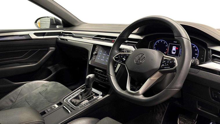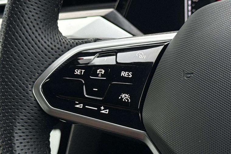 Adaptive cruise control (ACC) with speed limiter, front assist (reacting vehicles pedestrian and cyclists) and follow to stop, App connect including wireless Apple CarPlay, Camera for warning system, Digital cockpit with 10.25" high resolution TFT display screen with customisable menus and information, Driver alert system with fatigue detection, Driver profile selection including ECO function, Dynamic road sign display, eCall - Emergency call service for SOS calls to emergency response, Emergency assist, Hands free boot opening, Press and drive key, Progressive steering, Speedo and rev counter, electronic odometer, trip, service interval display and exterior temperature gauge, Travel assist - Lane keeping assist and traffic jam assist, Voice activation for telephone and navigation, Start/stop function with battery regeneration, Premium USB cable in choice of either Apple or Android smartphone compatibility, Auto dimming interior rear view mirror, Automatic headlights, Body colour door handles, Body colour side skirt, Body coloured top and matt black lower door mirrors with integrated indicators, Chrome plated radiator grille inserts and light switch surrounds, Chrome side window surrounds, Dynamic headlight range control, Electric folding door mirror, adjustable, heated with front passenger exterior mirror lowering function, Front and rear electric windows, Front and rear stainless steel door sill protection, Front windscreen washers and wipers with 4x interval delay, Heat insulating side and rear windows, Heated rear windscreen, Heated windscreen washer jets, High level 3rd brake light, LED rear combination lamp with dynamic indicators, LED rear number plate lights, Panoramic sunroof with tilting and sliding including integrated roller blind, R Line design body coloured bumpers, Rain sensor, Rear fog lamp on one side and reversing lamp on both sides, Rear side wing doors, Rear tinted glass from B pillar backwards, approx 65% tinted, Rear wash/wipe, Tailpipes behind rear bumper, 12V socket in front centre console, 12V socket on rear of front centre armrest, 3 rear head restraints, 3 seat bench in 2nd row, 30 colours options interior ambient lighting, 60:40 split folding rear seat backrests with centre armrest, Air care climatronic 3 Zone electronic air conditioning with automatic air recirculation, Black roof lining, Chrome trim on upper and lower air vents extending across cockpit, Driver and front passenger sunvisor with vanity mirror, Front + rear carpet mats, Front cupholders x 2, Front footwell illumination, Front sports comfort seats, Glovebox, Heated front seats, Height/reach adjust steering wheel, Isofix child seat preparation easy fit for two outer rear seats, Luggage compartment lighting, Removable luggage compartment cover, Single front passenger seat, Split folding front seat backrest with front centre armrest, Stainless steel pedals, Two LED front reading light, 3 rear three point seatbelts, ABS+EBD+Brake assist, Child locks on rear doors, Driver airbag and front passenger airbags with deactivation switch including driver knee airbags, Electronic parking brake, Electronic stability control (ESC) and Electromechanical brake booster, Front disc brakes, Front side airbags with curtain airbags, Hill start assist, Pro active occupant protection to detect critical situations with elevated accident potential from the front, Rear disc brakes, Three point height adjust front seatbelts + pretensioners, Two tone horn, Tyre pressure loss indicator, Warning buzzer for seatbelts if unfastened, Warning triangle, Alarm with interior protection with deactivation via infotainment system, Electronic engine immobiliser, Keyless entry system including start/stop button on centre console, Aluminium decorative inserts, Chrome trim on lower doors in front and rear, Leatherette insert on door and side trim panel in foam film, Piano black decorative inserts in centre console,