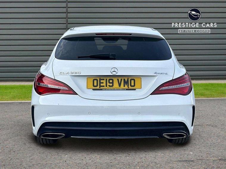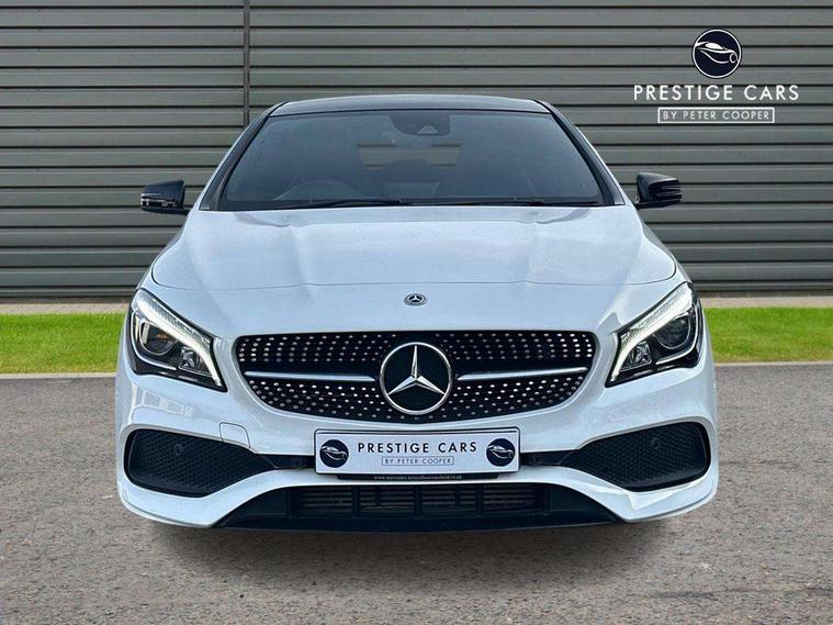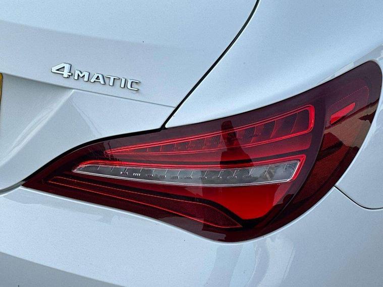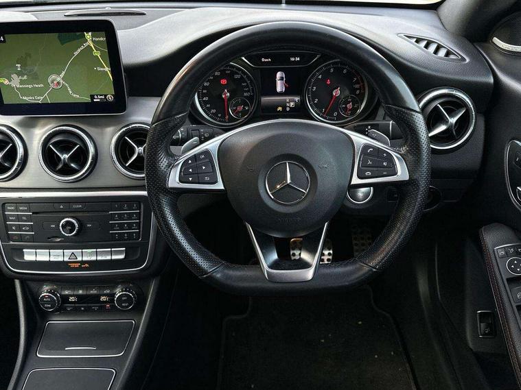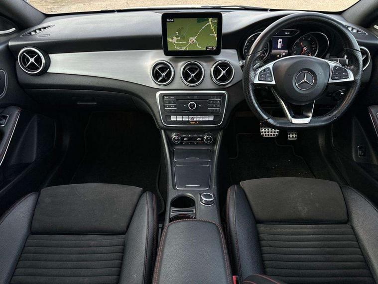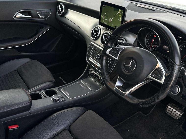 8" colour display screen, Active park assist, Attention assist, Bluetooth system, Direct steering, Door/boot open warning light, DYNAMIC SELECT with a choice of driving modes (ECO, Comfort, Sport, Sport+ and Individual), Easy-pack tailgate - Powered opening/closing automatically, ECO start/stop function, Front and rear parking sensors, Lamp failure indicator, Low fluid warning light, Outside temperature gauge, Reversing camera, Service indicator (ASSYST), Trip computer, Lowered comfort suspension, Media interface, Mercedes Audio 20 radio/single CD, USB connection, Adaptive brake lights, AMG body styling, Auto dimming driver's door mirror, Auto dimming rear view mirror, Automatic headlights, Automatic rain sensing wipers, Black high gloss beltline, Body colour bumpers, Body colour door handles, Body colour side skirt, Diamond grille with pins in chrome and single louvre in high-gloss black with chrome inserts, Electric adjustable heated door mirrors, Electric folding door mirrors, Electric panoramic sliding sunroof, Front and rear electric windows, Front door courtesy lamps, Heated rear window with timer, High gloss black door mirror housing, LED headlights with LED daytime running lights, LED Indicators, LED tail lamp, LED third brake light, Privacy glass, Rear fog lights, 1/3 to 2/3 split folding rear seats, 3 spoke flat bottom multi-function sports leather steering wheel in black with topstitching in red, Auto Mercedes-Benz child seat recognition sensor, Brushed stainless steel sports pedals with rubber studs, Centre console with cupholders, Courtesy light in boot, Door sill illumination, Electric memory seats, Front centre armrest with storage box, Front footwell lights, Front head restraints, Front seat cushion length adjustment, Front sports seats, Height adjustable front seats, Height/reach adjustable steering column, Illuminated glovebox, Illuminated storage compartment, Isofix rear child seat fastenings, Load securing rings in luggage compartment, Luggage compartment cover, Reading lights, Rear footwell lights, Rear head restraints, Seat cushion angle adjustment, Sunvisors with illuminated vanity mirrors, Thermotronic luxury automatic two zone climate control, Mirror pack - CLA, 3x3 point rear seatbelts, ABS with Brake Assist, Active bonnet, Adaptive brake system, ASR, Brake pad warning light, Child lock for rear electric windows, Child proof door locks, Crash responsive emergency lighting, Drivers knee airbag, Dual stage driver/passenger airbags, Electronic parking brake, ESP curve dynamic assist, Front and rear seatbelt reminder, Front brake callipers with Mercedes Benz lettering, Front passenger airbag deactivation, Front passenger seat occupancy sensor, Front side airbags, Hill start assist, Tyre pressure monitoring system, Warning triangle and first aid kit, Window airbags, Anti theft alarm system, Chrome surround in electric key, Immobiliser, Keyless Go, Remote central locking, Chrome air vent surrounds, 18" AMG 10 spoke alloy wheels, Tirefit,