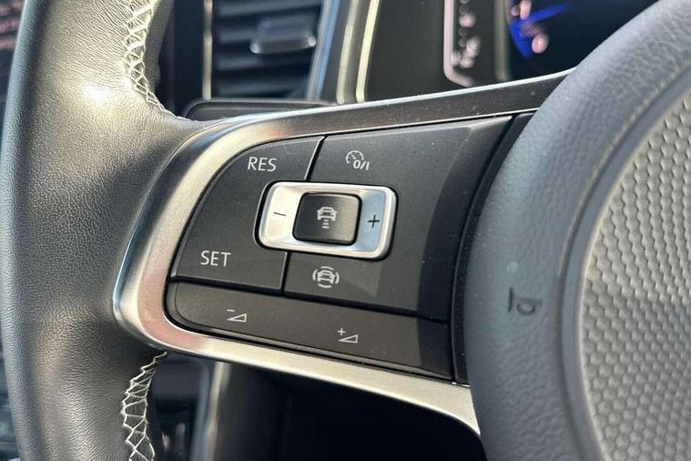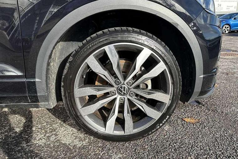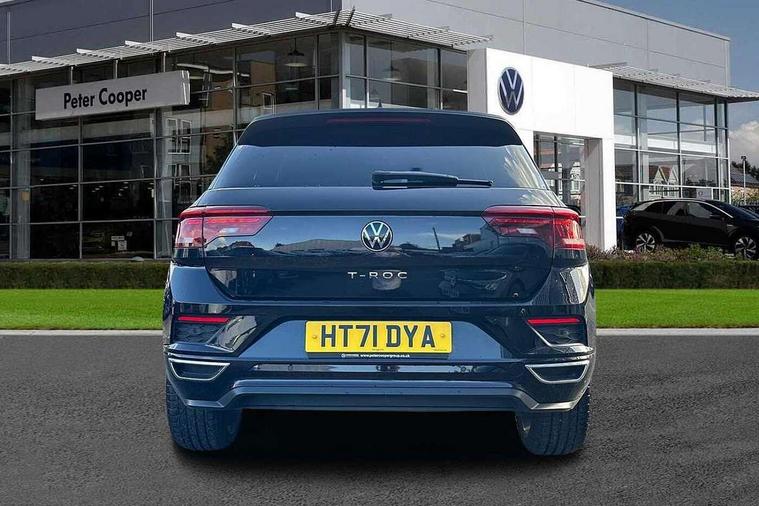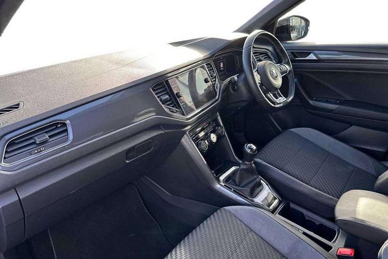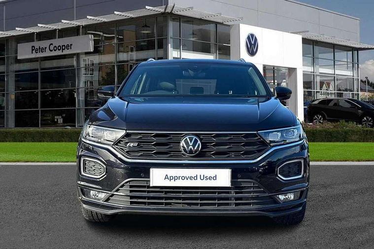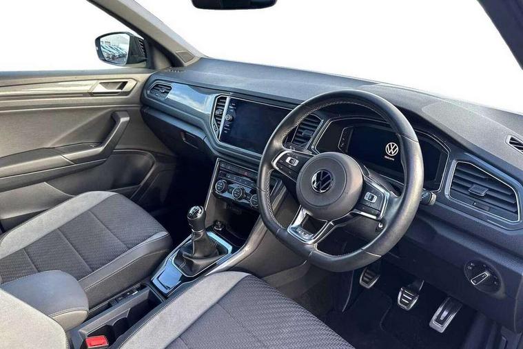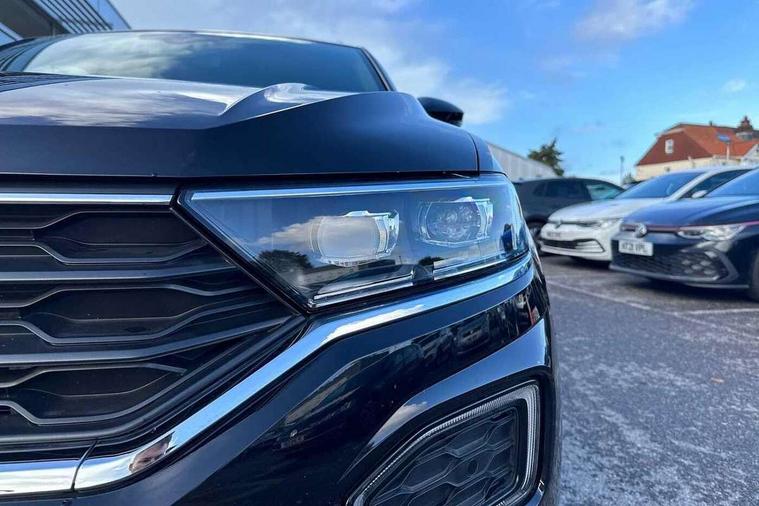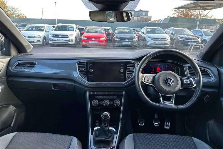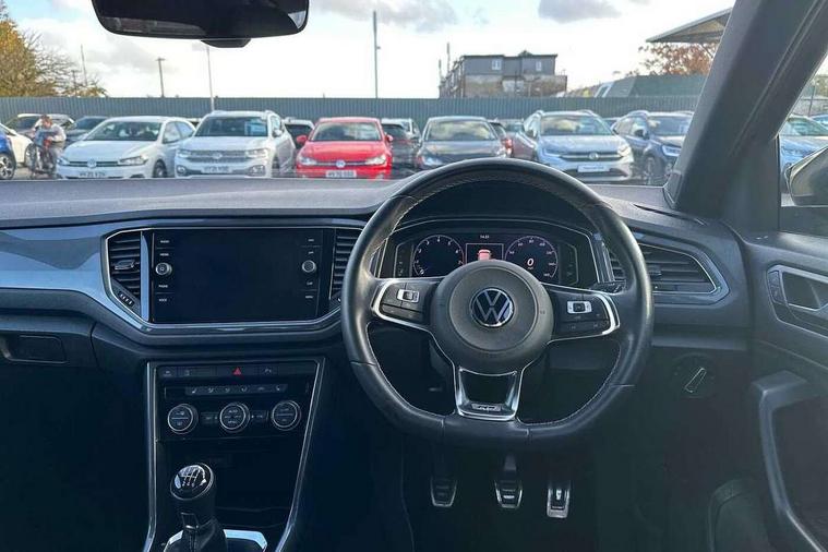 'Lights On' Reminder warning buzzer, Adaptive cruise control, Bluetooth telephone and audio connection for compatible devices, Car information display, Digital Cockpit Pro - Active info display, Driver alert system with audible and visual fatigue detection system, Driver tips and journey analysis, Dusk sensor, Emergency call service, Lane assist with warning text instrument cluster, Modified key software - reduce switch off time for key status change to Long no motion, Multifunction camera, Multifunction computer with visual gear change recommendation for fuel consumption, Navigation system discover media including streaming and internet, Service interval indicator, Think blue trainer driver tips and journey analysis, Traffic sign recognition, Voice activation, Warning sound and light for front seatbelts unfastened, Wireless app connect for apple carPlay, Battery regeneration during braking, Rear shock absorption for sports version, Start/stop function with battery regeneration, DAB Digital radio, Disk brakes in front, Diversity antenna for FM reception, Music playback - MP3, WMA and AAC files, Premium USB cable in choice of either Apple or Android smartphone compatibility, SD card slot, Simultaneous pairing of 2 compatible mobile devices, SMS functionality - read, compose and send SMS messages using touch-screen display, Storage compartment with longitudinal and height adjustable in armrest and two rear air vents, Three route options - Fast, Short, Eco, Title and cover art display, USB-C Interface and USB charging socket, Auto dimming interior rear view mirror, Automatic coming/leaving home lighting function and daytime running lights, Automatic hazard lights activation under emergency braking, Black grained lower door protectors, Body colored door lower parts, Body colour door handles, Body colour rear roof spoiler, Chrome effect left and right trapezoid exhaust tailpipe fascia surround, Chrome plated moldings, Chrome plated radiator grille inserts, air vent surrounds and light switch surrounds, Chrome trim on upper and lower radiator grille, Dynamic headlight range control with self adjusting whilst driving, Electrically foldable, adjustable and heated door mirrors with puddle lights and reverse activated kerb-view adjustment on passenger's door mirror, External USB type C socket and charging sockets, Front and rear electric windows, Front fog lights with static cornering function, Front windscreen wiper with intermittent wipe and 4 position delay, Fully galvanised body, Heated rear window, Heated windscreen washer jets, High level 3rd brake light, LED darkened rear light clusters, LED headlamps with automatic range adjustment and unique signature LED separate daytime running lights, LED rear number plate lights, LED tail lamp rear comination lamps, Privacy glass, R-Line design body coloured bumpers, Rain sensor, Rear tinted glass from B-pillar backwards approx 65% tinted, Rear wash/wipe with intermittent wipe setting, Silver anodised roof rails, Volkswagen roundel, 12V socket in centre console storage area, 3 rear head restraints, 4 load lashing points in luggage compartment, Aluminium pedals, Black roof lining and sun visors, Branded points of interest, Carbon flag cloth upholstery, Climate control - 2 zone electronic air conditioning with automatic air recirculation and allergy filter, Door and side trim panel, Door and side trim panel in foam film, insert in leatherette, Drawer under drivers seat, Front + rear carpet mats, Front centre armrest, Front cupholders x 2, Front seat back storage pockets, Front sports seats with R-Line logo on seat backrest, Glovebox, Heated front seats, Height adjustable front seats, Height/reach adjust steering wheel, Instrument lighting, white adjustable panel illumination, Interior light delay, Interior light in footwell, Isofix easy fit child seat preparation for 2 outer rear seats, LED interior light with switch off delay/dimmer and 2 front/rear LED reading lights, Load through provision with single cup holder when folded down, Luggage compartment cover, removable, Luggage compartment lighting, R Line badge, Scuff plates in door apertures, Split folding rear seat backrests with centre armrest, Stainless steel pedals, Storage compartment in left and right luggage area, Storage compartment in rear doors, Storage compartments in driver and front passenger doors, Sunvisors with illuminated vanity mirrors, Three spoke multi-function leather trimmed steering wheel and gearknob, Unique R Line door sill protectors, White ambient lighting, R line styling pack - T-Roc, Winter pack - T-Roc, 3 rear three point seatbelts, ABS, Curtain airbags, Driver and front passenger safety-optimised head restraints, Drivers and front passengers airbags with passengers deactivation switch, Drivers seatbelt reminder, Electronic parking brake with auto hold, Electronic stability control (ESC) includes ASR, EDL, EDTC and trailer stabilisation function, Front assist with city emergency braking and pedestrian monitoring, Front seat side impact airbags, Hill start assist, Predictive pedestrian protection, Rigid safety cell with front and rear crumple zones, Single tone horn, Three point height adjust front seatbelts + pretensioners, Tyre pressure loss indicator, Ventilated front and rear disc brakes, Volkswagen roadside assistance, Alarm with remote central locking and interior protection, Electronic engine immobiliser, Remote central locking with SAFELOCK, radio remote control with 2 remote control folding keys, Shadow grey decorative inserts in dash, centre console and door panel, 19" Suzuka alloy wheels with low rolling resistance tyres and anti wheel bolts,
