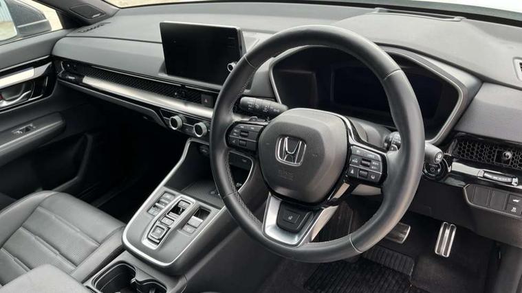 10.2" Multi information display, 4 x front 4 x rear 4 x side parking sensors, Active lane change assist, Adaptive cruise control with Cornering speed assist, Adjustable speed limiter, Agile handling assist, BLIS (Blind Spot Information System) with Cross Traffic Monitor, Bluetooth hands free telephone connection, Crossing traffic warning front, Drive Mode (EV, Econ, Sport, Normal, Snow, Tow), Driver attention monitoring system, E-call, eCall emergency call system, Electric power steering, Emergency stop signalling system, Forward collision warning, Handfree power tailgate with kick sensor and walk away close, Head up Display, HEV mode, Honda 360 sensing, Honda CONNECT navigation with My Honda+ 9" touchscreen, AM/FM/DAB, Apple Carplay and Android Auto, live traffic info, Honda parking pilot, Intelligent speed limiter, Lane change collision mitigation, Lane departure warning system, Lane keep assist system, Lane watch, Lead car departure notification system, Low speed following, Power meter, Road departure mitigation, Traffic jam assist, Traffic sign recognition, Wireless apple carplay, Wireless charging, Adaptive performance damper, Vehicle stability assist, 12 speakers, 1X USB (A/2.5A) and 1x Charger (C/3A) on Front, Bose premium sound system, Centre speakers, DAB+ radio, Dashboard centre speaker, Front tweeters, Rear USB 2x Charger (C/3A), Steering wheel mounted controls, Subwoofer, Active cornering lights, Adaptive driving beam, Auto dimming rear view mirror, Auto headlight adjuster, Auto headlights, Auto wipers, Black door mirror caps, Black paint + exculsive grille, Black Shark-fin antenna, Body colour bumpers, Body colour door handles, Body colour plus black colour roof spoiler, Electrically adjustable and heated door mirrors, Electrically folding door mirrors, Exhaust pipe finisher, Exterior mirror tilt for reverse, Front and rear electric windows, Front LED Indicator lights, Front turn type led with sequential, Headlight auto on/off timer, High gloss black window garnish, LED 3rd brake light, LED daytime running lights, LED front fog lights, LED Headlights, LED rear lights, Multi view camera system in door mirrors, Panoramic opening glass sunroof, Privacy glass, Rain sensor, Rear side wing doors, Rear wiper, Roof rails, Trailer stability assist, Welcome home function, 3 seat bench in 2nd row, 4 way driver lumbar support, 4 way electrically adjustable passenger seat without height adjust, 60/40 split folding rear seat, 8 way electrically adjustable drivers seat + mirror memory, Accessory sockets in Front & Trunk, Air conditioning - Rear vent, Ambient light in roof, Cargo net hooks, Courtesy lights, Dark roof lining, Driver and front passenger seat armrests, Driver/passenger front seatback pockets, Driver/passenger sunvisors and vanity mirrors, Driver/passenger sunvisors with illuminated vanity mirrors, Dual zone automatic climate control, Film layered honeycomb metal interior panels, Footwell ambient interior light front and rear, Front and rear ambient light (door handle&door line) and front cup holder, Front centre armrest, Front map lights, Front ventilated seats, Genuine leather steering wheel, Heated front seats, Heated rear seats, Heated steering wheel, Hybrid emblem, I-Size ISO Fix Points, Instrument panel with garnish wood film, Leather upholstery, Luggage floor box, Meter illumination, Platinum chrome interior door handles, Rear centre armrest, Rear headrests, Rear reading lights, Reclining rear seats, Single front passenger seat, Sport pedals, Sunglasses holder with mirror, Synthetic headrest, Tilt/telescopic adjustable steering wheel, Tonneau cover, Trunk light, Exclusive styling with sport paint pack - CR-V, 5 x 3 point seatbelts, ABS/EBD, Anti-whiplash front headrests, Brake assist function, Collision mitigation braking system, Deflation detection system, Driver airbag, Driver SRS airbag (single stage inflation), Electronic parking brake with auto hold, Front and rear collision mitigation throttle control, Front and rear curtain airbags, Front and rear seat belts with emergency locking retractor (ELR), Front centre airbag, Front passenger airbag, Front side airbags, Hill descent control, Hill start assist, Knee airbags (DR) and (AS), Low speed brake system, Manual child lock in rear doors, Paddle deceleration control, Passenger SRS airbag with cut off switch, Rear side airbags, Honda super locks, Immobiliser, Mirrors and windows key fob operation, Remote central locking with 2 key fobs, Security alarm, Selectable door unlock, Smart entry + Smart start, Tilt sensors, Ultrasonic security sensor, Flat tyre solution temper tyre/repair kit,