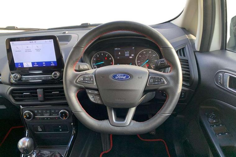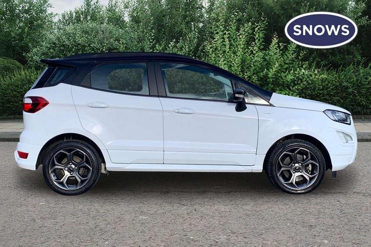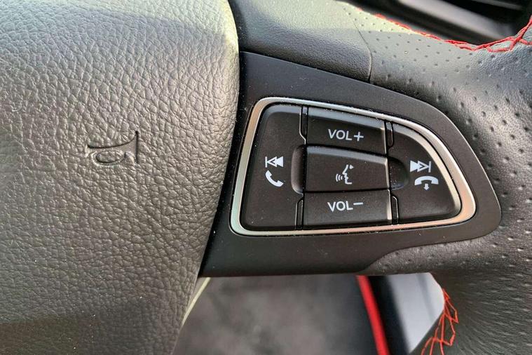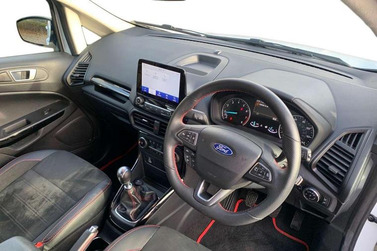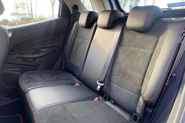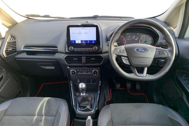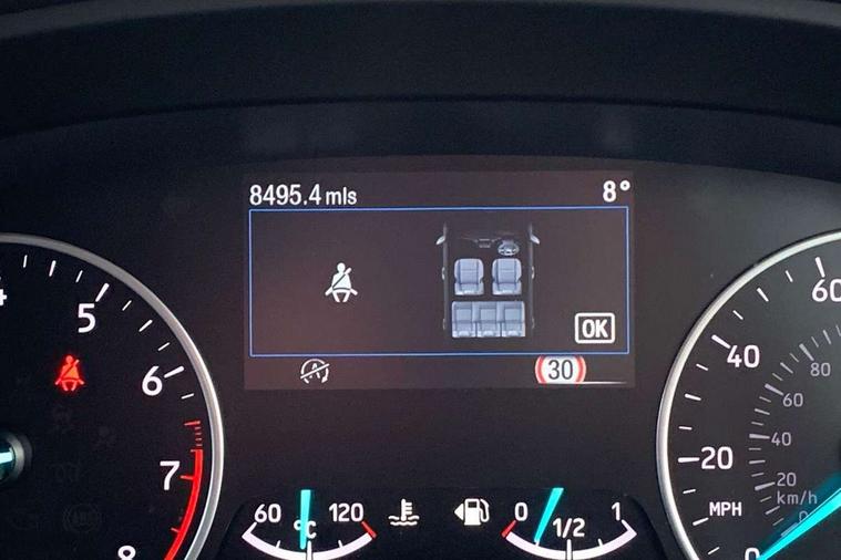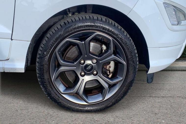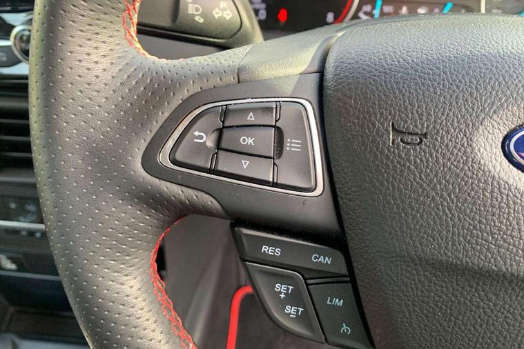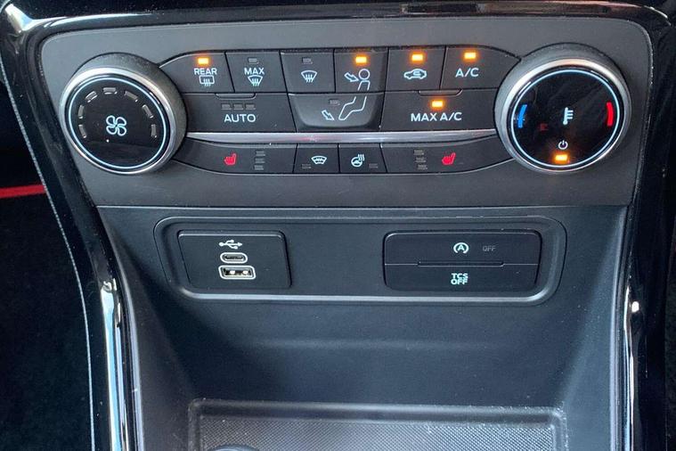 Cruise control, e-Call (emergency call), Easy fuel capless refuelling system, Ford SYNC 3 nav system with DAB radio, 8" screen, emergency assistance, Apple car play/Android auto, 2x USB, 6 speakers, Ford pass connect, Intelligent speed limiter, PAS, Rear parking sensors, Rear view camera, Traffic sign recognition, Trip computer, Sports suspension, Steering wheel mounted audio controls, Auto dimming rear view mirror, Automatic front wipers, Automatic headlights, Black roof rails, Body colour door handles, Body coloured bumpers, Chrome lower window surround, Electrically adjustable and heated door mirrors, Front fog lights, Front grille bars and surround in black, Headlight levelling control, Large rear roof spoiler, LED day running lights, LED third brake light, Power front and rear windows, Puddle lights, Quick-clear heated windscreen, Rear side wing doors, Rear wiper, ST Line body styling kit - Black headlamp bezel, front and rear sport bumpers, body colour lower door claddings, 12V socket in front and rear, 3 seat bench in 2nd row, 60/40 split rear seats, Ambient lighting, Centre console with sliding front armrest, Cooled glovebox, Courtesy lights with map reading light, Driver seat height/lumbar adjust, Driver's side glovebox, Driver/passenger sunvisors and lidded vanity mirrors, EATC - Electronic Auto Temperature control, Folding grab handles, Front head restraints, Front seat back map pockets, Illuminated glovebox, Illuminated luggage compartment, Isofix system on outer rear seats, Luggage compartment carpet, Neosuede/Partial sensico leather upholstery, Overhead console with sunglasses holder, Rake adjustable rear seats, Reach + rake adjustable steering column, Rear headrests, Sensico trimmed steering wheel, handbrake and gearshift gaiter with red stitching, Single front passenger seat, ST-Line Front floor mats with red stitching, Stainless steel sports pedals, Storage drawers under front seats, Tie down hooks, Variable boot floor, 3x3 point rear seatbelts, ABS, Autonomous emergency braking, Child locks on rear doors, Curtain airbags, Driver airbag, Drivers knee airbag, Electronic Stability Programme with hill launch assist, Front passenger airbag deactivation, Front side airbags, Passenger airbag, Pre collision assist system with AEB, Seatbelt reminder for driver and front passenger, Traction control, Tyre pressure monitoring system, Immobiliser, MyKey system, Remote central locking, Thatcham 1 volume sensing alarm, Low rolling resistance tyres, Tyre inflation kit,
