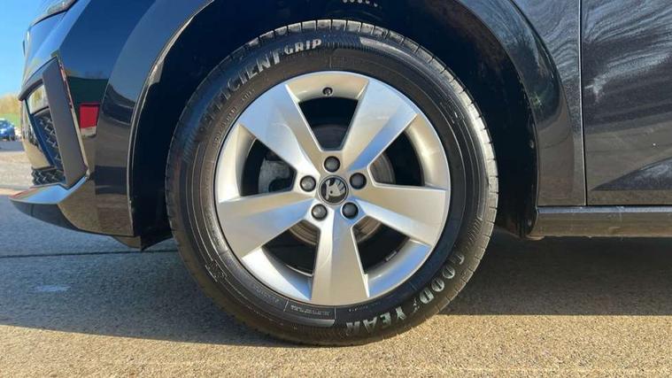 Advanced driver attention and drowsiness monitor, Bluetooth, e-Call (emergency call), Front assist system, PAS, Rear parking sensors, Rear view camera, Speed limiter, Tailgate, Traffic sign recognition, Virtual Cockpit - 10.25" digital display, Voice control system, Wireless smartlink, 4 USB C ports, 8 Speakers, 9.2" Skoda navigation display, DAB radio, Auto dimming rear view mirror, Automatic headlamp activation with Coming home and Leaving home feature, Automatic high/low beam, Body colour bumpers, Body colour door mirrors and handles, Chrome moulding around grille, Front and rear electric windows, Full LED headlights, Heated rear window, LED 3rd brake light, LED brake lights, LED daytime running lights, LED front turning lights, LED high beam, LED low beam, LED taillights, Rear LED fog light, Rear side wing doors, Rear wiper, Tinted windows, Unique dark chrome design logo on alloy wheels, 12V socket in luggage compartment, 3 seat bench in 2nd row, Black / Grey armrest stitching, Black hotstamping, Cargo elements, Chrome inner door handles, Door inserts in satin black, Driver and passenger sun visors with vanity mirror, Dual zone climate control, Front and rear roof lights, Front centre armrest, Front head restraints, Glasses storage in roof liner, Height adjustable driver seat, Height adjustable passenger seat, Ice scraper, Illuminated glove compartment, Inner circulation control with pollen filter, ISOFIX for front passenger seat, Isofix preparation for back seats, Leather gearknob and handbrake lever, Loft cloth upholstery, Luggage net under rear parcel shelf, Manual lumbar support for front seats, Net package and top tether hooks in boot space, Pearl grey ceiling, Pocket on the back of both front seats, incl. mobile phone pockets, Single front passenger seat, Skoda lettering on steering wheel, Textile floor mats, Third rear headrest, Ticket holder, Top tether for front passenger seat, Umbrella in driver's door, 3x3 point rear seatbelts, ABS, Child locks, Curtain airbags and front side airbags, Disc brakes, Driver and front passenger airbags, ESP, Hill hold control, Manual leather parking brake, One tone horn, Passenger airbag switch off function, Seatbelt reminder for driver and front passenger, Tyre pressure monitoring system, Anti theft alarm system with interior monitoring, backup horn and towing protection, Anti-theft wheel bolts, Remote central locking with 2 remote folding keys, SAFE function for remote central locking, Decord pad, door inserts Kota uni,
