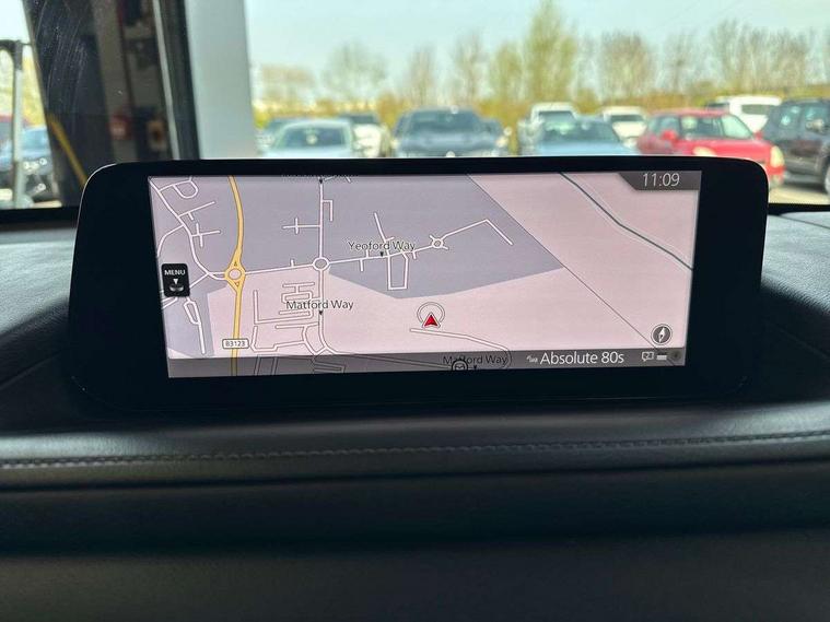 10.25" display with Mazda Connect infotainment, 7" TFT Colour driver instrument panel display, Adaptive cruise control (Mazda radar cruise control), Blind spot monitoring with rear cross traffic alert, Driver attention alert system, E-call with GPS, Emergency stop signalling system, Engine start/stop button, Front and rear parking sensors, Integrated Alexa Voice Assistant, Integrated bluetooth, Integrated Mazda navigation system, Intelligent speed assist, Lane keep assist system (LAS) with Lane departure warning system (LDWS), Mazda connected services, PAS, Power lift gate, Qi wireless charging, Reversing camera, Service indicator, Tailgate, Traffic sign recognition, Trip computer, Windscreen projected colour active driving display (HUD), Wireless Apple CarPlay/Android Auto, Cylinder Deactivation, i-stop, 2 x USB Type-C inputs, AM/FM and DAB radio, Bose surround sound system with 12 Speaker, Bose center point, Bass match and audio pilot technology, Multimedia Commander including separate volume dial, Steering wheel mounted audio/bluetooth controls, Adaptive LED Headlights, Auto dimming driver's door mirror, B-pillar and C-pillar garnishes in gloss black finish, Body coloured, electrically adjustable, heated auto power folding door mirrors with integrated indicators, Chrome finish signature wing in front grille, Coming/leaving home lighting function, Dual bright finish exhaust tip trim, Dusk sensing headlights, Electric front/rear windows with one touch auto up/down, Frameless auto dimming interior rear view mirror, Front kodo turn signal, Gloss black front grille, Gloss black rear roof spoiler, High beam assist, LED auto headlight levelling, LED signature daytime running lights, Privacy glass (rear side windows and rear screen), Rain sensing front wipers with adjustable speed and intermittent wipe, Rear fog lights, Rear side wing doors, Rear wiper, Signature LED rear combination lights, Third brake light, 12V power outlet in centre console, 3 seat bench in 2nd row, 60/40 split fold down rear seats, Bright interior trim accents with steering wheel centre bezel, surround of engine start / stop button and glove box handle, Cloth upholstery with interior accents, Dark cloth door panel inserts, Dashboard, door cards and front centre armrest in black cloth, Driver and front passenger visors with covered vanity mirror and driver ticket holder, Driver seat manual slide, recline, height and seat tilt adjust, Driver, front passenger and two rear door storage, Driver, Front passenger and two rear grab handles with coathooks, Dual zone climate control air conditioning with rear air vents, Folding rear centre armrest with two cup holders, Front and rear (x3) head restraints, Front and rear LED lighting, Front armrest, Front centre storage with two cupholders with lid, Front passenger seatback pockets, Front passengers seat manual slide, recline and height adjustment, Gear shift indicator, Glovebox illumination, Heated front seats with 3 stage setting, ISOFIX child seat anchorage points attached on outer rear seats, Leather wrapped gear shift knob, Leather wrapped steering wheel with telescopic and tilt adjustment, LED luggage compartment lighting, Light roof headlining and pillars, Roof mounted sunglasses holder, Single front passenger seat, 3 point ELR front seat belts x2 with pretensioners, 3 point ELR rear seat belts, Anti-lock braking system (ABS), Drivers knee airbag, DSC - Dynamic Stability Control, Electronic parking brake with auto disengage function and auto hold function, Front and rear curtain airbags, Front dual stage driver and single stage front passenger airbags, Front passenger airbag cut-off switch, Front side airbags, Front smart city brake support, G-Vectoring control plus, Hill launch assist, Manual child lock in rear doors, Mild Hybrid system with regenerative braking, Seatbelt reminder for driver/front passenger and rear seats, Traction control system (TCS), Tyre pressure monitoring system (TPMS), Remote central locking with deadlocking and automatic door lock when driving, Smart keyless entry, Thatcham accredited alarm and immobiliser, 18" Silver metallic alloy wheels, Emergency tyre repair kit,