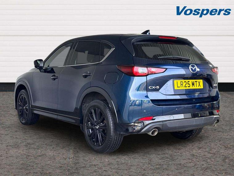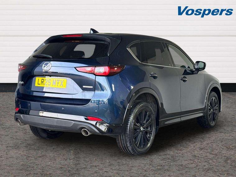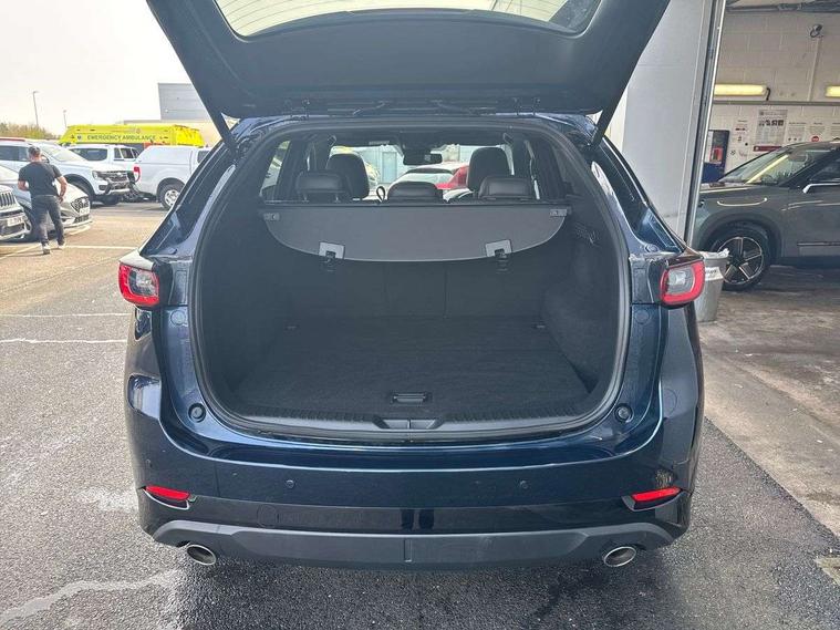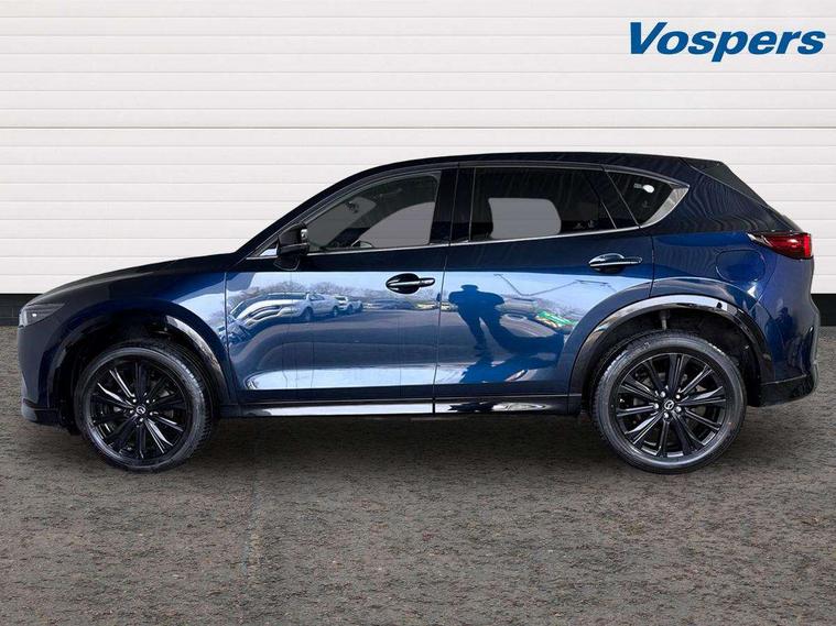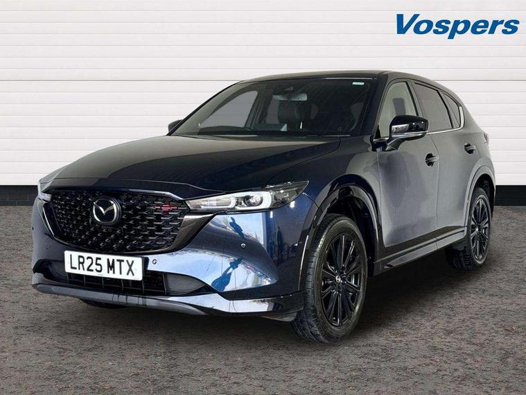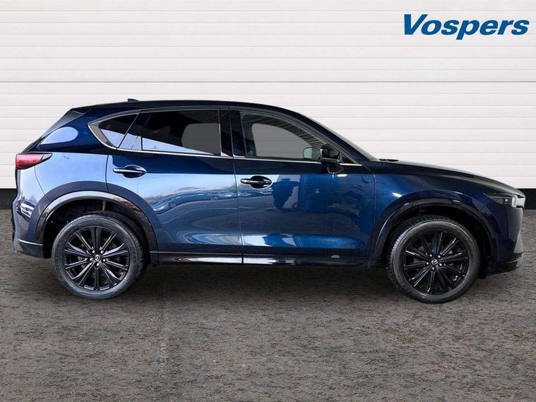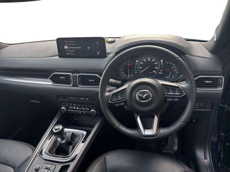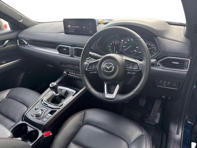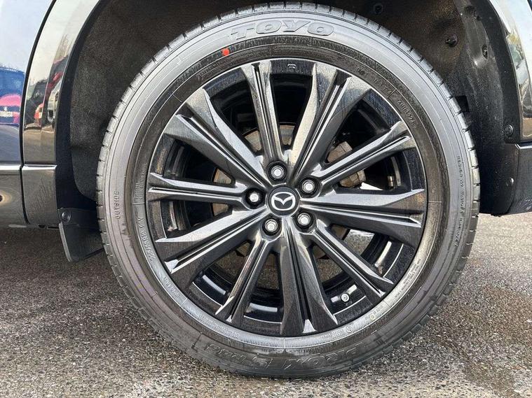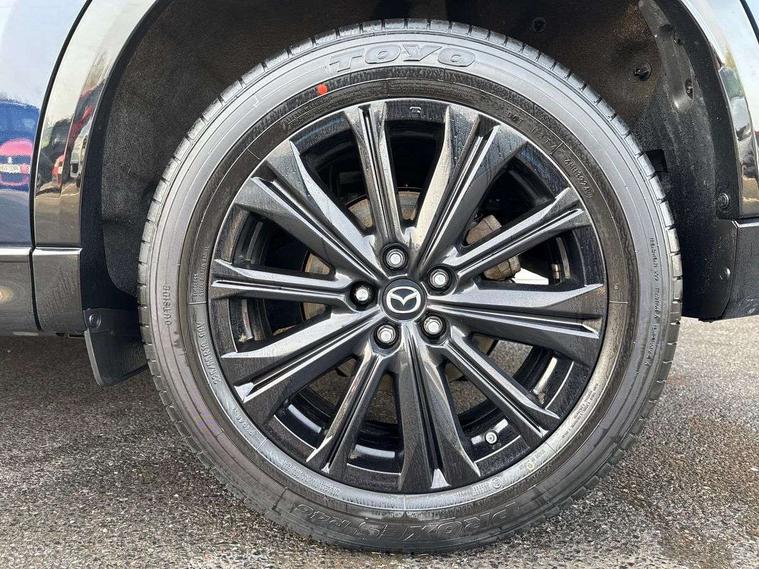 10.25" display with Mazda Connect infotainment, 7" colour TFT display, Advanced blind spot monitoring, Bluetooth connectivity with voice control, Collision prevention assist, Connected services, Cruising Traffic Support, Electric power steering, Emergency stop signalling system, Engine start/stop button, Forward collision warning, Front and rear parking sensors, Integrated navigation system, Intelligent speed assist, Lane departure warning system, Lane keep assist, Power liftgate, Qi wireless phone charging, Radar cruise control, Rear cross traffic alert, Reversing camera, Service indicator, Traffic sign recognition (TSR), Trip computer, Windscreen projected colour active driving display (HUD) with memory, Wireless apple car play/android Auto, Cylinder Deactivation, i-stop, AM/FM radio, Bluetooth audio streaming, Bose premium sound system with 10 speakers, DAB Digital radio, Multimedia Commander including separate volume dial, Steering wheel mounted audio controls, Adaptive front lighting system, Auto dimming rear view mirror, Automatic headlights, Black honeycomb door trim decoration panel, Black honeycomb interior decoration panel, Body colour roof spoiler, Coming/leaving home lighting function, Door mirror integrated indicators, Dual large chrome tailpipes, Dusk sensitive headlamps, Electric front/rear windows with one touch auto up/down, Front grille in gloss black finish, Front grille in gloss black with red accent + gloss black signature wing, Gloss black B and C pillars garnish, Gloss black door mirrors, Gloss black front and rear lower bumper mouldings, Gloss black tire arch and side mouldings, High beam assist, Intermittent rear wash/wipe, LED auto levelling, LED daytime running lights, LED front fog lights, LED Headlights, LED third brake light, Power folding and heated door mirrors, Power tilt/slide sunroof, Privacy glass (rear side windows only), Rain sensing front wipers, Rear side wing doors, Red front grille accent, Red stitching and accents on door trim, knee pad, console lid, steering wheel, shift boots, Scuff plates, Shark fin antenna, Signature LED rear combination lights, Variable intermittent front wash/wipe, Windscreen wiper de-icer, 12v electrical power outlet, 3 seat bench in 2nd row, 3 stage heated front seats, 40:20:40 Karakuri fold-flat seat system, 6 way electric adjustable passenger seat, 8 way electric driver seat with lumbar support + memory, Black roof lining, Cargo room flat floor board with waterproof undertray, Driver seat power slide, recline and height adjustment, Driver, Front passenger and two rear grab handles with coat hooks, Driver/passenger front seatback pockets, Driver/passenger sunvisors + illuminated vanity mirrors (drivers with ticket holder), Dual zone climate control, Folding centre armrest with 2 cup holders, Front and rear door pockets, Front centre storage with two cupholders, Front passenger seat power slide, recline and height adjustment, Gear shift indicator, Heated steering wheel, Humidity sensor, Illuminated glovebox, Interior dome light with integral spotlight, ISOFIX child seat anchorage points attached on outer rear seats, Karakuri tonneau cover, Leather upholstery, Leather wrapped steering wheel and gear knob, Luggage compartment LED lighting, Luggage compartment power outlet, Rear air vents, Rear headrests, Rear seat recline, Roof mounted sunglasses holder, Single front passenger seat, Three height adjustable head restraints, Tilt/height adjustable steering wheel, USB Connectivity (2x front Type-C, 2x rear Type-B), White interior LED illumination lighting, 3 point front seatbelts with pre-tensioners, 3 rear 3 point seatbelts, ABS, Advanced Smart City Brake Support - SCBS, Child locks on rear doors, Driver and front passenger side airbags, DSTC-Dynamic Stability and Traction Control, Dual front airbags, Electronic brake force distribution, Electronic parking brake with auto hold, ESP, Front and rear curtain airbags, Front passenger airbag deactivation, G-Vectoring control, Hill hold assist, Seatbelt reminder front and rear, Single stage passenger airbags, Smart brake support with forward obstruction warning, Tyre pressure monitoring system, Automatic door locking when moving off, Deadlock, Immobiliser, Power door locks, Remote central locking, Smart keyless entry, Thatcham Cat.1 alarm, 19" Black alloy wheels, Tyre repair kit,