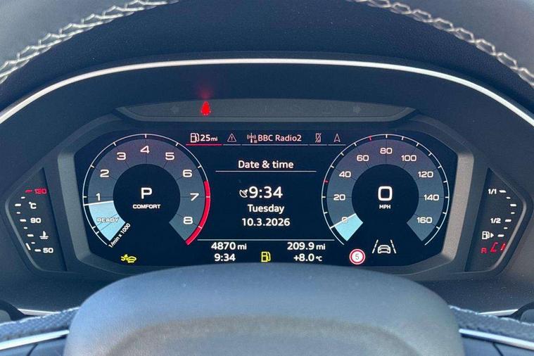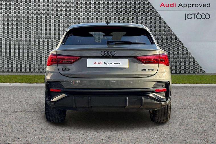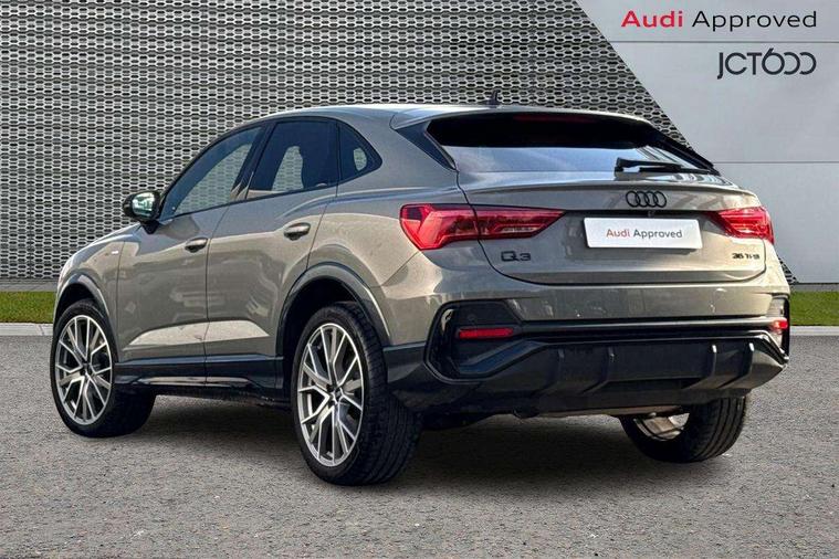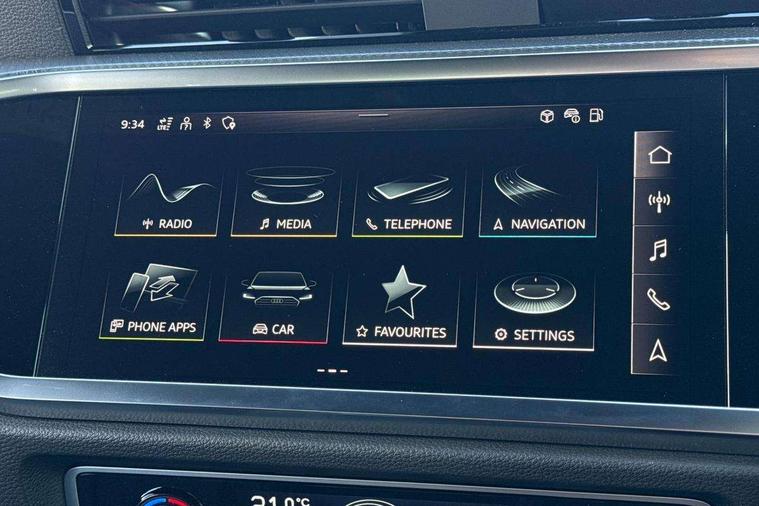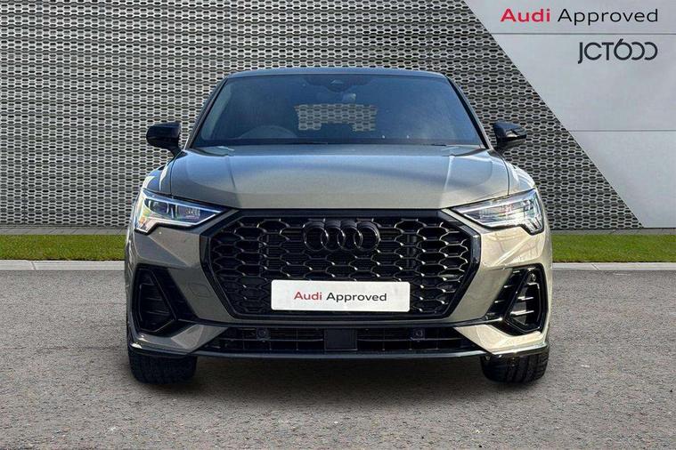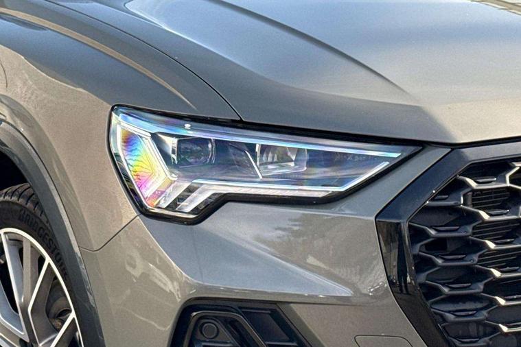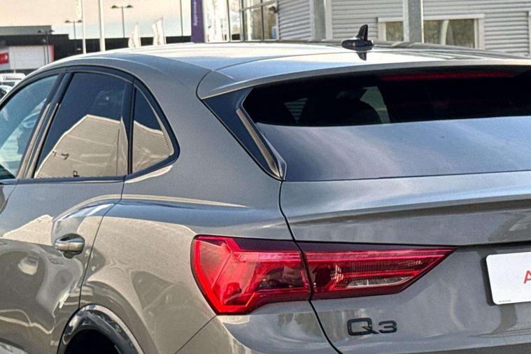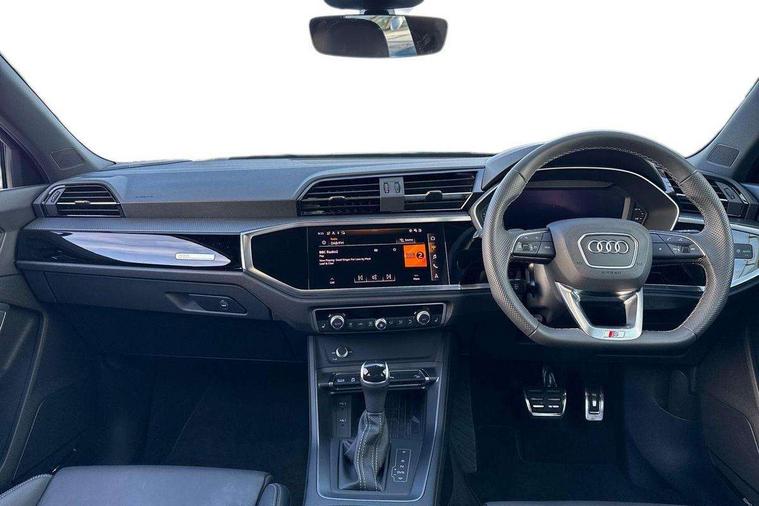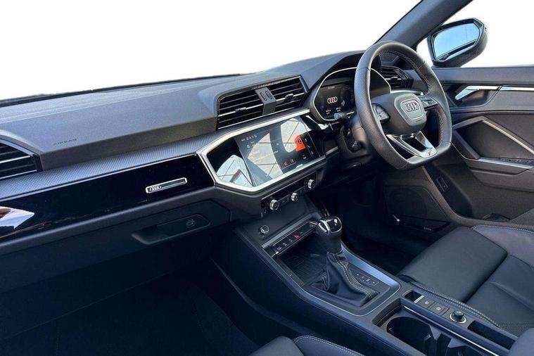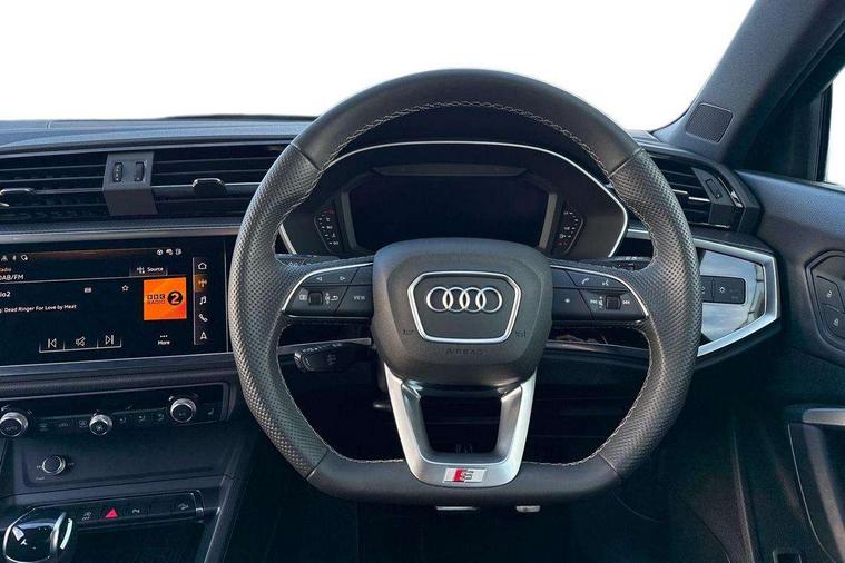 Audi connect safety and service, Audi drive select, Audi lane departure warning, Audi Virtual Cockpit - 10.25" display, Bluetooth interface, Camera based traffic sign recognition, Distraction and Fatigue warning, Legal emergency call, MMI Navigation Plus with high resolution 10.1 inch touchscreen colour display, Power operated tailgate, Progressive steering, Service interval indicator, Smartphone interface includes wireless Apple carplay/Android Auto, Start stop system with recuperation, Voice control system with natural language interaction, Sports suspension, 2 USB-C ports with charge and data functions, 6 passive loudspeakers, DAB digital radio module, Acoustic windscreen, Audi Beam uses LEDs to project the Audi logo onto the ground as you exit your Q3, Auto dimming door mirrors, Auto dimming frameless rear view mirror, Electrically folding, adjustable and heated door mirrors with integrated LED side indicators and kerb view function for passenger side, Front and rear electric windows, Front fog lights, Front underbody protection in manhattan grey paint finish, High gloss black finish B and C pillars, Honeycomb design radiator grille in matt anthracite black, LED Dynamic rear indicators, LED headlights with LED daytime running lights, LED rear lights, LED third brake light, Privacy glass dark tinted rear and rear-side windows (from B-pillar backwards), Rain and light sensors, Rear diffuser grille in grained matt black, Rear diffuser strip in matt anthracite black, Rear side wing doors, Rear underbody protection in matt black, Rear wiper, S line front and rear bumpers and side skirts in contrasting Manhattan grey paint finish, Variable front intermittent wipers, 12V socket in rear centre console, 3 seat bench in 2nd row, 40:20:40 folding with manual adjustment for 60:40 forwards/backwards position and backrest angle, Adjustable rear seat bench/backrest with centre armrest and cupholder, Black carpet mats, Black cloth headlining, Dual zone electronic climate control, Electric lumbar support, Front and rear black floor mats with contrast stitching in rock grey, Front and rear headrests, Front centre armrest, Height and reach adjustable steering wheel, Illuminated door sill trims with S logo, ISOFIX child seat mounting for front passenger with airbag deactivation and outer rear seat including top tether attachment point for outer rear seats, Luggage compartment sill protection in stainless steel, Manual front seats with height adjustment, Perforated leather gearknob, Single front passenger seat, Stainless steel pedals, Twin leather upholstery with front sport seats + S embossing, Black styling pack - Q3, Non smoking pack - Q3, 3x3 point rear seatbelts, 6 airbags - Driver, front passenger, curtain and side windows, Audi pre-sense front with pedestrain and cyclist recognition, Electrically operated child locks on rear doors, Electromechanical parking brake, Electronic stabilisation control including ABS, ASR and EDL, Front seatbelt reminder, Hill descent control, Hill hold assist, Pre sense basic, Seatbelt monitoring, Tyre pressure warning, Warning triangle and first aid kit, Anti theft wheel bolts, Immobiliser, Remote central locking, Thatcham approved category 1 anti theft alarm, Aluminium look interior elements, Detail dashboard around MMI touch colour display in glass look, black with surround in aluminium look, Leatherette door armrest, Piano black inlay,