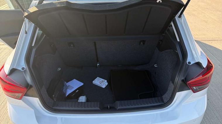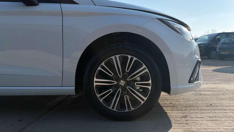 'Lights On' Reminder warning buzzer, 8" Digital cockpit, 9.2" touchscreen navigation system with type C USB socket, Voice control and DAB/AM/FM radio, Auto start and stop system, Bluetooth audio streaming with handsfree system, Cruise control, Digital clock, E-call, Full link smartphone integration with mirror link, wireless apple carplay, Google android auto + USB Type C cable for apple and android devices, Lane assist, Low fuel warning light, Outside temperature gauge, Power Steering, Rear parking sensor, Seat connect plus with safety, service, remote and online, SEAT logo boot release, Speed limiter, Traffic sign recognition, Trip computer, Comfort suspension, Auxiliary input socket, Radio/MP3 player, SD card slot, Steering wheel mounted controls, Anti theft roof antenna, Body colour bumpers, Body colour door handles, Body colour door mirror caps, Dimming interior rear view mirror, ECO LED automatic headlights and LED daytime running lights, Electric front windows, Electric headlight adjustment, Electrically adjustable door mirrors, Front/rear fog lights, LED tail lights, Rain sensor, Rear side wing doors, Rear wiper, Third brake light, 3 seat bench in 2nd row, 60/40 split folding rear seat, Air conditioning with dust and pollen filter, Chrome interior detailing and grey headlining, Cloth upholstery, Comfort seats, Front courtesy lights, Front cupholders x 2, Front reading lights, Gear shift indicator, Glovebox, Grey interior air vents, Height adjustable front and rear headrests (five), Height adjustable front seats, Height/reach adjust steering wheel, Illuminated boot, Instrument lighting with brightness control, Isofix, Leather multifunction flat bottomed sports steering wheel, Passenger sunvisor, Single front passenger seat, Sunvisors with mirror and driver side card holder, Safety and driving pack (S) - Ibiza, 3 point seatbelts on all 3 rear seats, ABS, Active front headrests, Child locks on rear doors, Electronic stability control, Energy recovery system, Front assist forward collision warning and autonomous emergency braking, Front driver and passenger side airbags with curtain airbag and front passenger airbag deactivation, Hill hold control, Multi-Collision braking, Seat belt reminder for front and rear seats, Tiredness recognition system, Tyre pressure monitoring system, Electronic engine immobiliser, Locking wheel bolts, Remote central locking + deadlocks, 16" Design machined alloy wheels in Nuclear grey,