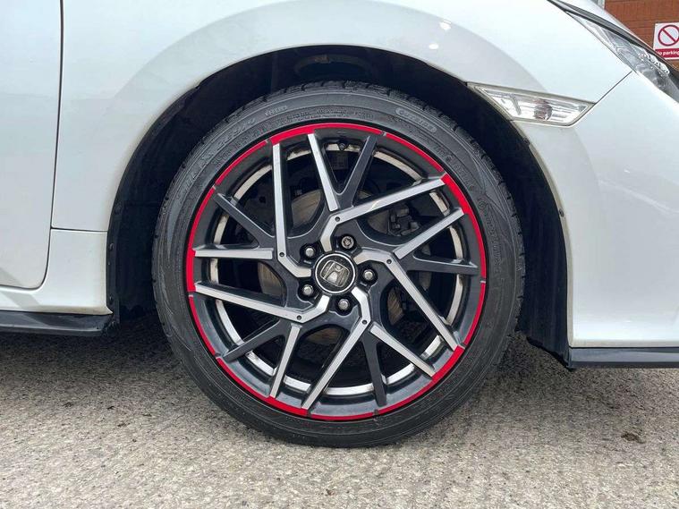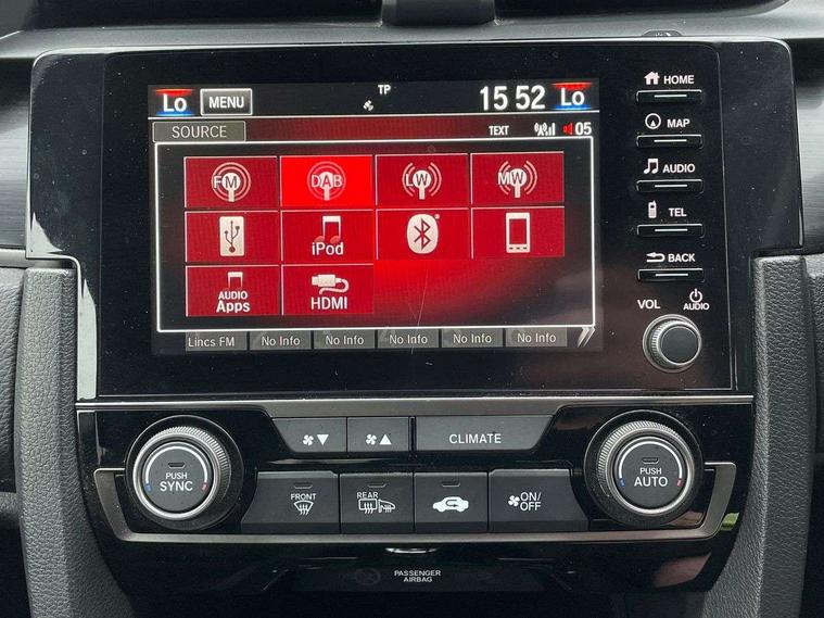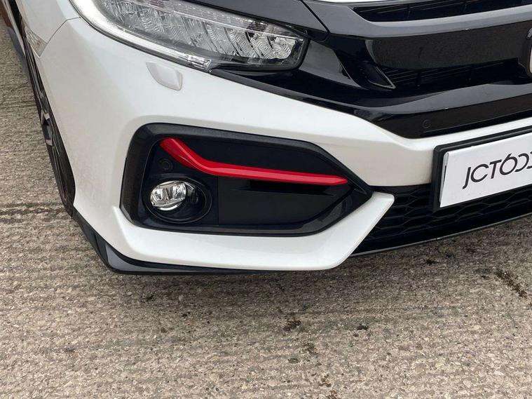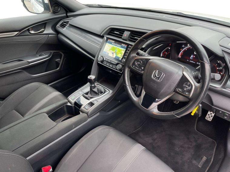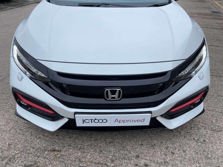 7" touch screen, Adaptive cruise control, Adaptive motion for electric power steering, Apple car play/Android Auto, Bluetooth hands free telephone connection, Easy fuel capless refuelling system, Economy mode, Electric power steering wheel with variable gear ratio steering, Emergency stop signalling system, Forward collision warning, Front and rear parking sensors, Honda CONNECT with GARMN Navigation + 7" touchscreen, AM/FM, internet radio, aha app integration and internet browsing, Idle stop, Intelligent speed limiter, Lane departure warning system, Lane keep assist, Multi-information display, Rear parking camera, Red instrument illumination, Road departure mitigation, Traffic sign recognition, Vehicle stability assist, 'Shark fin' mobile antenna, 180w Power audio system, 2x USB and HDMI, 8 speakers, Auxiliary socket for external MP3 player, Digital Audio Broadcast (DAB) Tuner, Steering wheel mounted audio controls, Automatic coming/leaving home lighting function, Automatic headlights with dusk sensor, Automatic rain sensing wipers, Black grille, Black window surrounds, Body colour door handles, Body colour door mirrors, Body coloured bumpers, Dual exhaust pipes, Electric adjustable heated door mirrors, Electric front/rear windows/one touch operation, Electrically folding door mirrors, Front/rear and side sill sport styling, Fuel filler cap, Headlight washers, High beam assist, LED daytime running lights, LED front fog lights, LED Headlights, LED rear lights, Power foldback door mirrors, Privacy glass, Rear spoiler, Rear wiper, 4 Cargo net hook, 60/40 split folding rear seat, Alloy pedals, Ambient light in roof, Centre console storage and sliding armrest, Cloth upholstery, Driver and front passenger seat electric lumbar adjustment, Driver's seat height adjustment, Dual climate control air conditioning system, Front accessory power socket, Front map lights, Front/rear courtesy lights, Gear shift indicator, Glovebox light, Isofix points, Isofix system on outer rear seats, Leather gear knob, Leather steering wheel, Luggage floor box, Passenger seat back pocket, Rear accessory power socket, Rear air vents, Rear armrest with cupholder, Red meter illumination, Shift indicator lighting (SIL), Sunvisors with illuminated vanity mirrors, Three height adjustable rear head restraints, Tilt/telescopic adjustable steering wheel, Tonneau cover, Trunk light, 5 three point seatbelts, ABS+EBD+Brake assist, Airbags - driver and front passenger, Anti-whiplash front headrests, Collision mitigation braking system, Deflation detection system, Driver SRS airbag (single stage inflation), Electronic parking brake with auto hold, Front and rear curtain airbags, Front and rear seat belts with emergency locking retractor (ELR), Front seatbelt pretensioners, Front side airbags, Hill start assist, Low speed safety system, Passenger airbag deactivate switch, Tyre pressure warning, Immobiliser, Mirrors and windows key fob, Remote central locking with 2 jack knife keys, Security alarm, Selectable door unlock, Superlocking, Ultrasonic security sensor, Black instrument panel, 17" Black alloy wheels, Tyre repair kit,