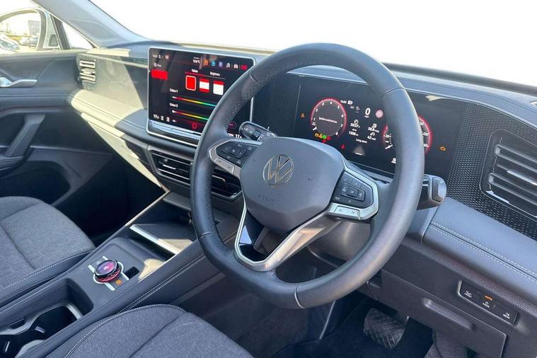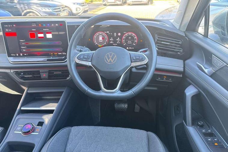 Adaptive cruise control (ACC), Advanced driver attention and drowsiness monitor, Bluetooth mobile phone interface, Digital Cockpit Pro - 10.25" high resolution dash display screen with customisable menus and information, Dynamic road sign display, E-Sim card for online connectivity, eCall emergency call service, Front Assist - Autonomous emergency braking with pedestrian and cyclist monitoring, Lane change system, Side assist, Rear traffic alert and Exit warning system, Lane keeping system Lane Assist, Multifunction front facing camera, Oncoming vehicle braking when turning including swerve support, Park assistance plus with front and rear parking sensors, Power assisted steering with speed sensitive, Start/stop system with regenerative braking, Warning signal and warning light for front and rear seatbelts not fastened, Wireless App-Connect, Front wheel drive, Digital radio reception (DAB), Diversity antenna for FM reception, Ambient lighting with logo projection, Auto dimming interior rear view mirror, Automatic headlight control system, Body coloured bumpers and air intake with chrome trim, Body coloured door handles, Body-coloured exterior mirror housings, Coming/leaving home lighting function, Heat insulating glass in side and rear windows, Heat insulating windshield, Heated rear window, High level 3rd brake light, Illuminated door handle recesses, Illuminated lightline between headlamps, Rain sensor windscreen wipers, Rear fog light on one side, reversing light on both sides, Rear side wing doors, Rear wiper, 12V outlet in center console rear and in luggage compartment, 12V socket in centre console, 3 bench rear seats in 2nd row, Air care climatronic 3 zone air conditioning system with rear air conditioning control panel, Carpet mats, front and rear, Centre console with illuminated storage compartment with sliding cover and two drinks holders, Ceramique headlining, Door and side trim panel in foam film and woven fabric, Front centre armrest, ISOFIX anchors for child seats on outer rear seats and front passenger seat compatible with i-Size, Mechanical rear seat release, Power adjustable lumbar support in front, Rear bench seat, split folding, longitudinally movable and folding with load-through hatch and centre armrest, Safety optimised front head restraints, Single front passenger seat, Sun visors with illuminated vanity mirrors, Three rear head restraints, Variable luggage compartment floor, Design package - Tiguan, 3 point seat belt for centre rear seats, 3 Point seat belts in front with pretensioners, 3 point seatbelts in outer rear with ECE label, Driver and front passenger airbag with front passenger airbag deactivation, Electronic parking brake with auto hold, Front and rear curtain airbags, Front and rear side airbags, Front centre airbag, Front disc brakes, Manual child proof rear door locks, Rear disc brakes, Two tone horn, Warning triangle, Anti theft wheel bolts, Soul instrument panel,