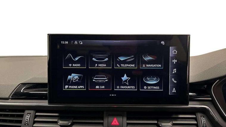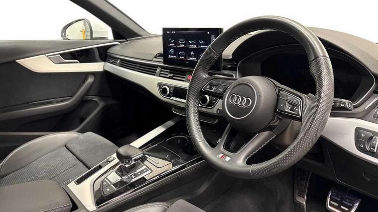 Audi connect safety and service (e-call), Audi drive select, Audi smartphone interface, Audi virtual cockpit, Automatic start-stop system with coasting functionality and efficiency programme, Bluetooth interface, Camera based traffic sign recognition, Electromechanical power steering, Email, calendar and text messages displayed via MMI, Front and rear parking sensors, Lane departure warning, MMI Navigation plus with MMI touch includes 10.1" high resolution colour MMI display, 3D map, Power operated tailgate, Rear view camera, Voice control system, 54 litre fuel tank, Sports suspension lowered by 23mm, 2 USB charging ports, 8 passive loudspeakers, DAB digital radio reception, Aluminium roof rails, Auto dimming rear view mirror, Body colour door handles, Body colour front spoiler lip, Body colour side sill trim, Body coloured door mirrors, Electric adjustable/heated/folding door mirrors with auto dimming, Grained matt black side air inlets with matt aluminium silver inlay, High beam assistant, Honeycomb structure radiator grille in grained matt black, LED headlights with LED rear lights + dynamic rear indicators + headlight adjustment and high beam, turning light + LED daytime running lights, LED third brake light, Matt aluminium silver tailpipe trim, Privacy glass, Rain and light sensors, Rear side wing doors, Rear wiper, S Line badges on the front wings, S line front and rear bumpers with side skirts, S Line rear diffuser in matt anthracite black with trim strip in matt aluminium silver, S Line roof edge spoiler, Variable intermittent front wash/wipe, Windscreen with acoustic glazing, 3 spoke high multi-function sports leather steering wheel grips in perforated leather with S badging including paddle shift, 4 way electric lumbar support for driver and front passenger, 40/20/40 split folding 3 rear seat bench in 3 parts with rear centre armrest, Black carpets, Black cloth headlining, Black perforated leather gearknob, Contrast stitching on seats, steering wheel and gear lever gaiter, Deluxe 3 zone electronic climate control, Electric load area cover, Front and rear head restraints, Front centre armrest, Heated front seats, Illuminated door sill trims with S logo, ISOFIX child seat mounting and top tether, Manual seat adjustment, Single front passenger seat, Stainless steel pedals and foot rest, High gloss package - A4, LED Interior light pack - A4/S4, 3 rear seatbelts, 6 airbags - Driver, front passenger, curtain and side windows, Attention and drowsiness assist, Electronic Stabilisation Control (ESC) including ABS, ASR and EDL, Hill hold assist, Multi collision brake assist, Pop-up bonnet for pedestrian protection, Pre sense city, Rear door child safety locks, Seatbelt monitoring, Warning triangle and first aid kit, Anti theft alarm, Anti theft wheel bolts, Central locking, Keyless Go, Matt brushed aluminium inlays, Tool kit, Tyre repair kit,