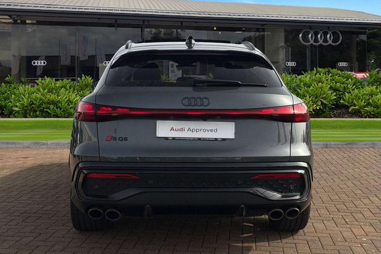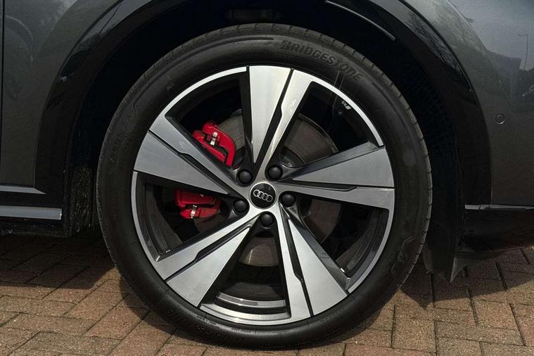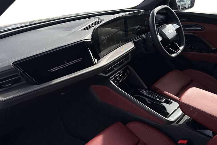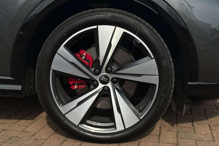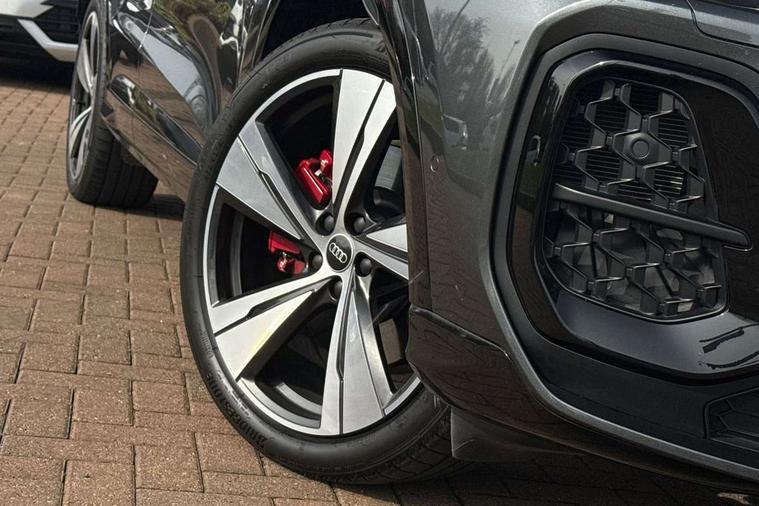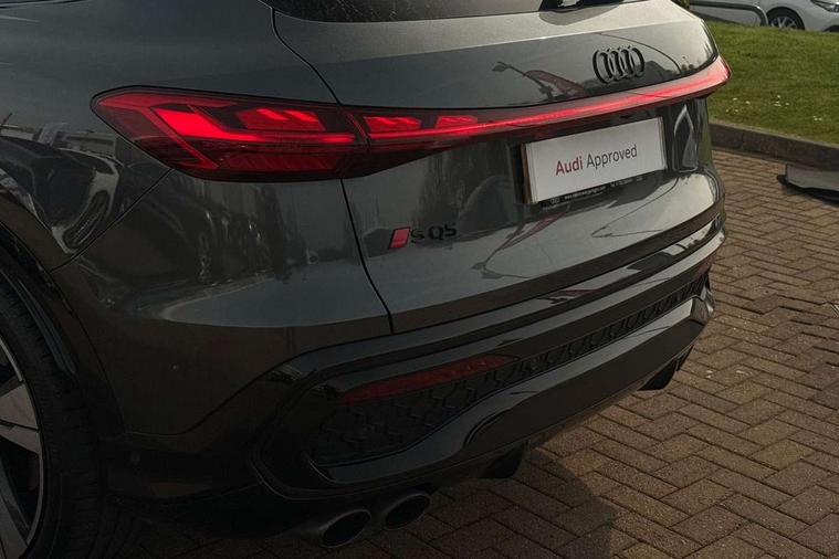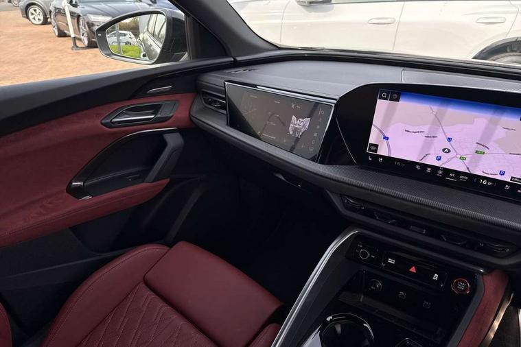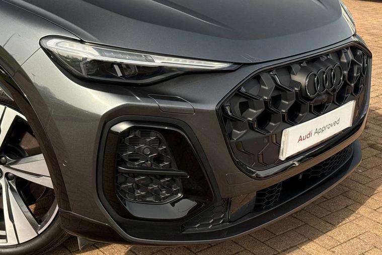 Adaptive cruise assist plus with steering intervention, Advanced driver attention alert, Audi application store, Audi connect emergency call and service, Audi digital key, Audi drive select, Audi smartphone interface, Audi virtual cockpit plus with 11.9" OLED colour display, Camera based traffic sign recognition, Fatigue monitor, Front cross traffic intersection assist, Garage door opener, Lane change assistant with exit warning system, rear cross traffic alert and rear turn assist, Lane departure warning with emergency assist, MMI 10.9" front passenger touch display, MMI navigation plus with high resolution 14.5" OLED touchscreen colour display, Park assist plus, Parking system plus with 360 display, PAS, Reversing camera, Swerve assist and turn assist, Top view camera, Traffic sign based speed limiter, S adaptive air suspension, 2 USB-C ports in both the front and rear, DAB Digital radio, Smartphone compartment with wireless charging, Acoustic glass for front door windows, Active digital light signatures - Six additional combinations of active daytime running light signature, Auto dimming rear view mirror, Coming/leaving home lighting function, Digital OLED tail lights including communication light, Electrically adjustable heated and folding + automatically dimming exterior mirrors, Exhaust tailpipes in dark chrome, Front and rear electric windows, Front door sill trims with aluminium inlays, illuminated with 'S' logo, Full body paint finish, Grill frame, inlay and front air inlets in matt anthracite chrome, Headlight cleaning system, Heated rear window, High beam assist, High gloss window surrounds, Logo projection light in exterior mirrors, Matrix LED headlights, Memory function for door mirrors, Privacy glass, Projection third brake light for rear window in LED, Radiator grille in phantom black, Rear and side windows with heat insulating glass, Rear honeycombe grille in matt black with inlay in matt anthracite chrome, Rear side wing doors, Rear wash/wipe, Red S rhombus badging with 'S' lettering on rear, S exterior styling, Towbar preparation, Windscreen with acoustic glazing, 3 rear head restraints, 3 seat bench in 2nd row, 3 spoke leather steering wheel with multi-function buttons with touch control, flattened on top and bottom, with S badging and contrast stitching, 40:20:40 split folding rear seat bench with centre armrest and cup holders, Comfort centre armrest front, Deluxe 3 zone electronic climate control, Electric steering wheel adjustment, Electrically adjustable front seats with memory function for driver's side, Front and rear floor mats, Front seat ventilation, Front sport seats with integrated head restraints, Headlining in black cloth, Heated front seats, Heated outer rear seats, Heated steering wheel, i-Size child seat mounting on the front passenger side and outer rear seats, i-Size and top tether on the outer rear seats, Increased charging capacity for USB ports 2X100 Watts in rear, 2X60 Watts in front, Interior trim in aluminium look, Luggage compartment lid, electrically opening and closing, Perforated fine nappa leather upholstery with diamond stitching incl ventilation and massage function for front seats, Pneumatically adjustable lumbar support with massage function for front seats, S embossed logo on front sport seats, Single front passenger seat, Softwrap in Dinamica, Stainless steel pedals and footrest, Steering wheel grips in perforated leather and shift paddles, Ambient lighting package plus - Q5, Black styling package plus - Q5, Sound and Vision pack - Q5, Storage and luggage compartment pack - Q5, 3x3 point rear seatbelts, ABS, Acoustic vehicle alerting system, Convenience key with safelock, Driver and front passenger airbag with passenger airbag deactivation, Electric child safety locks, First aid kit with warning triangle and high visibility vests, Front emergency brake assist, Front side airbags with head airbag system and front interaction airbag, Hill hold assist, Occupant detection in rear seat area, Proactive passenger protection system for front, sides and rear, Red brake calipers, Side airbags in front and rear with head airbag system and front interaction airbag, Tyre pressure loss indicator, Anti theft alarm, Anti-theft wheel bolts, Remote control key with SAFELOCK and keyless go, Accent surfaces and control buttons in gloss black, Black dashboard with contrast stitching, Steel grey seat stitching, Upper and lower interior elements in dinamica microfiber, Tyre repair kit,