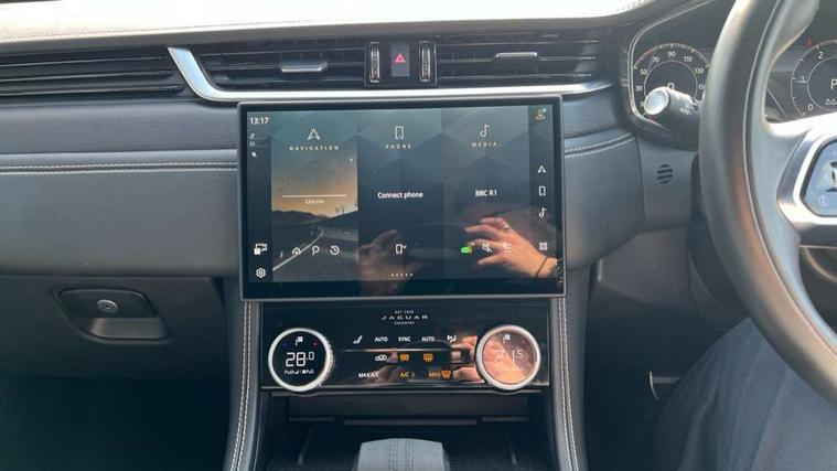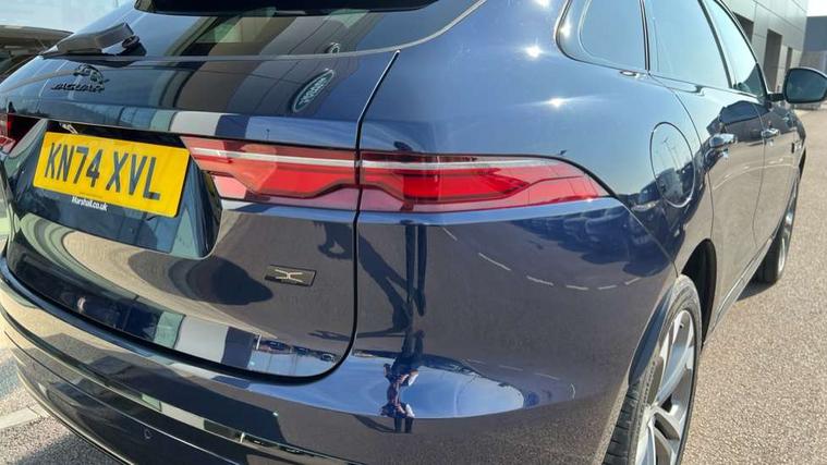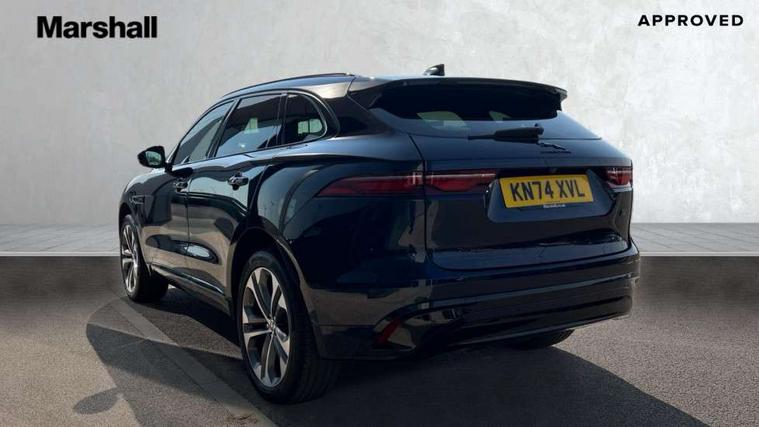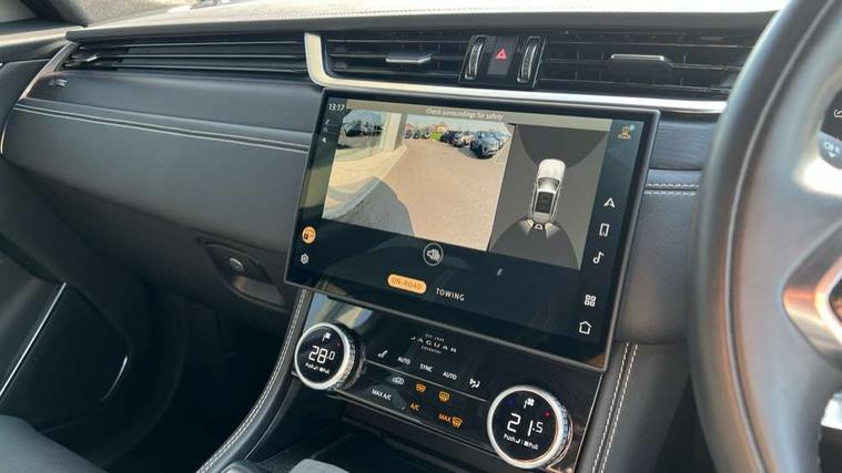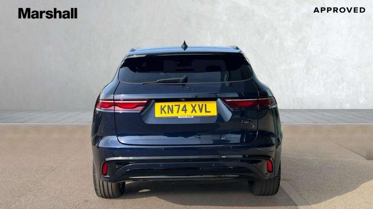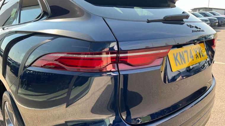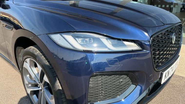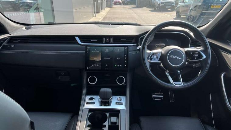 11.4" touchscreen, Adaptive cruise control with steering assist, Android Auto, Apple car play, Blind spot assist, Bluetooth connectivity, Clear exit monitor, Driver alert system, Driver condition monitor, eCall emergency call system, Eco driving style assistant, Electric power assisted steering, InControl remote, Interactive driver display digital with 12" TFT display, Jaguar Toggle shift selector, Lane departure warning system, Lane keep assist, Outside temperature gauge, Personalisation profile management, Pivi pro connected navigation system with app interface and media storage, Pro services and wifi hotspot, Push button starter, Rear collision monitor, Rear traffic monitor, Service interval indicator, Speed proportional steering, Start up sequence with movement in dials and lighting, Traffic sign recognition with adaptive speed limiter, Trip computer, Voice control system, Wireless device charging, 8 speed automatic transmission, Adaptive dynamics, All terrain progress control, All Wheel Drive (AWD), Configurable dynamics, Open differential with torque vectoring by braking, AM/FM radio, Bluetooth streaming, DAB Radio (Digital Audio Broadcasting), Dynamic volume control, InControl apps, InControl protect, iPod integration, 3 flash lane change indicators, 90th Anniversary Edition Badge, AHBA and animated directional indicators, Approach Illumination, Auto dimming rear view mirror, Automatic headlights, Electric heated/power fold memory door mirrors with approach lights and auto dimming driver side, Electric windows with one touch open/close and anti trap, F-Pace and R Dynamic badge, Green tinted glass, Heated front windscreen + heated washer jets, Heated rear window with timer, Illuminated metal tread plates with Jaguar script, Jaguar script and leaper, LED High level third brake light, LED tail lights, Metal load space scuff plates, Non acoustic front windscreen, Privacy glass (rear side windows and rear screen), R Dynamic badge on side door, Rain sensor windscreen wipers, Rear fog lights, Rear metal tread plates, Rear side wing doors, Rear wiper, Trailer stability assist, Variable front intermittent wipers, 12V power point front, 3 rear headrests, 3 seat bench in 2nd row, Additional power sockets - Two additional USB sockets in rear centre console and one 12V socket in trunk, Air distribution speed, Bright metal foot pedals, Centre armrest console, Centre console with side storage, Configurable cabin lighting, Deletion loadspace storage rails, Door sill tread plates, Ebony suede cloth headlining, Electrically adjustable steering column, Fold flat front seats, Front centre armrest with storage compartment, Front door storage space, Glovebox finisher with jaguar script, Heated steering wheel, Hooks in loadspace, Illuminated glovebox, Interior front door handles with separate locking switches, ISOFIX on outer rear seats, Jaguar sense, Leather steering wheel, Luggage tie downs in loadspace, Mist sensing, Multifunction steering wheel, Overhead lighting console, Overhead stowage for sunglasses, Passive front head restraints, Premium carpet mats, Rear air vents, Rear armrest with twin cupholders, Rear centre headrest, Rear door storage space, Reversible boot floor, Satin chrome gearshift paddles, Shopping bag hook, Single front passenger seat, Sunvisors with illuminated vanity mirrors, Twin front cupholders with cover, Online Pack with data plan - F-Pace, 355mm front brakes and 325mm rear brakes, 3x3 point rear seatbelts, ABS, All surface progress control (ASPC), Brake pad warning light, DSC - Dynamic Stability Control, Electric parking brake (EPB), Emergency brake assist, Front airbags with passenger seat occupant detector, Front and rear seatbelt reminder, Front side airbags, Full length side window curtain airbag, Hill launch assist, Power operated child locks, Traction control, Tyre pressure monitoring system, Immobiliser, Keyless entry, Keyless start, Locking wheel nuts, Perimeter alarm, Remote central locking, Valet mode,