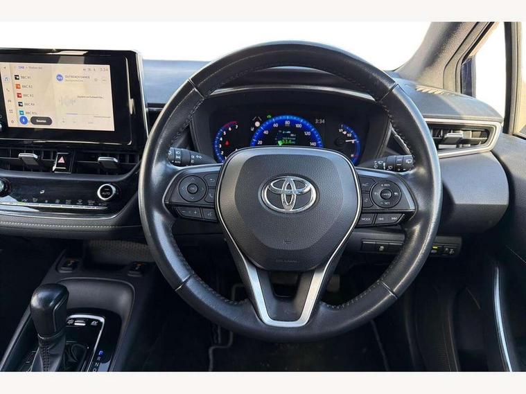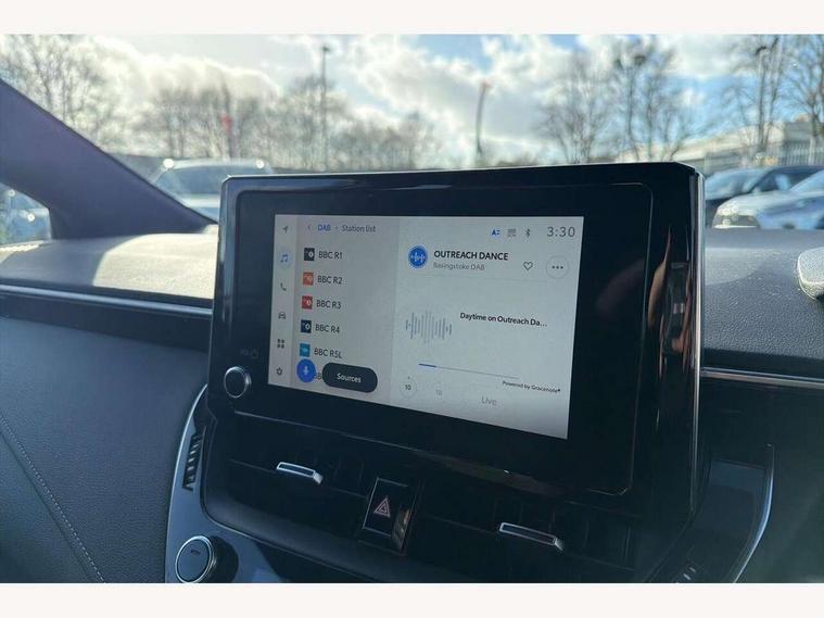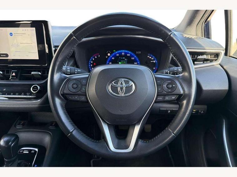 7" Multi information display screen, Bluetooth telephone connectivity, Connected car functionality upgrade, tracker, remote status and e-care, Dynamic radar cruise control (with RSA) including switch on steering wheel, E-call, Electrically assisted power steering, EV drive indicator, Intelligent park assist, Lane Departure Alert (LDA) switch on steering wheel, Memory on adjustable speed limiter, Push button start, Reversing camera, Smartphone integration with Apple CarPlay and Android auto, Gasoline particulate filter, Vehicle Stability Control (VSC), 6 speakers, 8" Touchscreen with MM19 Multimedia system and voice recognition, AM/FM radio, DAB Digital radio, Toyota touch 2 with go navigation system, USB and Aux in connectors + 12V front outlet, USB charging port in centre storage box, Aluminium roof rails, Anti-jam protection on power windows, Auto up and down function on all power windows, Automatic headlights with high beam assist, Black metallic surround on lower front grille, Black toyota logo in front, Body colour rear spoiler, Body coloured bumpers, Body coloured door mirrors, Body coloured outside door handles, Follow me home headlights, LED daytime running lights, LED front fog lights, LED Headlights, LED High mounted stop light, Manual day/night rear view mirror, Noise reduction layer on front windows, Power adjustable heated door mirrors, Power front windows, Power rear windows, Rain sensor, Rear side wing doors, Rear window defogger, Rear window wiper, Shark fin antenna, Time adjustment on intermittent wiper, Turning signal integrated indicators in door mirrors, Unique lower skirt, Unique side rocker with black insert, UV-filter on driver and passenger windows, 12v power outlet - luggage side, 3 rear headrests, 3 seat bench in 2nd row, 3 spoke leather steering wheel + gear knob, 60/40 split folding rear seat, Adjustable speed limiter switch on steering wheel, Audio, multimedia and telephone switches on steering wheel, Boot light, Boot underfloor storage, Clean air filter, Driver and front passenger personal light, Driver and passenger assist grip, Driver and passenger sun visor with mirror and light, Dual sided deck board in boot, Dual zone automatic air conditioning with ECO mode switch, Fabric armrests, Front and rear cup and bottle holders, Front and rear door pockets, Front head restraints, Front passenger seat, Heated driver and front passenger seats, Illuminated entry system in room lamp, ISOFIX seat fixing (2 fixings on rear outer seats), Leather gear shift with satin chrome on gear shift console, Manual height adjustable for driver and front passenger seat, Passenger seat back pocket, Pollen filter, Power adjustable lumbar support on driver seat, Power window switches with satin chrome inserts, Quilted fabric upholstery with grey stitches seats, Rear armrest with 2 cupholders, Rear passenger air vents, Rear passenger coat hooks (2), Rear passenger personal lights, Retractable tonneau cover with luggage partition net, Satin chrome inside door handles, Shopping bag hooks in luggage compartment, Side storage in boot, Sliding armrest on centre console box, Slow opening glovebox with lights, Tilt/telescopic steering column, Tonneau cover with under floor storage, Voice recognition switch on steering wheel, Whiplash Injury Lessening (WIL) feature (active headrest) for seats, Parking pack - Corolla, Toyota safety sense 2 pack - Corolla, 3x3 point rear seatbelts, Adjustable driver and front passenger seat belt extender to top anchor point, Anti lock braking system + Electronic brake force distribution, Brake assist function, Child locks on rear doors, Downhill Assist Control (DAC), Electronic parking brake, Emergency brake light signal (EBS), Front passenger airbag on/off switch, Front seatbelt reminder, HAC - Hill start assist control, Rear seat belt reminder, Seatbelt pretensioners and force limiters, Supplemental restraint system (SRS) 7 airbags - dual driver, dual side curtain, side impact and driver knee airbags, Traction control, Tyre pressure warning system, Acoustic vehicle alert system (AVAS), Alarm with motion sensor and immobilizer, Remote central locking + deadlocks, Smart entry, Satin chrome dash trim, Soft touch texture on upper dashboard, Stitching on lower dashboard, Space saver spare wheel, Unique wheel finish with red wheel cap,
