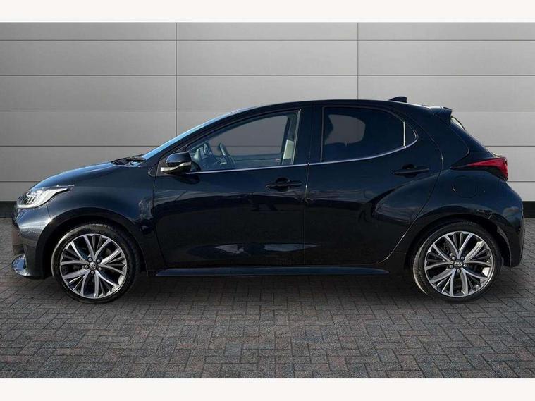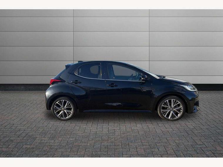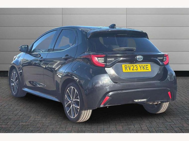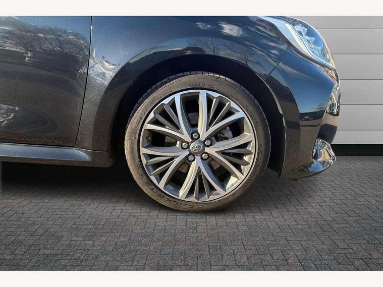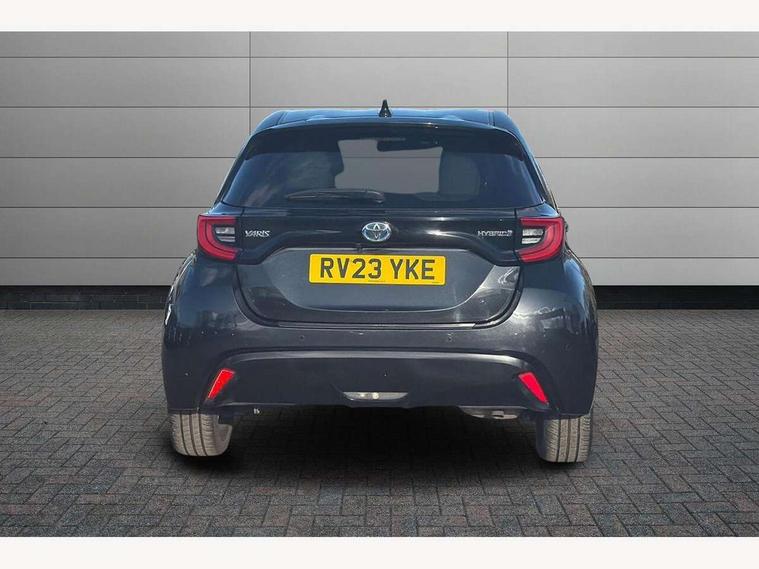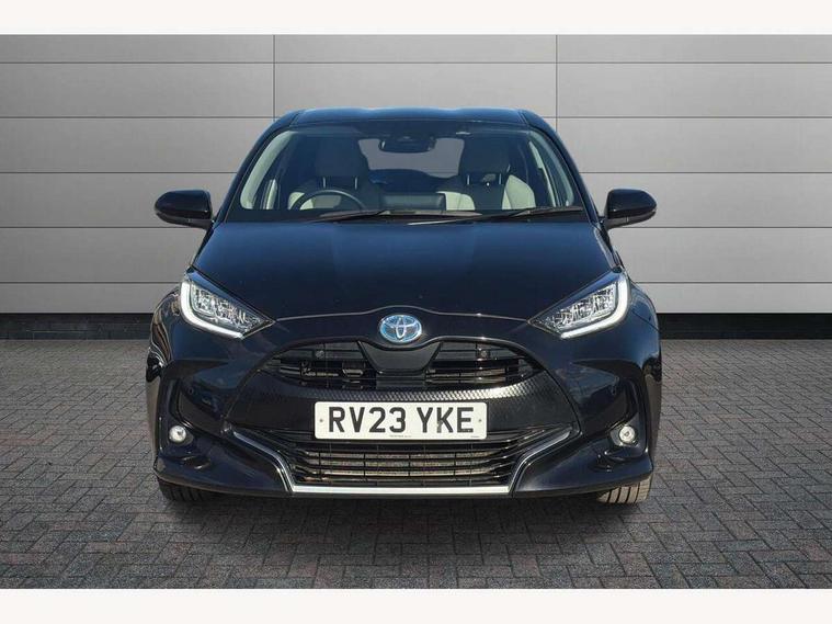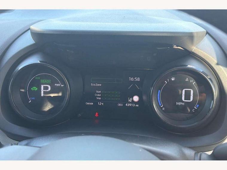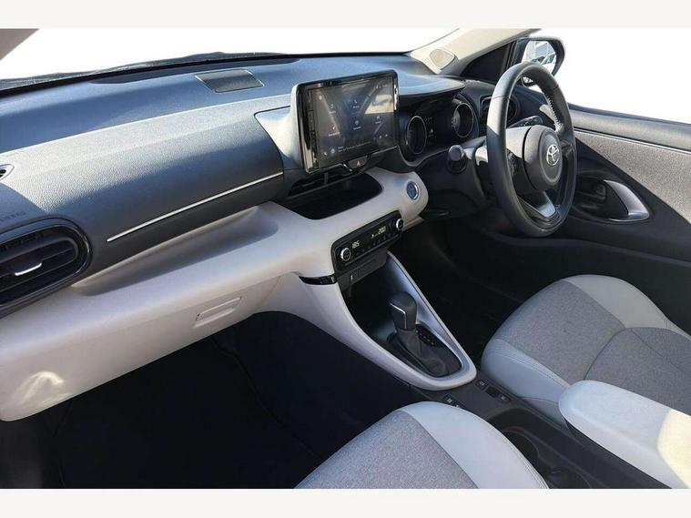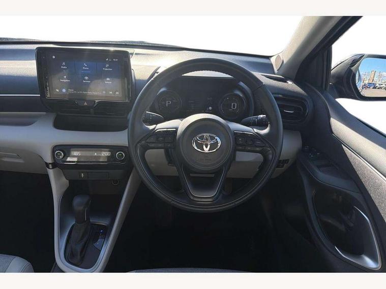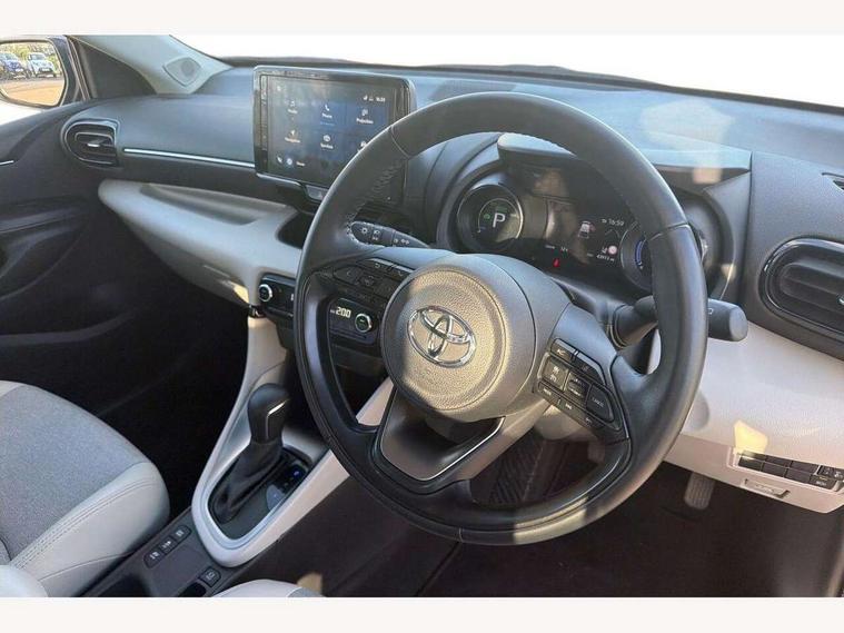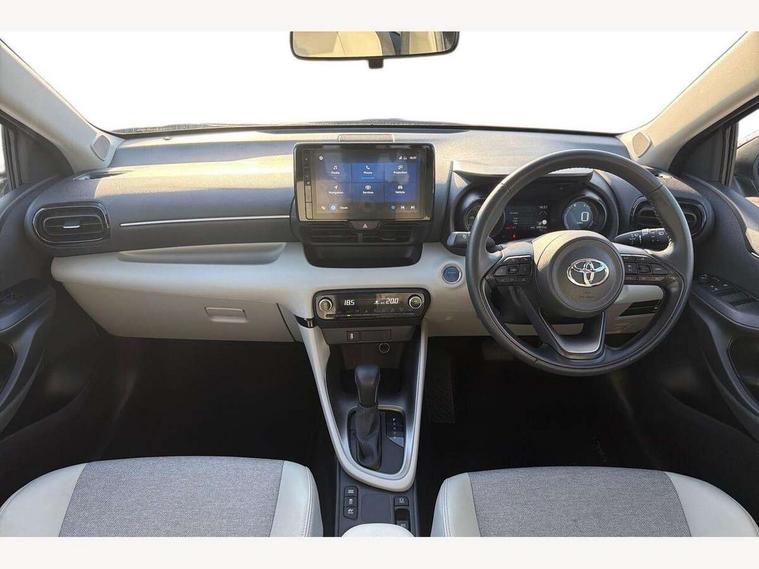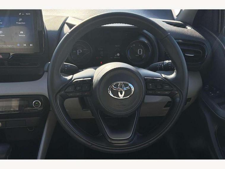 Adaptive cruise control, Adjustable speed limit with speed warning, Blind spot monitoring, Bluetooth connectivity, Colour binocular inspired displays with digital speedometer, E-call, Electric power steering, Hybrid energy display, Multi information display switches on steering wheel, Reversing camera, Smartphone integration with Apple CarPlay and Android auto, Tailgate, Touch 2 navigation system, Voice recognition, Vehicle Stability Control (VSC), 6 speakers, 9" HD multimedia display touch screen with Toyota smart connect, USB connection, Acoustic windscreen glass, Auto windscreen wipers, Automatic headlights, Automatically retractable door mirrors, Body coloured door mirrors, Electric adjustable heated door mirrors, Follow me home headlights, Front auto power windows with anti jam protection, Full LED rear lights, LED daytime running lights, LED front fog lights, LED front light guide, LED Headlights, LED High mounted stop lamp, LED Indicators, LED rear light guide, Manual headlight levelling, Painted chequered front grille, Rain sensor, Rear auto power windows with anti jam protection, Rear privacy glass, Rear side wing doors, Rear spoiler, Rear wiper, Satin lower front grille, Shark fin antenna, Turning signal integrated indicators in door mirrors, Variable front intermittent wipers, 3 adjustable rear headrests, 3 seat bench in 2nd row, 3 spoke leather steering wheel, 60/40 split folding rear seat, Active headrests, Adjustable boot height, Coat hooks in rear grab handles, Cup holders (2 front & door), Data Communication Module (DCM) connected services, Dual zone automatic air conditioning, Fabric seat with partial synthetic leather upholstery, Front armrest, Front sport seats, Glovebox, Grey roof lining, Height adjustable driver's seat, Height adjustable passenger seat, Isofix seat fixing, Leather gearshift, Map pockets on the backs of the front seats, Pollen filter, Shopping bag hooks, Single front passenger seat, Tilt/telescopic steering column, Parking pack - Yaris, 3 point seatbelts on all rear seats, ABS+EBD+Brake assist, Electronic parking brake, Emergency brake light system (EBS), Front passenger airbag on/off switch, Front seatbelt reminder, Hill start assist control (HAC), Rear child proof door locks, Rear seat belt reminder, Supplemental Restraint System (SRS) 8 airbags: Driver & passenger's airbags, dual side curtain airbags, side impact airbags, front centre airbag, Toyota Safety Sense 2, Precollison + Night time Pedestrian & Cyclist Detection, Lane Trace Assist, Auto High Beam, Intelligent ACC & Road Sign Assist, Tyre pressure warning system, 2x Master key, Alarm/immobiliser, Keyless smart entry with push button start, Remote AC via MyT, Remote locking via MyT, Remote powered central double locking doors, Satin chrome interior styling, Soft touch instrument panel, Space saver spare wheel,