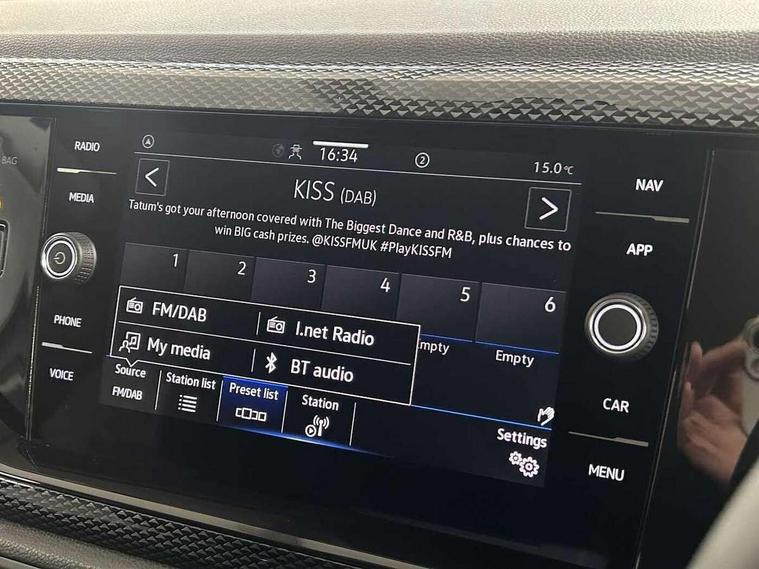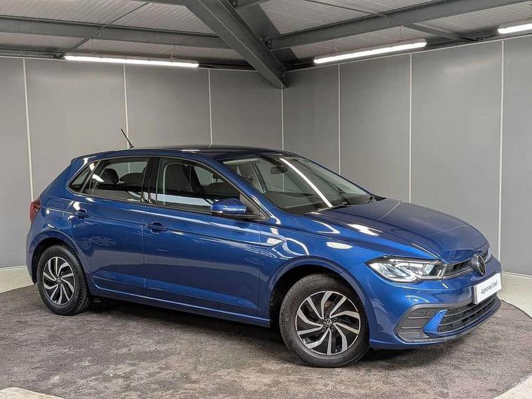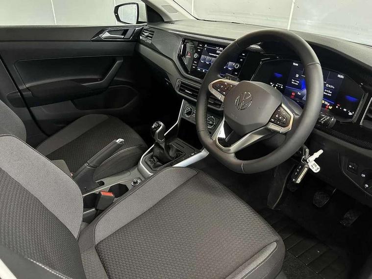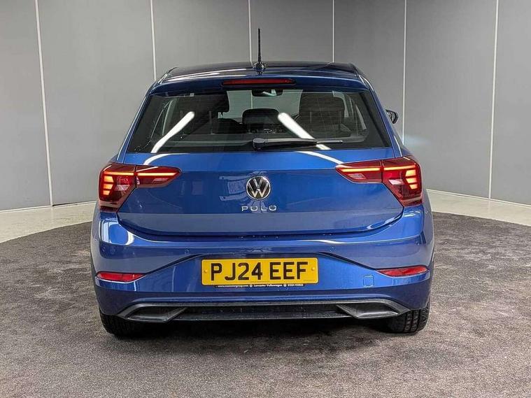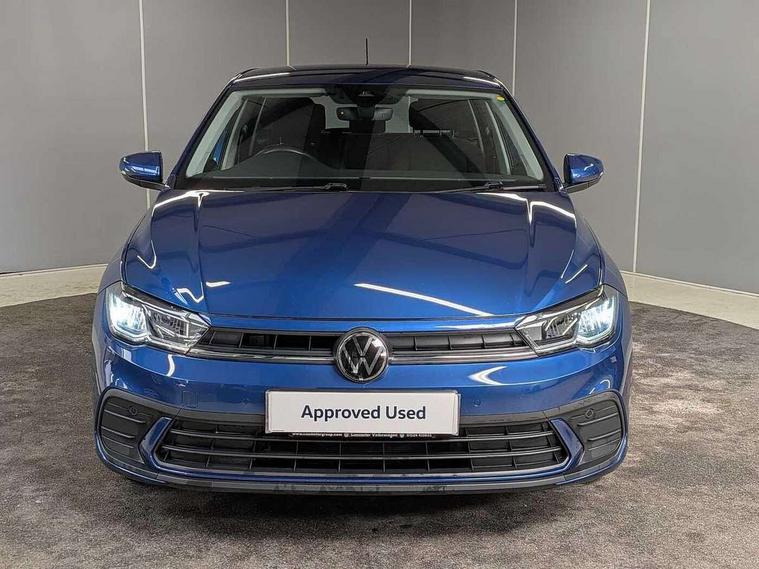 Adaptive cruise control without follow-to-stop and speed limiter, Advanced driver attention and drowsiness monitor, Bluetooth mobile phone interface, Dynamic road sign display, Emergency call service, Power assisted speed sensitive steering, Preparation for navigation system with media and internet package, Preparation for We connect and We connect plus, Speedo and rev counter, electronic odometer, trip, service interval display and exterior temperature gauge, Standard rear axle, Travel Assist - Lane keeping system and traffic jam assist, Travel assist including emergency assist, Trip computer, Warning signal and warning light for front and rear seatbelts not fastened, Washer fluid level indicator, Wireless app connect, Front wheel drive, Rear shock absorpion, Start-stop system with battery regeneration (recuperation - energy recovery during braking), DAB Digital radio, Diversity antenna for FM reception, Front and rear 6 speakers, Automatic dimming interior rear view mirror, Automatic headlight control with LED separate daytime running lights with coming/leaving home function, Body colour bumpers with chrome inserts, Body colour door handles, Body colour door mirrors, Electric front windows, Engine badge deletion, Headlight range adjustment, Heat insulating and laminated safety glass windshield, Heat insulating darkened glass in side and rear windows, Heat insulating glass windscreen, LED Headlights, LED rear combination lamps, Power folding adjustable/heated exterior mirrors and front passenger exterior mirror lowering function, Rain sensor, Rear electric windows, Rear fog light, Rear side wing doors, Rear windscreen washer and wiper with interval delay, Third brake light, 12V power socket in centre console, 2 front and 2 rear reading lights with switch off delay and dimmer, 2 USB-C ports in the front, 2 USB-C charging sockets on the center console in the rear, 3 rear head restraints, 60/40 split folding rear seat and rear seat bench not split, Ceramique roof lining, Chrome plated radiator grille inserts, air vent surrounds and light switch surrounds, Door and side trim panel, Driver and front passenger seat height adjustment, Driver/passenger sunvisors with illuminated vanity mirrors, Front centre armrest, Front seat backrest storage pockets, Front standard seats, Handbrake lever handle in leather, Hartley/Thomas cloth upholstery, Headliner in recycled material, Isofix child seat preparation easy-fit (for two outer rear seats, and front passenger seat) compatible with I-size, Leather trimmed gear knob, Luggage compartment cover, Luggage compartment lighting, Removable luggage compartment floor, Single front passenger seat, Standard climatic zones, Standard pedal cluster, Three spoke leather wrapped multifunction steering wheel, Light and vision pack - Polo, 3 point height adj front seatbelts + pretensioners, 3x3 point rear seatbelts, ABS, Driver and front passenger airbag with front passenger airbag deactivation, Drivers and front passengers safety optimised head restraints, ESC (Electronic stability control) + EDL (Electronic Differntial lock) and ASR (Traction control), Extended and predictive pedestrian/ cyclist protection, Front assist with autonomous emergency braking (for Adaptive Cruise Control ACC up to 130 mph), Front curtain and side airbags with center airbag, Front disc brakes, Hill hold control, Manual child lock in rear doors, Rear drum brakes, Single tone horn, Tyre pressure loss indicator, Alarm with interior protection, Anti-theft alarm system with interior monitoring, backup horn, and towing protection, Anti-theft wheel bolts, Electronic engine immobiliser, Lava stone black gloss/matt decorative inserts in dash and front door panels, Low rolling resistance tyres,
