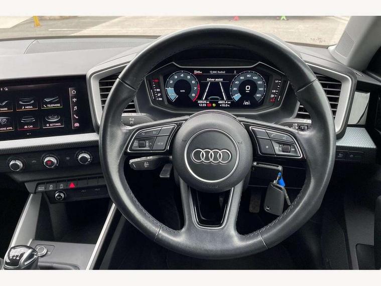 10.25" Digital instrument cluster display classis style instrument dials + speed, odometer, time, outside temperature, telephone menu + fuel level warning, Audi connect safety emergency and service including E-call, Audi drive select - power steering assistance + engine, Audi smartphone interface with connect compatible smartphone via USB directly MMI display + Nav, music, third party apps controlled via MMI controller, Automatic start/stop system, Bluetooth interface, Cruise control, Driver's information system, Electromechanical power steering, Emergency services call system, Lane departure warning system, Service interval indicator, Speed limiter, Voice control system, Washer fluid level indicator, Dynamic suspension, 1 x SDXC card reader, 2 x USB type C connection points, DAB Digital radio, MMI radio plus with 8.8" colour MMI display screen and MMI touch, Auto dimming rear view mirror, Body coloured bumpers, Body coloured door mirrors, Electric front and rear windows, Electrically adjustable, heated, folding door mirrors with integrated LED side indicator, Front side air inlets in grained matt black and C frame in titanium black, Heat insulating glass windscreen and side windows, Heated rear windscreen, High level LED brake light, LED headlights with LED rear lights + dynamic rear indicators + headlight adjustment and high beam, turning light + LED daytime running lights, Radiator grille and rear diffuser in matt titanium black, Radiator protective grille frame in matt aluminium silver, Rain and light sensors, Rear fog lights, Rear side wing doors, Rear wing door, Rear wiper, Side front spoiler lips in grained matt black, 12V socket in centre console with two cup holders, 3 rear seats with headrests, 3 seat bench in 2nd row, 40:60 Split folding rear seat or folded fully, Door sill trims with aluminium inlay, Driver and passenger seat with manual height adjust with forward and backwards adjustment, Front head restraints, Front passenger seat, Front/rear floor mats, Height and reach adjustable steering wheel, ISOFIX child seat mounting for front passenger and outer rear seats including top tether attachment point of outer rear seats, Leather gear knob with aluminium trim, Leatherette handbrake grip, Luggage compartment light with front and rear reading lights, Manually adjustable lumbar support in front seats, Novum cloth upholstery with front sport seats, Titanium grey cloth headlining, Luggage compartment pack - A1, 3x3 point rear seatbelts, Audi pre-sense front with pedestrain and cyclist recognition, Brake assist function, Driver and front passenger airbag with front side and head airbags, Electronic Stability Control including ABS, EBD, ASR and EDL, Front passenger airbag deactivation switch, Hill hold assist, Manual rear child locks, Seatbelt height adjustment for front seats, Seatbelt monitoring, Tyre pressure warning light, Warning triangle and first aid kit, Anti theft alarm, Anti theft wheel bolts and loose wheel warning, Immobiliser, Remote central locking with 2 foldaway keys, Aluminium trim for control switches, air vents and digital instrument cluster, Silver grey accent areas including air vents, door handle recesses and centre console in diamond paint finish, Slate grey inlays polygon structure in fine paint finish,
