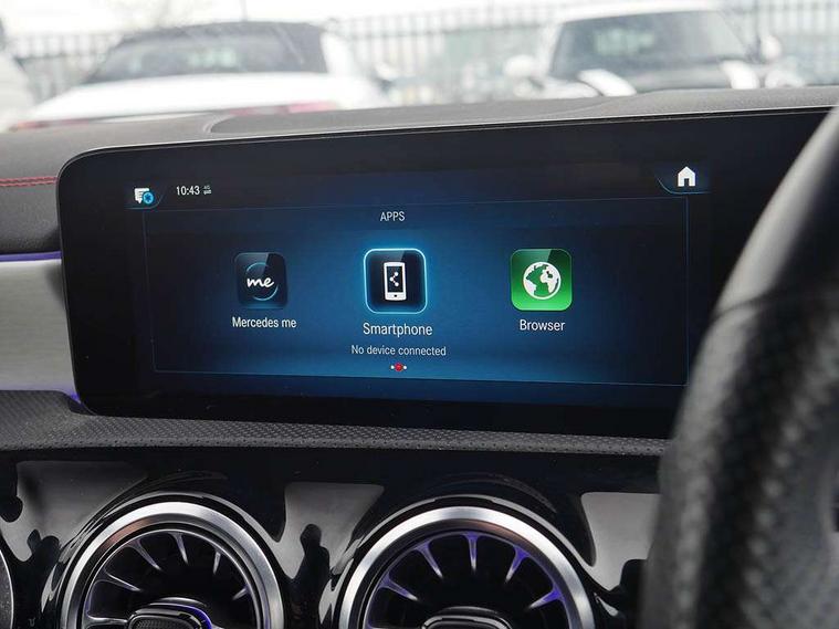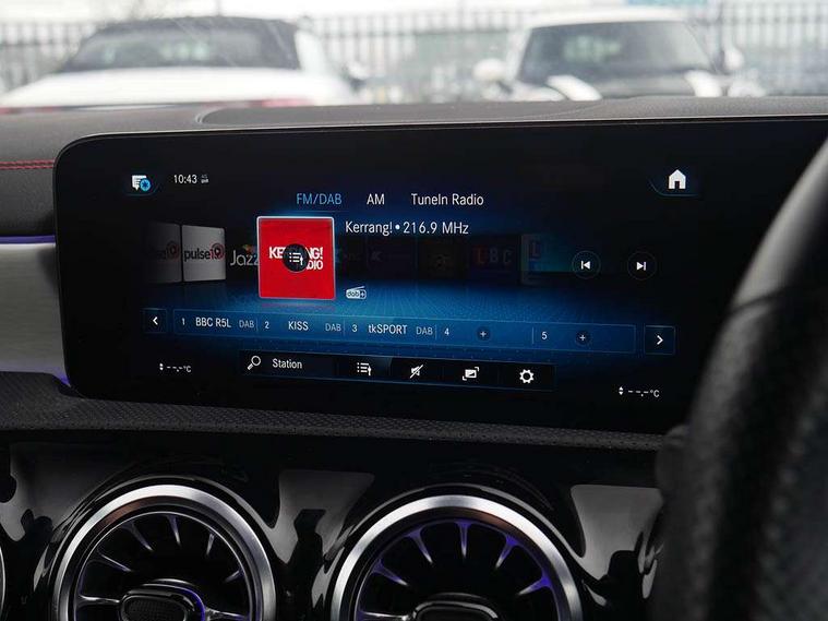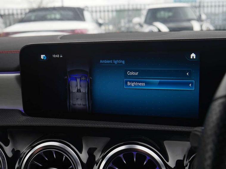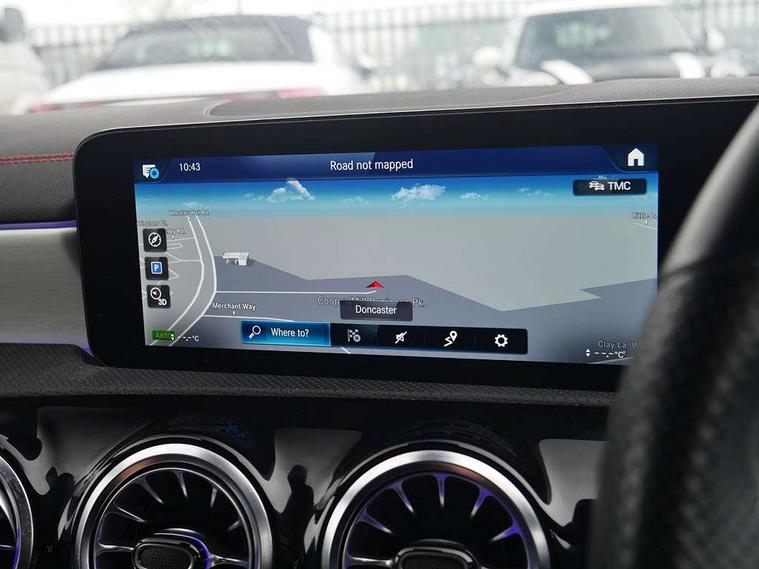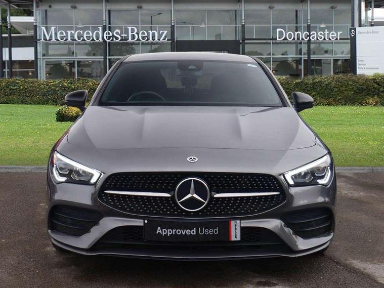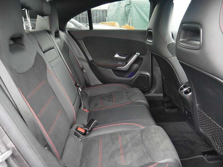 10.25 inch Instrument display with digital cockpit, 10.25 inch touchscreen central media display, Active lane keeping assist, Attention assist - Monitors steering behaviour and long journey fatigue, Bluetooth connection, Car wash mode, Cruise control with limiter, Direct steer system with speed sensitive power steering, DYNAMIC SELECT with a choice of driving modes (ECO, Comfort, Sport and Individual), ECO start/stop function, Fluid level warning indicator for fuel, oil, coolant and washer fluid, Hard-disk navigation, Hey Mercedes Voice activation, Lamp failure indicator, Mercedes me connect including emergency call system, accident recovery, breakdown and maintenance management, Mercedes me remote services, Outside temperature gauge, Owners manual and service booklet in English, Pre-installation of private car share, Preinstallation for Mercedes Benz link, Radio aerial integrated into front and rear windshields, Service indicator (ASSYST), Smartphone integration with Apple CarPlay and Android auto, Speed limit assist, Trip computer in multifunction display with current consumption indicator, Lowered comfort suspension, Rear axle multi-link, DAB digital radio tuner, MBUX multimedia system, Mid-range sound system, USB (type C) ports (2) in stowage compartment and 1 in front of centre console, Adaptive brake lights, AMG body styling with AMG front apron and rear apron and visible exhaust tailpipe in chrome trim elements, AMG bodystyling side skirts, Body colour bumpers, Body colour door handles, Chrome beltline strips, Diamond radiator grille pins in chrome, Electric windows, Electrically adjustable and heated door mirrors with integrated LED indicators, Exhaust system with 2 Visible tailpipe trim elements and rear apron with trim in chrome, Headlamp assist automatic headlamp activation, Heated glass rear windscreen + timer control, High level LED third brake light, Interior mirror with black reading lamps and frameless, LED high performance headlamps with integrated LED daytime running lights, LED tail lamp, Privacy glass with dark tinting on rear side windows and rear window, Rain sensing windscreen wipers with two sensitivity settings, Rear boot, Rear fog lamp, Rear side wing doors, Variable front intermittent wipers, Window line trim strip in chrome, 3 seat bench in 2nd row, 3 spoke flattened bottom nappa leather multifunction steering wheel with perforated leather in grip area, 40:20:40 split folding rear seat backrests, Air conditioning - Two zone thermotronic luxury automatic climate control with display, Air vents with surround in silver chrome, Artico man-made leather upholstery, Automatic child seat recognition sensor, Black roof lining, Brushed stainless steel sports pedals with rubber studs, Floor mats with stitched AMG lettering, Front centre armrest with stowage, Galvanished gear shift paddles on steering wheel, Heated front seats, Illuminated front door sills with changeable cover, Illuminated glove compartment stowage, Interior lighting - 64 colour Ambient lighting, Luggage net on driver/front passenger seat backrest, Manually adjustable front seats, Manually height and reach adjustable steering column, Rear armrest with two integral cup holders for drinks, Rear head restraints, Single front passenger seat, Sport seats with fixed head restraints, Stowage compartment in centre console with retractable cover, Sunvisors with illuminated vanity mirrors, Touchpad on center console, Twin front cupholders, Two outer rear seat isofix and top tether child seat fixing points, Keyless go comfort pack - CLA, Light and sight pack - CLA, Mirror pack - CLA, Night package - CLA, Parking package - CLA, Seat comfort pack - CLA, Active bonnet pedestrain safety measure which detects an impact and raises bonnet by 65mm, Active brake assist includes forward collision warning system with autonomous braking, Adaptive brake assist with hold function and hill start assist, Anti lock braking system (ABS) with brake assist, Black seat belts, Bonnet with power domes, Brake pad wear warning indicator, Childproof locks manually operated for rear doors and electrically operated for rear power windows, Crash responsive emergency lighting, Driver and front passenger head and sidebags, Driver and front passenger windowbags, Drivers knee airbag, Dual stage driver and front passenger airbags, Electric parking brake, Electronic stability programme with acceleration skid control, ESP curve dynamic assist, Front and rear seatbelt reminder, Front passenger seat occupancy sensor, Three point rear seat belts, Tyre pressure monitoring system, Warning triangle and first aid kit, Guard 360 degree guard vehicle protection system with immobiliser and interior protection, Remote central locking and crash sensor with emergency opening function, Light aluminium with longitudinal grain interior trim, 18" AMG 5 twin spoke light alloy wheels painted in black with high sheen finish, Summer tyres, Tirefit tyre sealant kit,