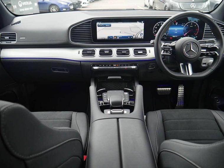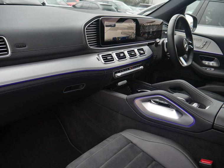 12.3 High resolution wide screen cockpit display with choice of three display styles Classic, Progressive or Sport and unique ambient lighting setting, 360 degree view camera, Active parking assist with PARKTRONIC, Attention assist, Brake wear warning display, Direct steer speed sensitive steering, DYNAMIC SELECT with a choice of driving modes (ECO, Comfort, Sport and Individual), Easy-pack tailgate - Powered opening/closing automatically, ECO start/stop function, Hard-disk navigation, MBUX voice control activated by keywords "Hey Mercedes", Mercedes Benz emergency call system, Mercedes me connect - vehicle set up and monitoring, Outside temperature display, Pre-installation for digital key transfer, Remote boot release, Service indicator (ASSYST), Status display for rear seat belts in instrument cluster, Traffic sign assist, Trip computer in multifunction display showing current fuel consumption, Wireless charging, Wireless smartphone integration including Apple CarPlay and Android auto, 85 litre fuel tank, 9G TRONIC 9 speed automatic transmission, Airmatic air suspension with adaptive damping system, Diesel particulate filter (DPF), Mild Hybrid starter alternator, Additional USB connection, Bluetooth interface for hands free and audio streaming, Burmester surround sound system, DAB digital radio tuner, Front and rear USB ports, Sound personalisation, Adaptive brake lights, AMG bodystyling front and rear aprons, Auto headlights, Automatically dimming rear view mirror, Body coloured bumpers, Electric windows with one touch opening/closing and obstruction sensors, Electrically adjustable, heated, folding exterior mirrors, Exterior styling - front bumper, radiator grille and front air intakes, Heat insulating dark tinted glass, LED 3rd brake light, LED daytime running light signet, LED rear lights, Magic vision control, Multibeam LED headlights with adaptive highbeam assist plus, Radio aerial integrated into rear window, Rain sensing windscreen wipers, Rear side wing doors, Rear wiper, Roof rail system, Top surround of side windows in polished aluminium, Transparent Bonnet, Visible twin pipe exhaust system integrated into bumper, Waistline in polished aluminium, 3 spoke flat bottomed Multifunction sports steering wheel in nappa leather, 4 way adjustable front head restraints and 2 way rear head restraints, 4 way lumbar support for driver and front passenger, 40:20:40 split folding rear seats, AMG floor mats, Artico/Microcut microfibre upholstery, Automatic child seat recognition sensor, Black fabric roof liner, Electric height/reach adjustable steering column, Electrically adjustable front seats with memory function, Front centre armrest with stowage compartment and illuminated grab handles, Gearshift paddles on steering wheel, Glove compartment - lockable, air conditioned and illuminated, Heated front seats, Interior lighting - 64 colour Ambient lighting, Luggage compartment cover, Seat occupancy sensor for front passenger seat, Second row three seats, Single front passenger seat, Sports pedals in brushed stainless steel with rubber studs, Sunvisors with illuminated vanity mirrors, THERMATIC 2 zone automatic climate control, Touchpad, Keyless go comfort package - GLE, Night package - GLE, Active bonnet, Airbags - driver and front passenger, front sidebag, pelvis bag and window airbags, Anti-lock braking system (ABS), Black seat belts, Childproof locks manually operated for rear doors and electrically operated for rear power windows, Drivers knee airbag, Electronic parking brake, Electronic Stability Programme (ESP), ISOFIX child seat points with automatic child seat recognition, Perforated front brake discs and brake calipers with Mercedes-Benz lettering, Pre safe impulse side, Three point rear seat belts, Tyre pressure monitoring system, Warning triangle and first aid kit, Alarm system/interior protection/immobiliser, Central locking with interior switch, automatic locking and crash sensor with emergency opening function, Chrome surround in electric key, Guard 360 degree vehicle protection plus, Brushed aluminium trim elements, Dashboard and door beltlines in ARTICO man made leather with contrast top stitching, 21" AMG 5 twin spoke light alloy wheels painted in bi colour, TIREFIT with tyre inflation compressor,