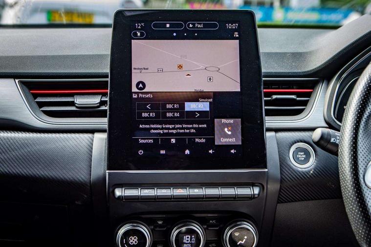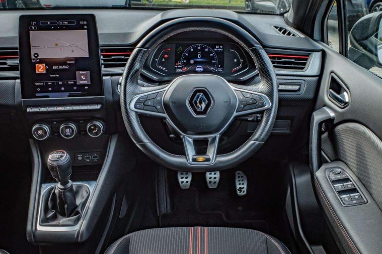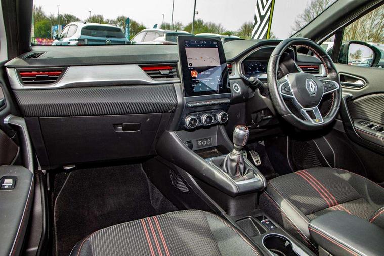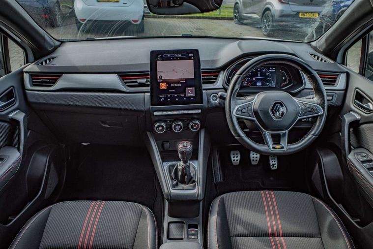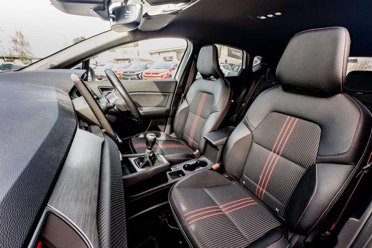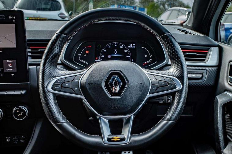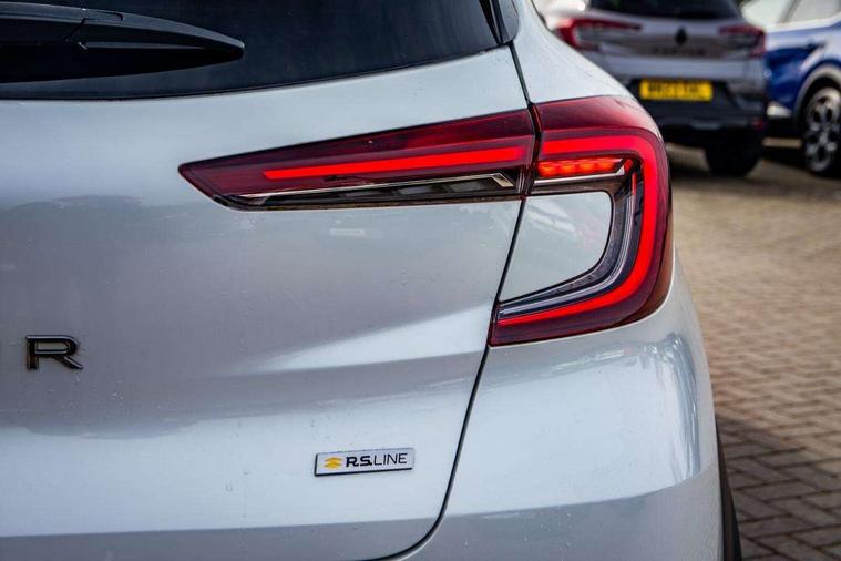 7" TFT Driver information display, Cruise control + speed limiter, EasyLink 9.3" portrait touchscreen with navigation, google search and traffic information, Eco mode, Front and rear parking sensors with rear view camera, Gear change indicator, Lane departure warning system, Lane keep assist, Multisense with 3 driving modes + 8 ambient lighting colours, Renault automatic emergency assist, Smartphone integration compatible with Apple CarPlay and Android Auto, Traffic sign recognition with over speed prevention, Trip computer, Variable assistance power steering, DAB Radio with Bluetooth and USB, Aluminium Renault sport door sills, Auto dimming rear view mirror, Automatic front wipers with rain sensors, Automatic headlights, Automatic high/low beam, Black side door protection with chrome effect, Body colour door handles, Body coloured bumpers, Body coloured door mirrors, C Shaped LED front and rear lighting signatures with 3D effect on the rear lights, Double chromed exhaust tailpipes element, Drivers one touch window with anti-pinch feature, Extra tinted glass in rear windows and tailgate, Frameless rear view mirror, Front and rear electric windows, Front bumper with F1 blade and honeycomb front grille, Front grille with chrome upper trim, Full LED headlights, Grey front and rear skid plate, LED daytime running lights, LED front fog lights, LED high level brake lights, LED rear fog light, Longitudinal roof bars, Rear side wing doors, Rear wiper, RS Line badges on front wing and hatch door, Shark fin antenna, 12V Accessory socket, 3 rear headrests, 60/40 split and fixed base rear seat bench, Aluminium pedals, Automatic climate control with one touch demist function and air quality regulator, Centre console storage tray, Dark roof lining, Front head restraints, Glovebox, Heating system with pollen filter, Height adjustable driver's seat, Height adjustable passenger seat, Height/reach adjust steering wheel, ISOFIX child seat fixing points on rear outermost seats, LED front roof lights, Middle console with armrest and storage, Modular boot floor, Perforated leather steering wheel with red stitching and RS Line badge, Rear air vents, Red insert on air vent, RS Line sport synthetic leather/cloth upholstery, Single front passenger seat, Sliding rear bench, 3 rear seatbelts, ABS+EBA, AEBS, Distance warning alert, Driver and front passenger, side, head and curtain airbags, Driver height adjustable seat belt, Electric parking brake with auto hold function, Electronic stability control, Front and rear no seatbelt warning sound, Front dash warning indicator in case of heavy braking, Front driver and passenger side airbag deactivation, Hill start assist, Rear door and window child locking function for rear door, Tyre pressure warning light, Anti drill door locks and locking fuel cap, Central door locking, Deadlocking system, Hands free keycard with push button and start/stop function, RAID (Renault Anti-Intruder Device) automatic door locking, Carbon style soft touch dashboard, 18" Le castellete diamond cut alloy wheels,