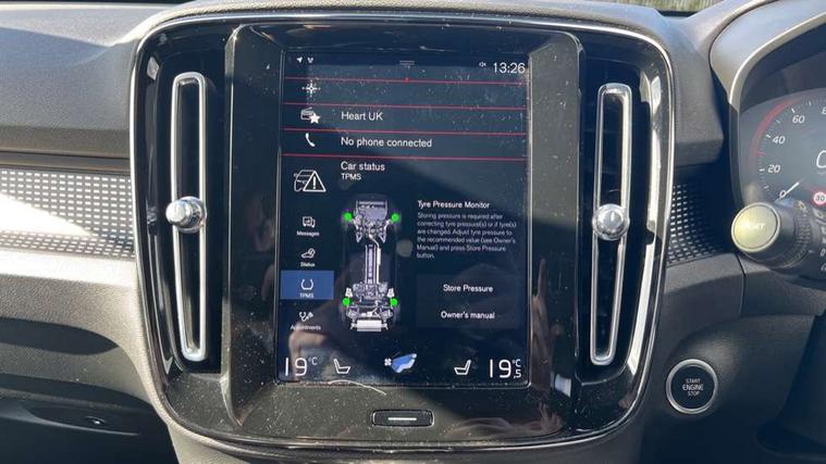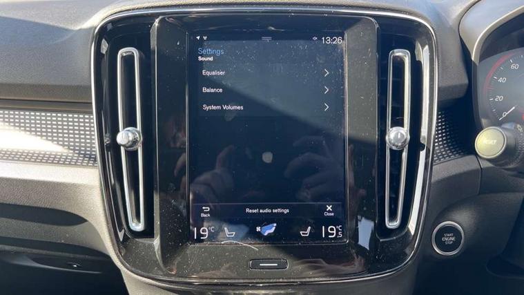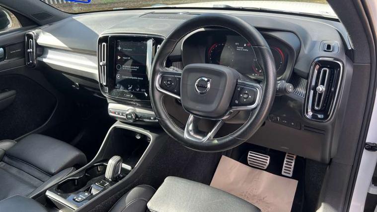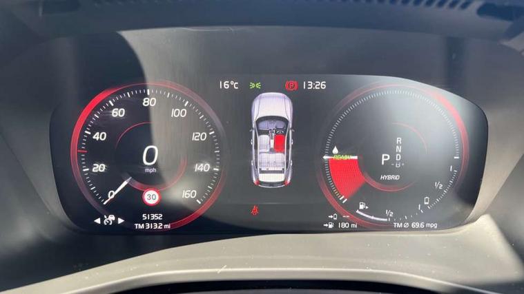 12.3" Active TFT crystal driver's instrument display, 9" centre console portrait touch screen, Adjustable steering wheel force, Bluetooth hands free telephone kit, Drive mode selector, Lane keep assist with driver alert control, Oncoming Lane Mitigation, Sensus navigation with European mapping and traffic information, Speed limiter, Speed sensitive steering, Voice activated control for key functions, Volvo on call, Electric front axle drive, Recharging port located in nearside front wing, Sports chassis, DAB Digital radio, Steering wheel mounted remote controls, Active bending headlights, Adaptive brake lights with high level LED brake lights, Auto dimming interior mirror, Automatic headlamp levelling, Black stone door mirrors, Black stone roof, Colour coordinated auto folding and heated power door mirrors, Dark tinted windows for rear door side windows and cargo compartment, Dual integrated exhaust pipes with high gloss black surround, Front aluminium tread plates, Front and rear electric windows, High gloss black front and rear skid plate, High gloss black lower front bumper, High gloss black mesh front grille with high gloss black surround, High gloss black roof rails, High gloss black sensus surround deco, High gloss black window trim, Home safe and approach lighting, LED front fog lights with static cornering light function, LED Headlights + Active high beam incorporating daytime running lights, Rain sensor with automatic windscreen wiper activation, Rear side wing doors, Rear wiper, Roof antenna, Roof spoiler, Visible VIN plate, 12V socket in front tunnel console and luggage compartment, 2 zone electronic climate control and rear air vent, 3 seat bench in 2nd row, 60/40 split folding rear seat, Ambient front door and instrumental panel lighting, Black headlining, Bright metal luggage threshold, Centre console cupholders and storage, Driver's side lower dashboard credit card storage compartment, Front door pocket and front cupholder illumination, Front footwell illumination, Front headrests, Front reading light and theatre lighting, Glovebox bag hook, Height/reach adjustable steering column, High gloss centre tunnel deco, Illuminated glovebox, Illuminated luggage compartment, Illuminated tailgate, Illuminated vanity mirrors, Isofix attachments on outer rear seats, Key integrated remote, Leather gearknob, Load protection net, Multi directional lumbar support, Multicolour theatre lights, Rear armrest / integral cup holders / storage tray, Rear coat hook, Rear reading and courtesy lights, Single front passenger seat, Sports Leather steering wheel, Sports pedals, Underfloor cargo storage, 3x3 point rear seatbelts, City safety includes pedestrian, cyclist and large animal detection and front collision warning with full auto brake, Drivers knee airbag, Dual stage driver/passenger airbags, Electronic parking brake with auto hold, First aid kit, Front and outer rear seatbelt reminder and pretensioners, Front seats SIPS airbags, Hill descent control, Hill start assist, Inflatable curtain, Passenger airbag cut-off device, Road sign information display, Run off Road Mitigation, Run off Road Protection, SIPS (Side Impact Protection System), Slippery road and hazard light alert, Stability and Traction Control with Spin control, Engine Drag Control and Corner Traction Control, Tyre pressure monitoring system, Vehicle deceleration control with Anti-lock Brake System, Electronic Brake Distribution and Emergency Brake Assist, Warning triangle, WHIPS whiplash protection system - front, Anti-theft alarm including immobiliser/volume sensor + level sensor, Care key with user defined top speed, Key integrated remote control central locking + fuel flap with deadlocking system and auto open/close power windows, Locking wheel nuts, Private locking for tailgate, Cutting edge aluminium inlay,
