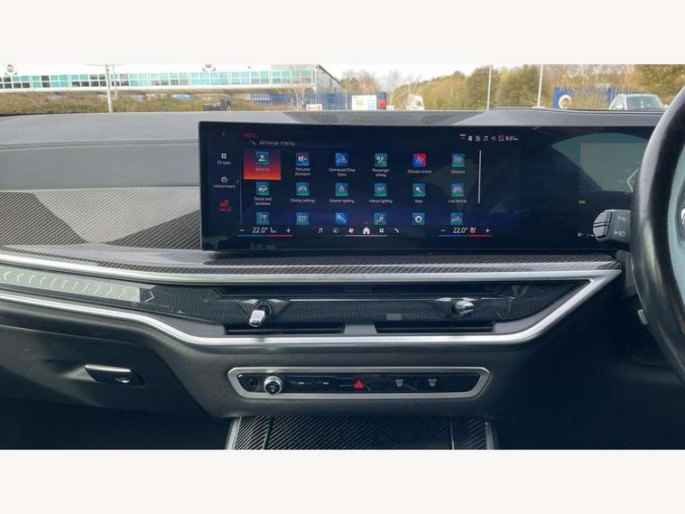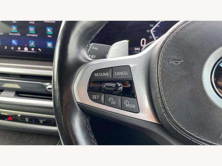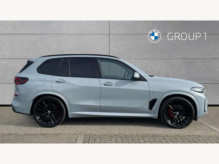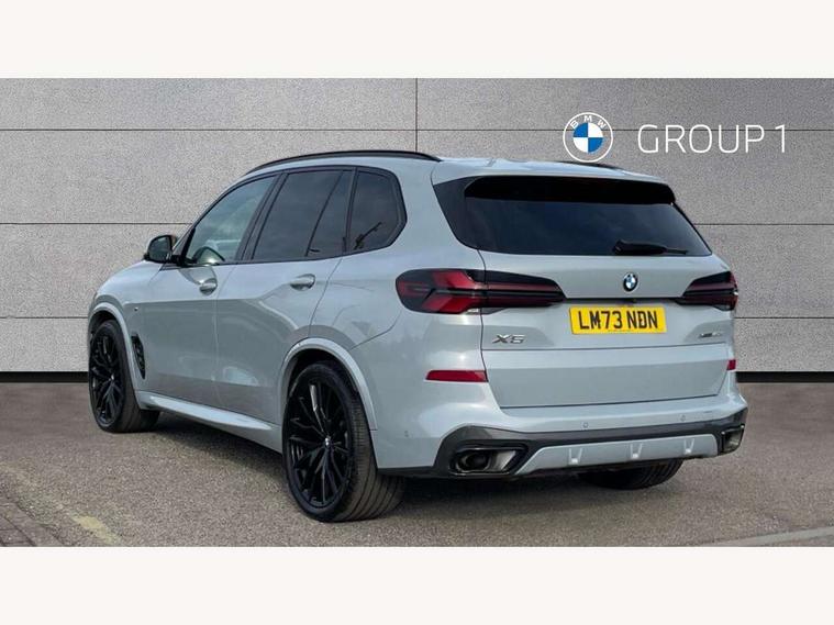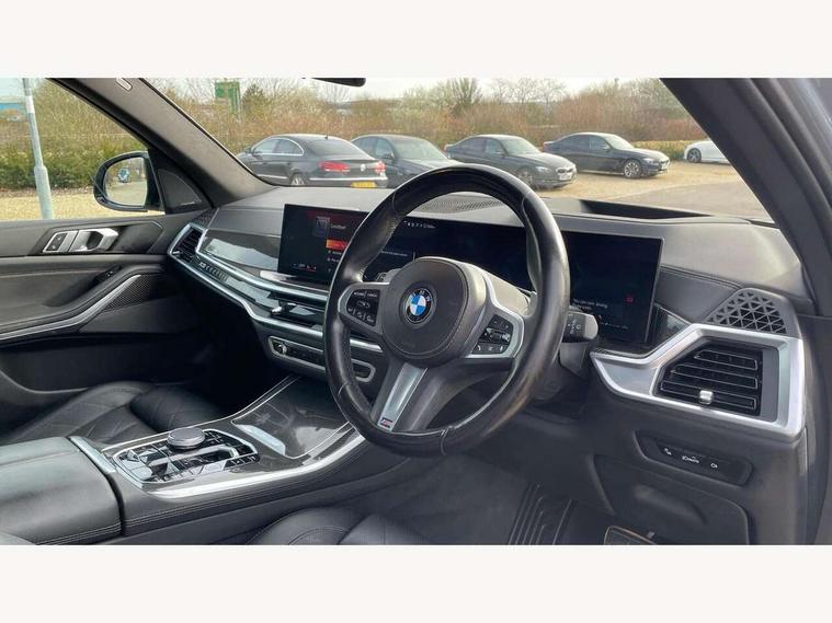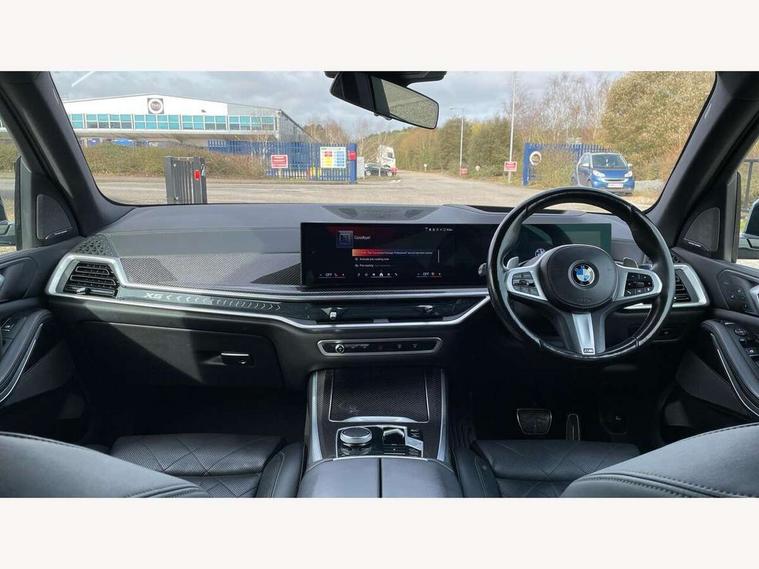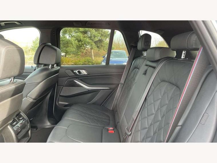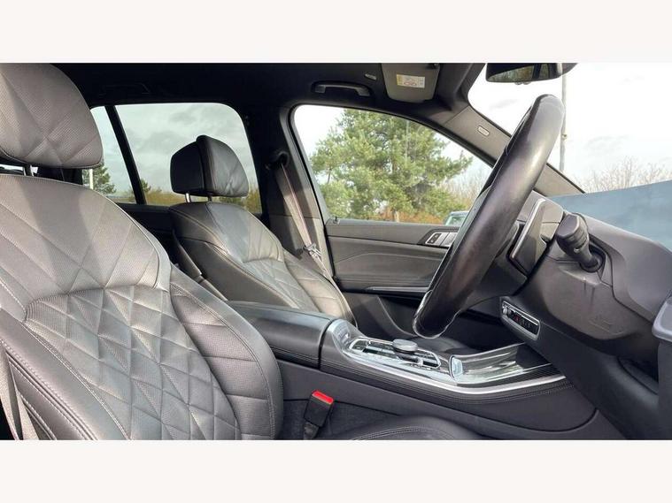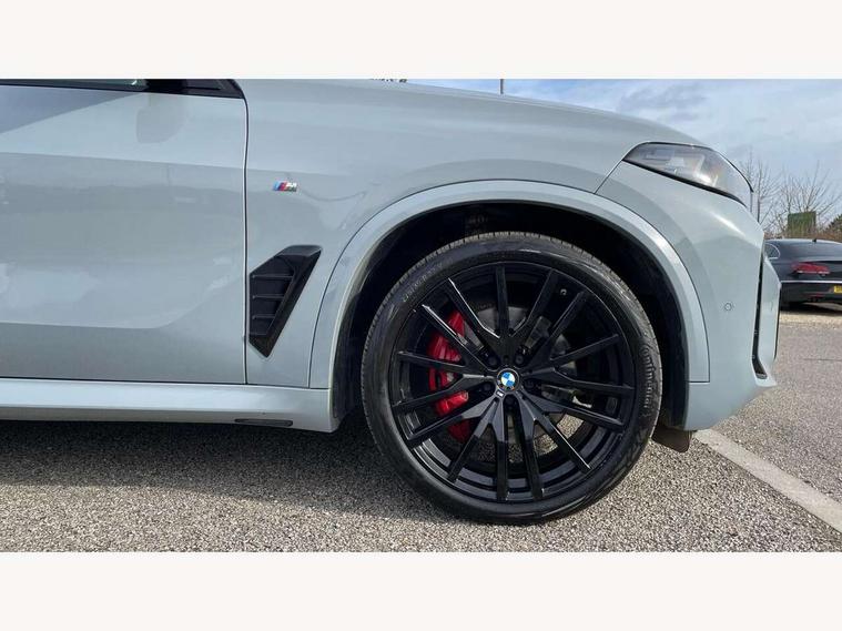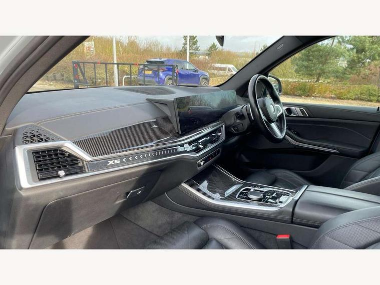Attentiveness assist, Automatic tailgate operation, BMW ConnectedDrive online services, BMW live cockpit + with curved 12.3 instrument cluster/14.9 central display, nav/Tuner with diversity reception, RDS/4GLTE/remote software upgrade, BMW Recovery system, BMW Teleservices, Condition based service, Cruise control with brake assist, eCall emergency call system, Enhanced bluetooth with wireless charging, Integrated owner's handbook, PAS, Speed limiter, Wi-Fi hotspot, Drive performance control with ECO PRO comfort + sport mode, Eight speed steptronic sport automatic transmission and gearshift paddles on the steering wheel, Hi-Fi loudspeaker system, Adaptive LED Headlights, Front and rear electric windows, High beam assistant, High gloss black shadow line roof rails, LED daytime running lights, Rear side wing doors, Third brake light in rear spoiler, Variable intermittent rear wash/wipe, 12V - Power sockets with 2x centre console and 1x luggage compartment, 3 seat bench in 2nd row, Foldable rear centre armrest with 2 cupholders and storage compartment, Front and rear side armrest integrated into door trim, Headrests for all seats, Luggage compartment separating net, Single front passenger seat, Three spoke sport M leather steering wheel, Velour floormats, Ambient light interior pack - X5, Driving assistant pack with radar based driver assistance system - X5, Expanded exterior mirror pack - X5/X5 M, M aerodynamics pack - X5, 3 rear seatbelts, Active protection, Airbags - driver/front passenger, rear and side, first and second row seats head airbags, front passenger seat airbag deactivation + knee airbag, Anti-lock braking system (ABS), Automatic Stability Control (ASC), Brake energy regeneration, Cornering brake control (CBC), Crash sensor activating central locking release, hazard warning lights, fuel cut off, interior lighting + activation of safety battery terminal clamp, DSC - Dynamic Stability Control, Dynamic Traction Control - DTC, Electromechanical parking brake with automatic drive away release and auto hold function, Electronic brake force distribution, Hill start assistant, M Sport blue painted brake calipers with 'M' designation, Mechanical child proof lock on rear doors, Tyre pressure monitoring system, Tyre pressure sensors, Ventilated front and rear disc brakes, Warning triangle and first aid kit, Closing system with central locking, Comfort access system, Locking wheel bolts, Sensatec instrument panel,
